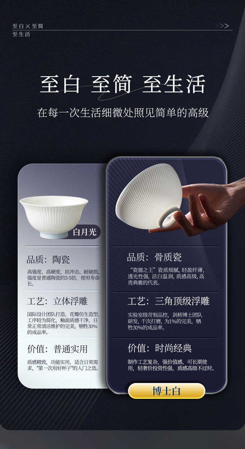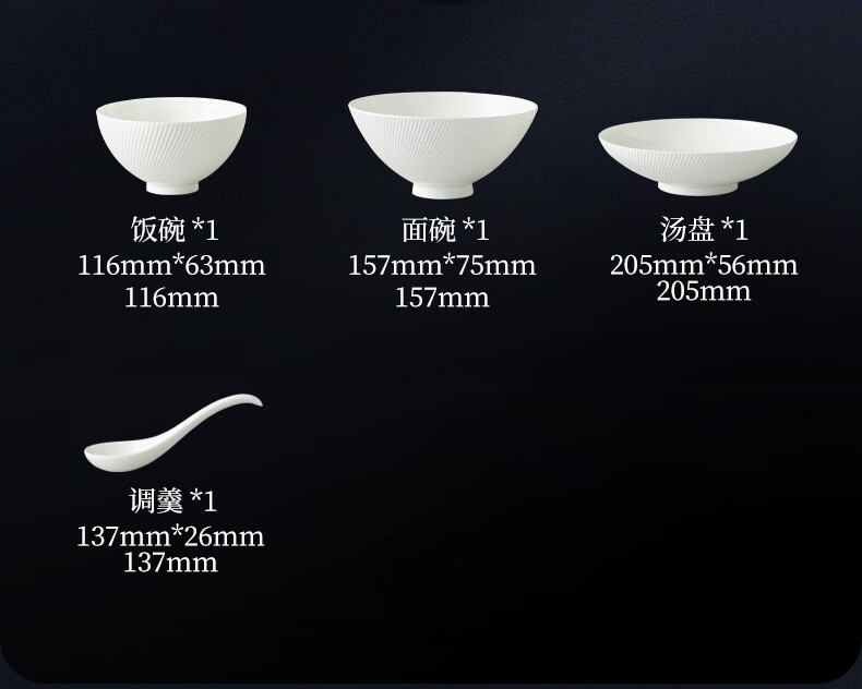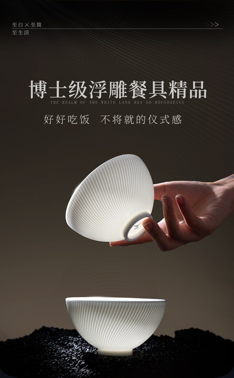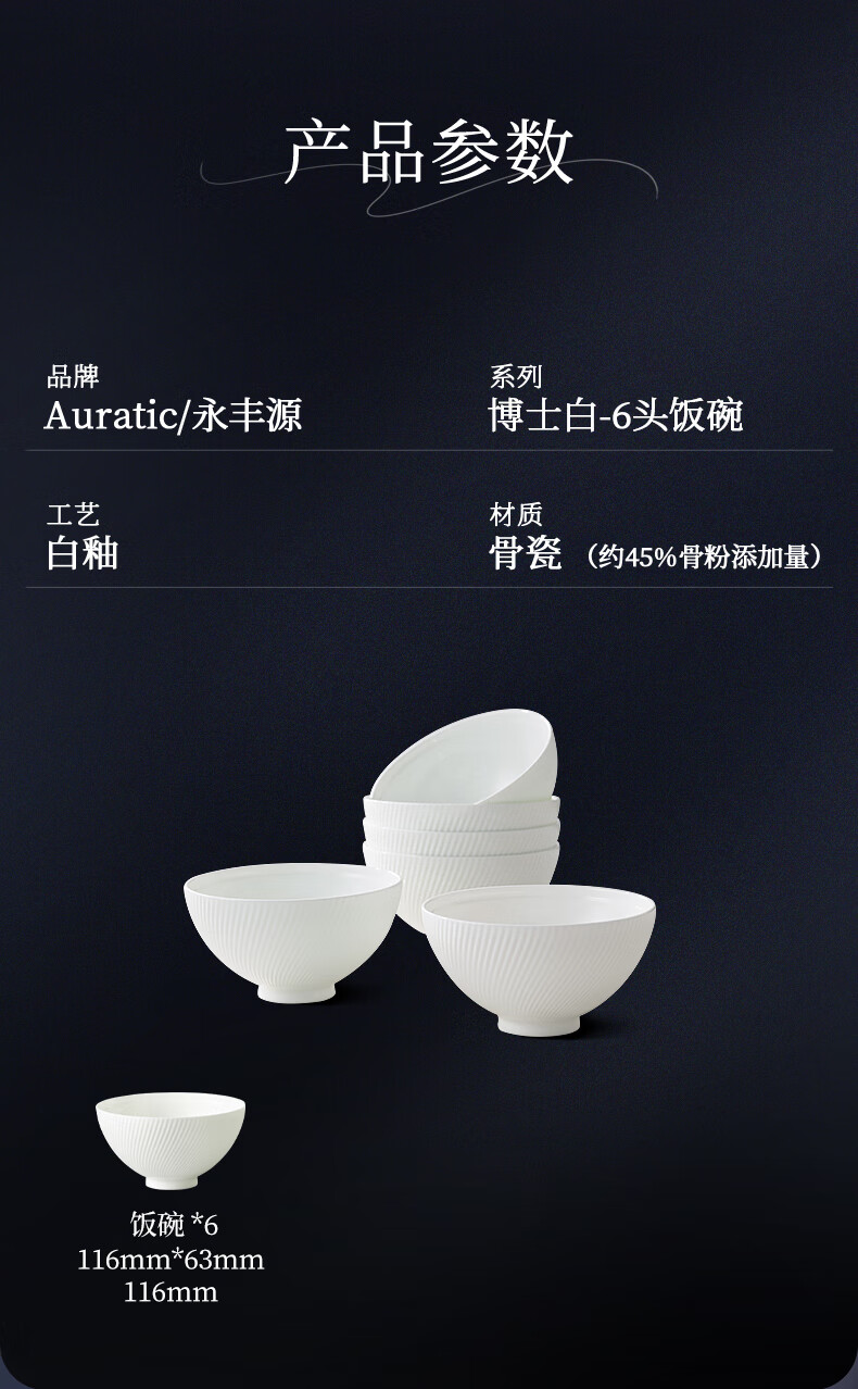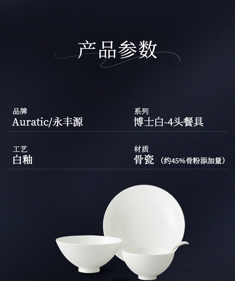 Yongfengyuan (auratic) Dr. White embossed bone china tableware set pure white bowls and plates, gift box packaging, 12-piece tableware (for 6 persons)