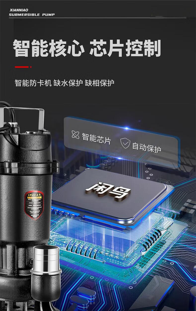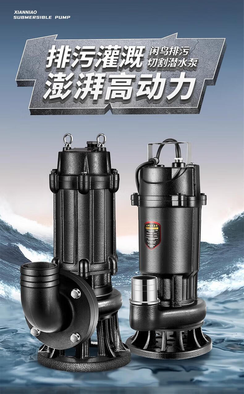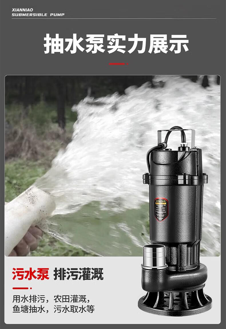 Xianniao cutting sewage pump for pumping excrement with blade mud pump for rural toilets sewage pump sludge lifting pump 1500w cutting pump 2 inch + 10 meter pipe special water pump for pumping excrement in rural areas