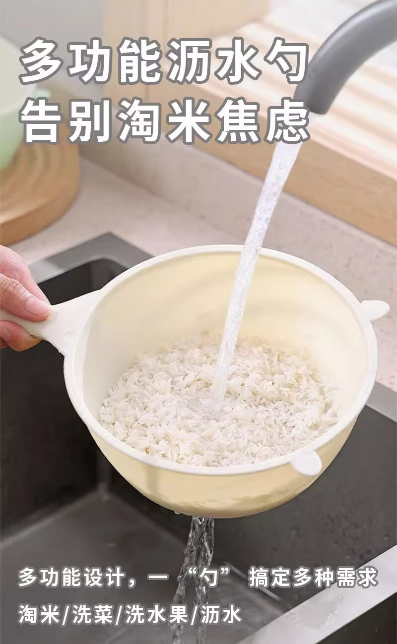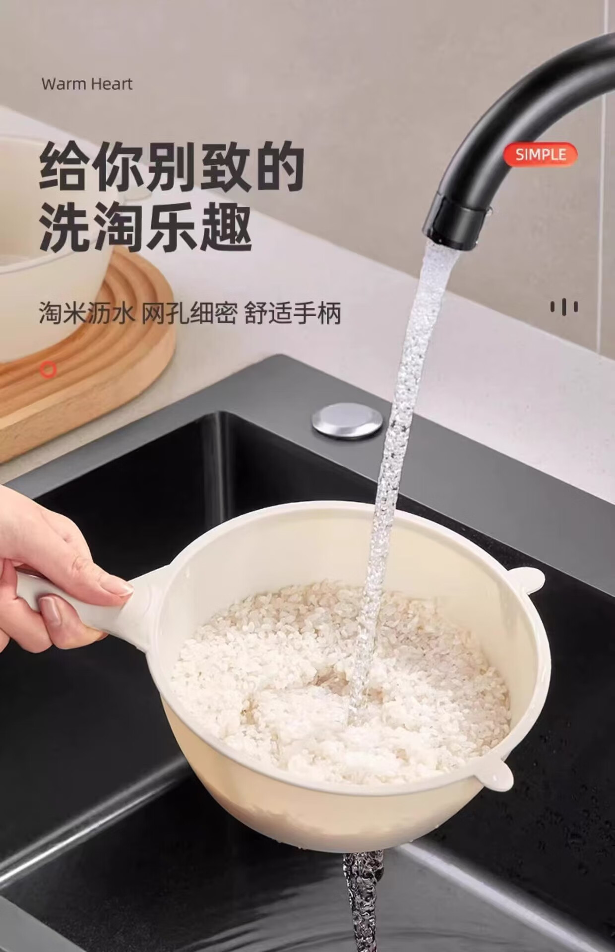 Rice washing artifact, rice washing sieve, rice washing basin, fine holes without leaking rice, household colander, kitchen washing fruit, vegetable draining basket, multifunctional draining spoon, rice white 1