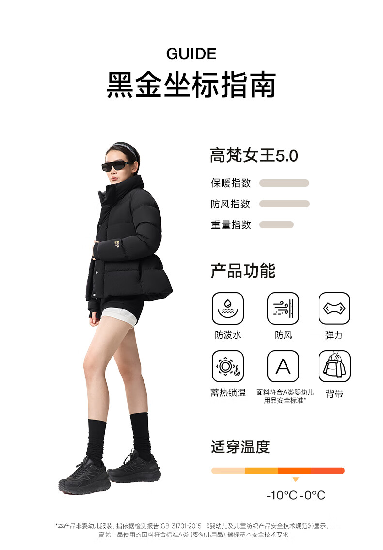 Govan Black Gold Goose Down Jacket Dynamic Queen 5.0 Waist Down Jacket 5-Gate Women's Short 2025 Winter Thick Jacket Platinum No. 6 M