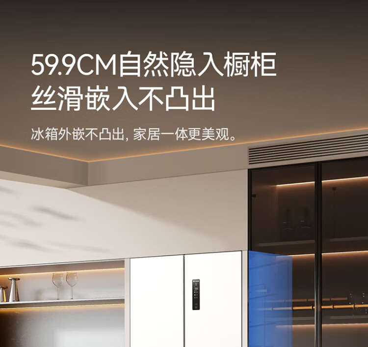 MeiLing AI Smart Refrigerator 503-liter cross-door ultra-thin zero-level embedded dual-system dual-cycle active sterilization and odor-free first-class air-cooled refrigerator AI Smart BCD-503WSPU9CZX-Grey