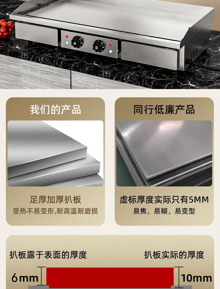 Raft core Teppanyaki Teppanyaki all-in-one machine mirror non-stick electric griddle commercial hand cake machine equipment fried steak squid stall grilled cold noodles machine chrome-plated mirror anti-black non-stick
