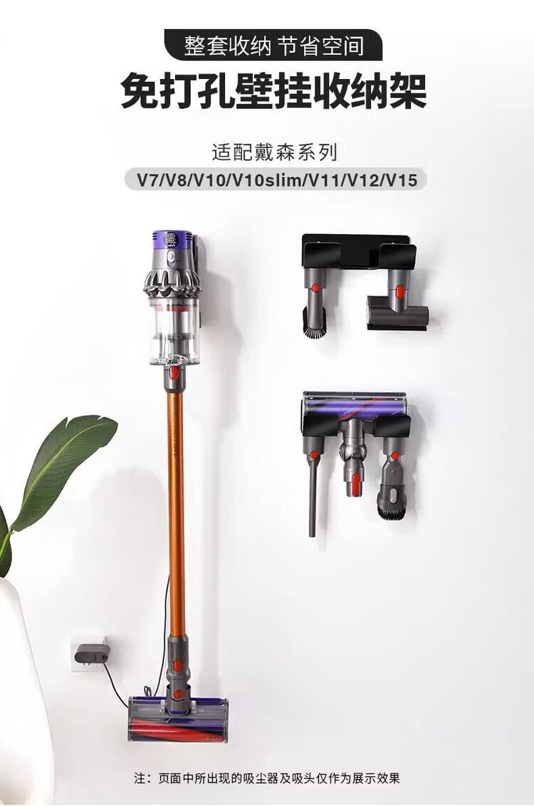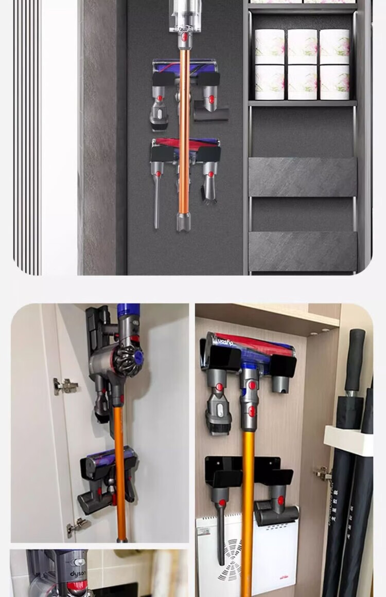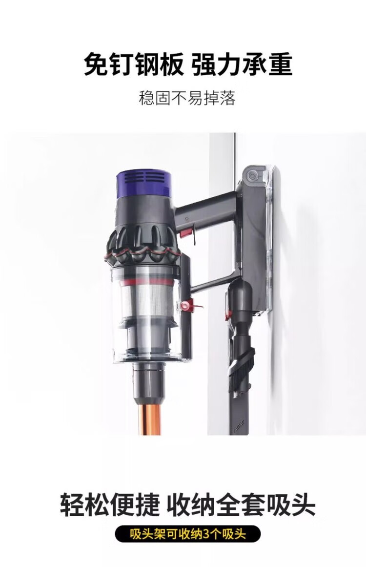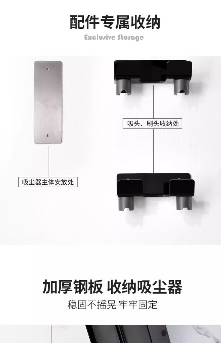Diaohuang German vacuum cleaner bracket universal Dyson wall-mounted storage rack V7V8V10V11V12V15 suction head organizer Dyson storage rack nail-free steel plate-304 brushed style