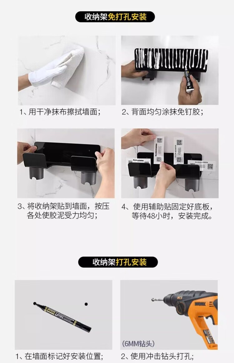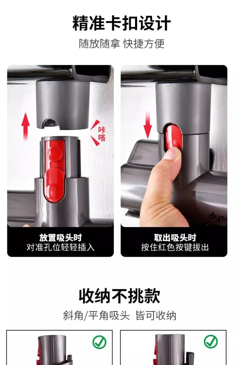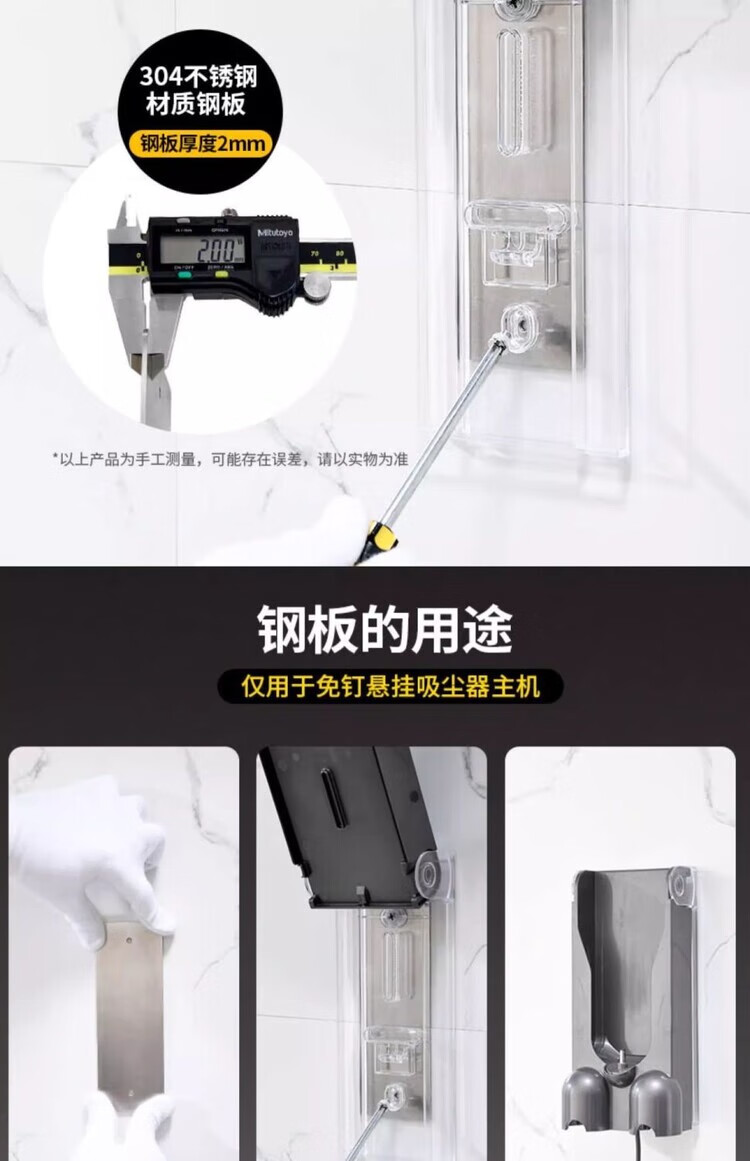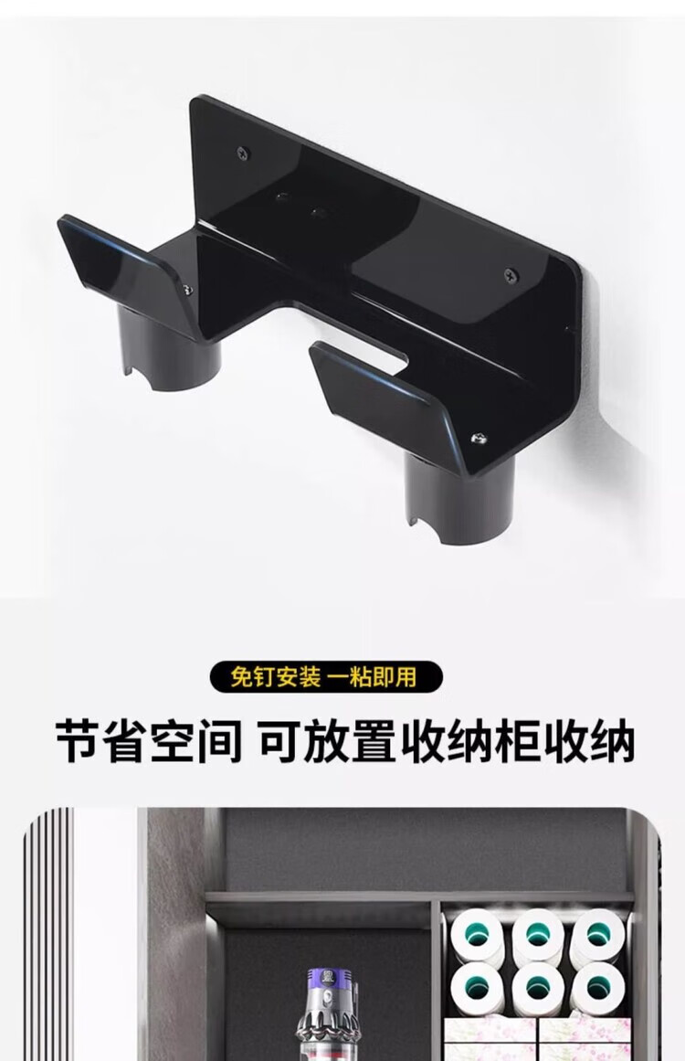 Diaohuang German vacuum cleaner bracket universal Dyson wall-mounted storage rack V7V8V10V11V12V15 suction head organizer Dyson storage rack nail-free steel plate-304 brushed style