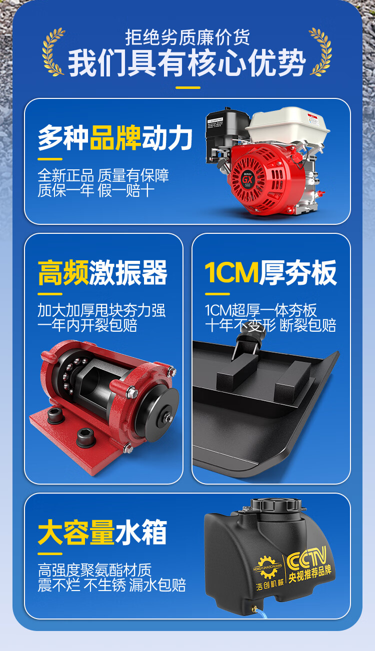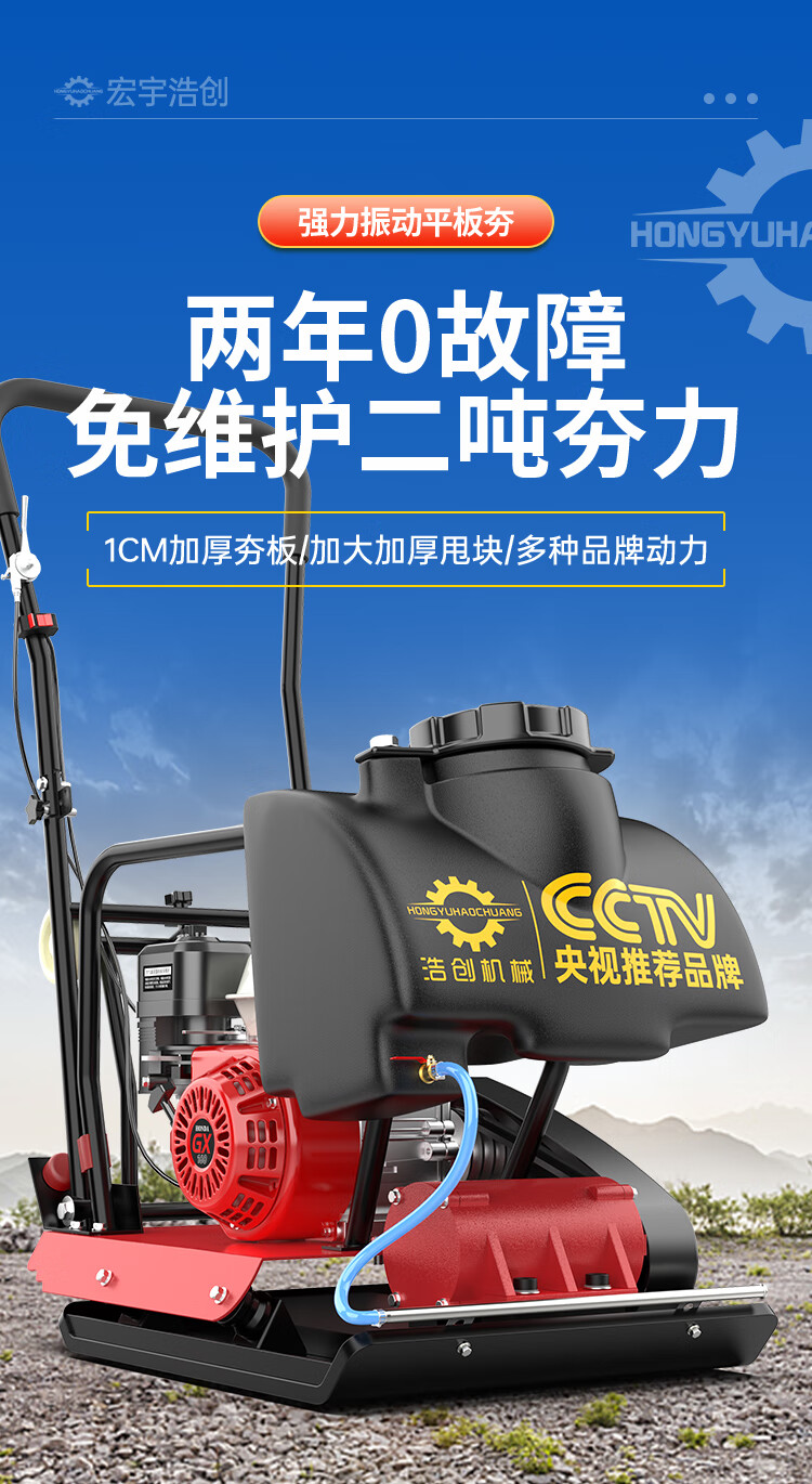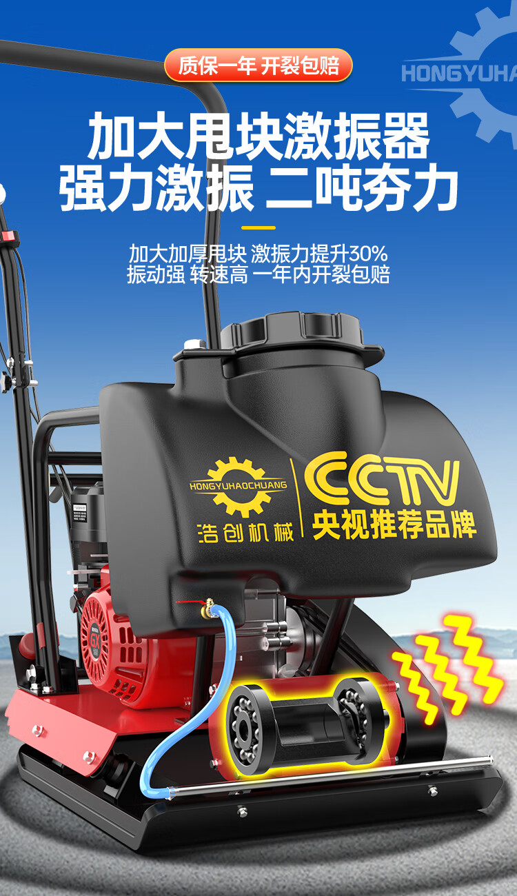 Hongyu Haochuang gasoline flat plate compactor electric diesel road asphalt foundation vibration ground tamper compactor vibration rammer type 90 newly upgraded rotary gasoline power