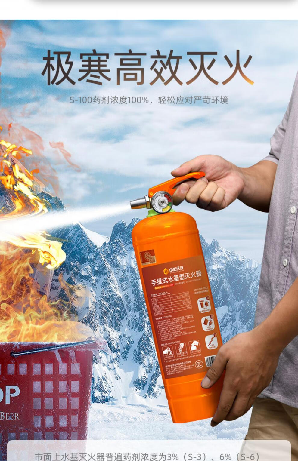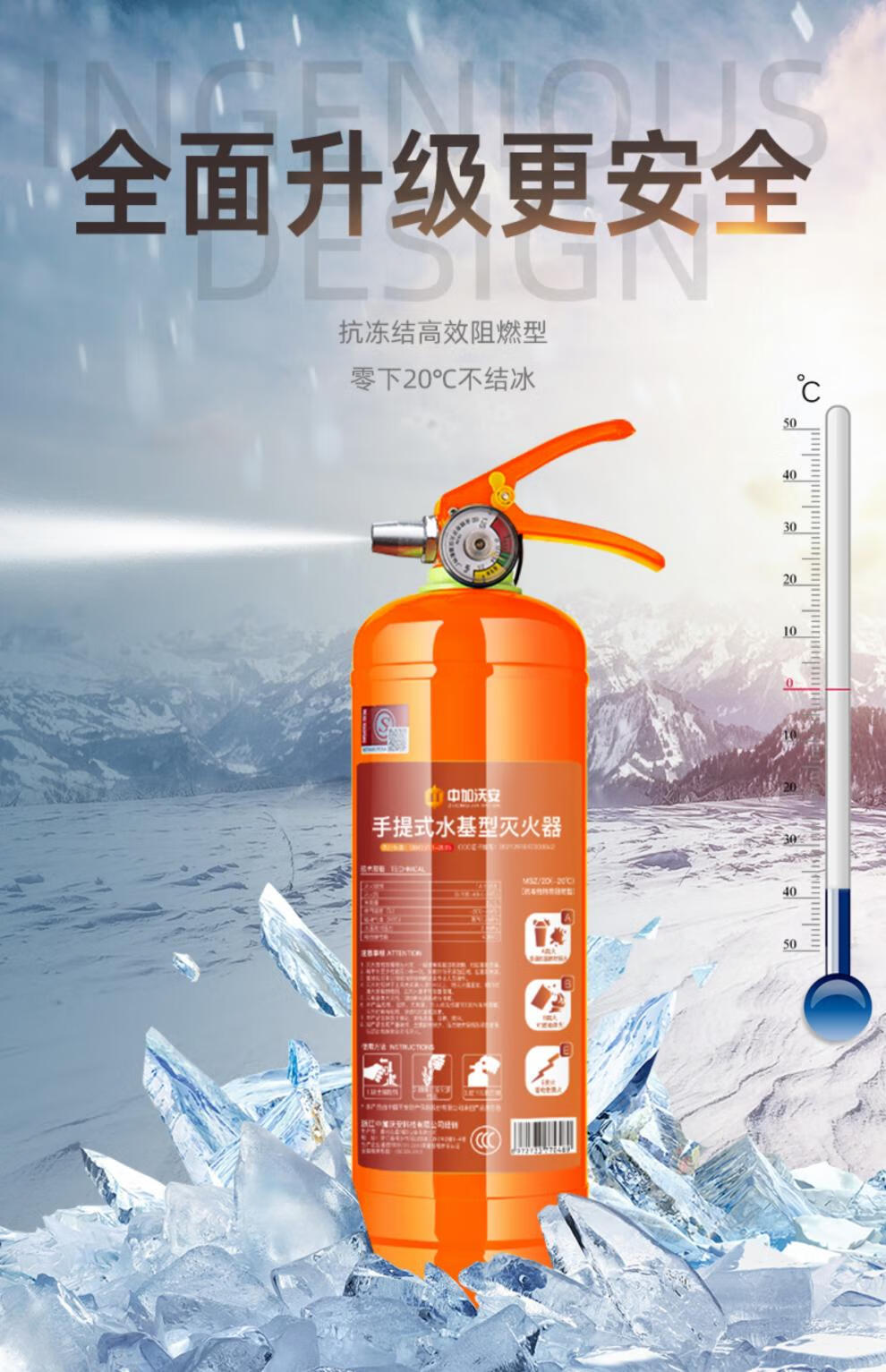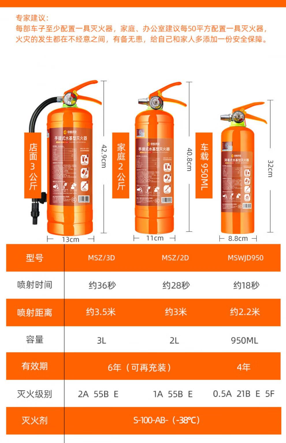 Zhongjia Woan orange low-temperature antifreeze water-based fire extinguisher household consumer goods certificate shop portable vehicle fire-fighting equipment family of three combination fire extinguishing agent-20 non-freezing