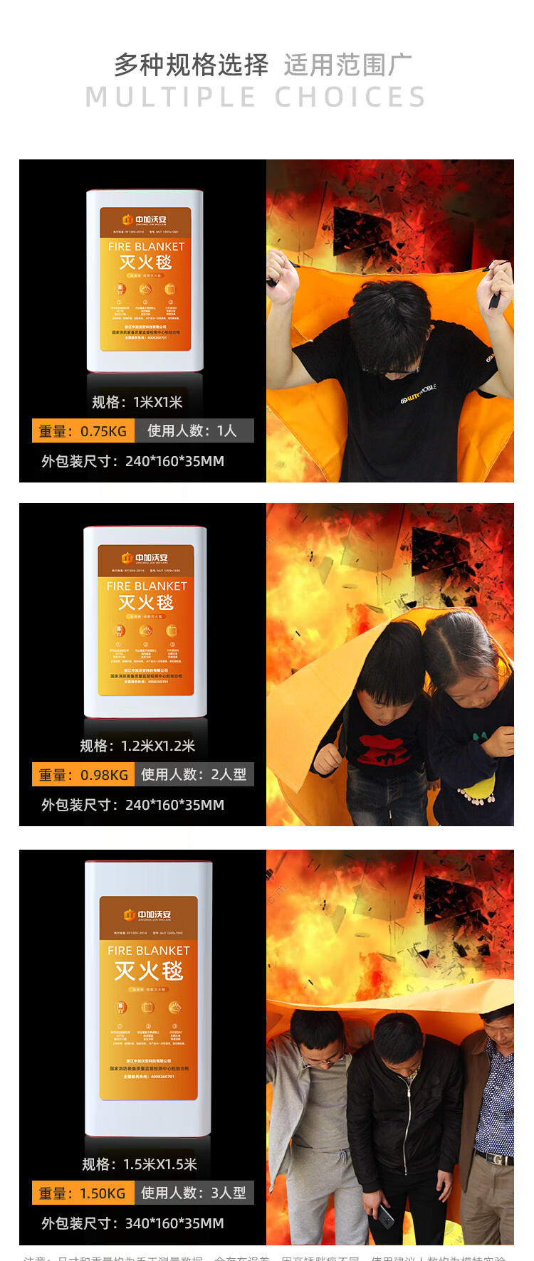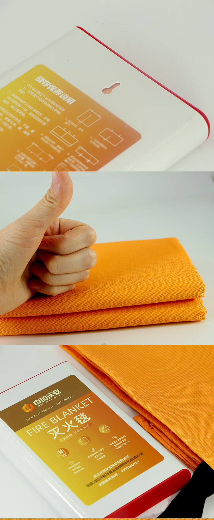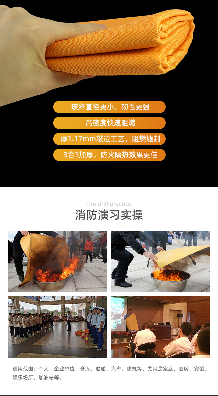Zhongjia Woan Fire Blanket Household Fire Fighting Supplies Kitchen Special Fiberglass Commercial Home Fire Fighting Equipment Not Easy to Prick Silicone 1.2 Meter Fire Fighting Blanket CE Certification
