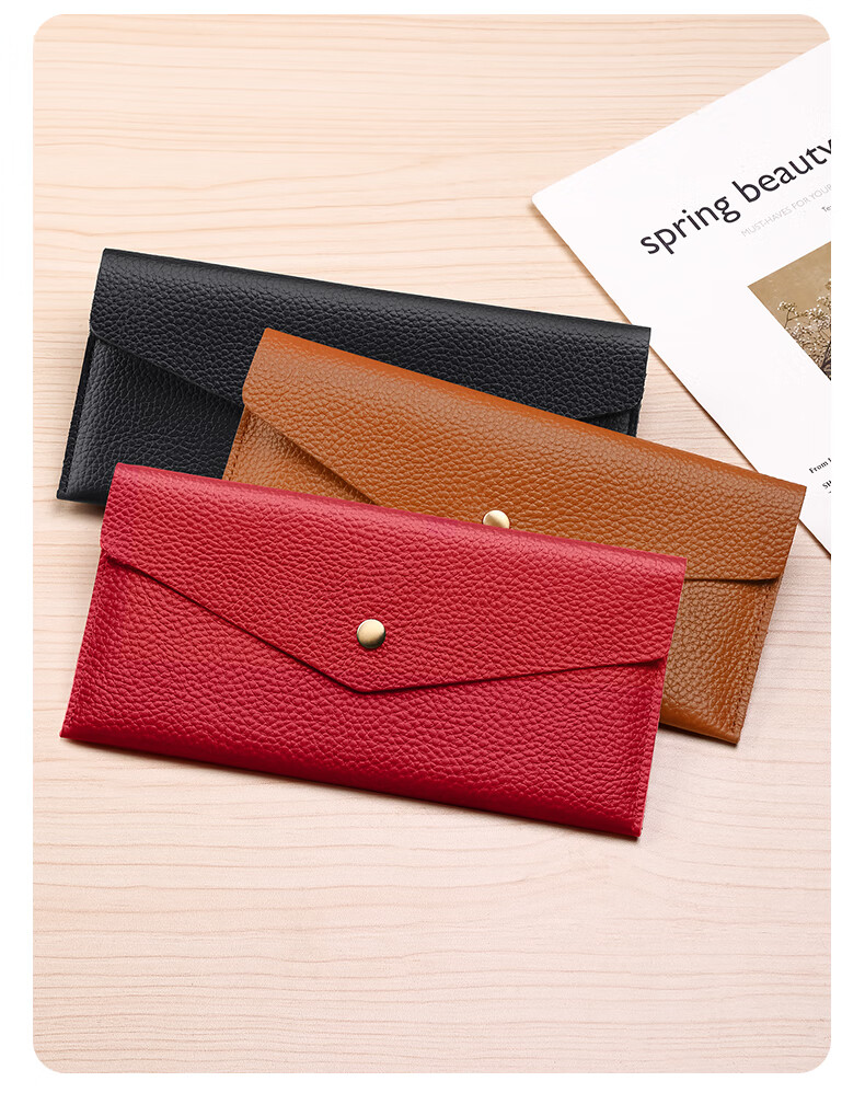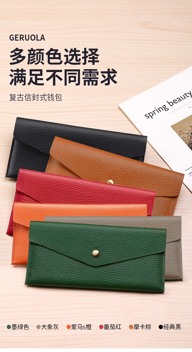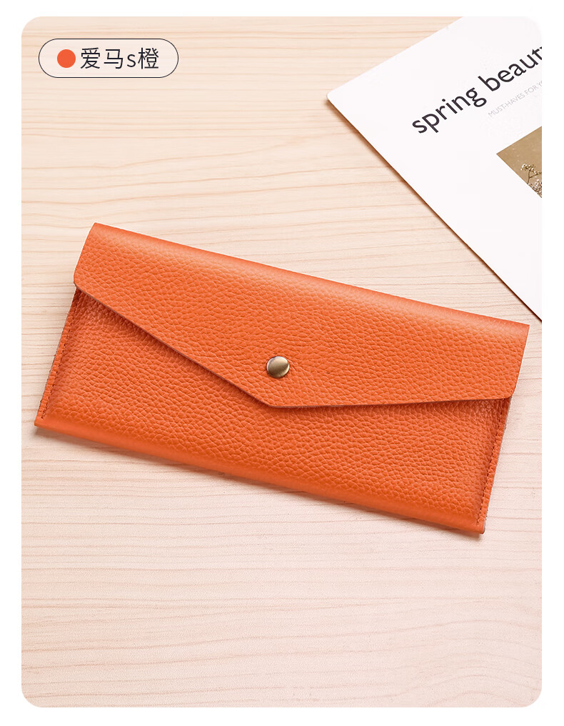 KGAG Japanese imported brand women's long Valentine's Day cash storage bag high-value coin bag genuine leather soft leather envelope collection Ai Ma S Orange - first layer cowhide