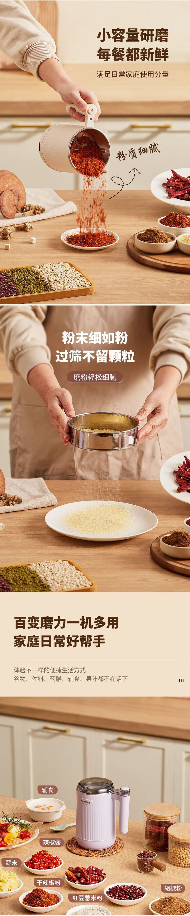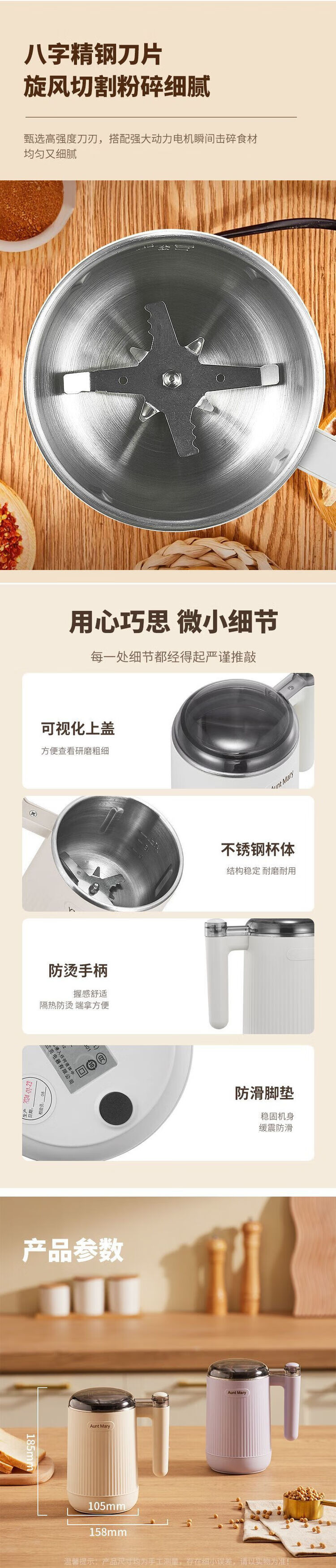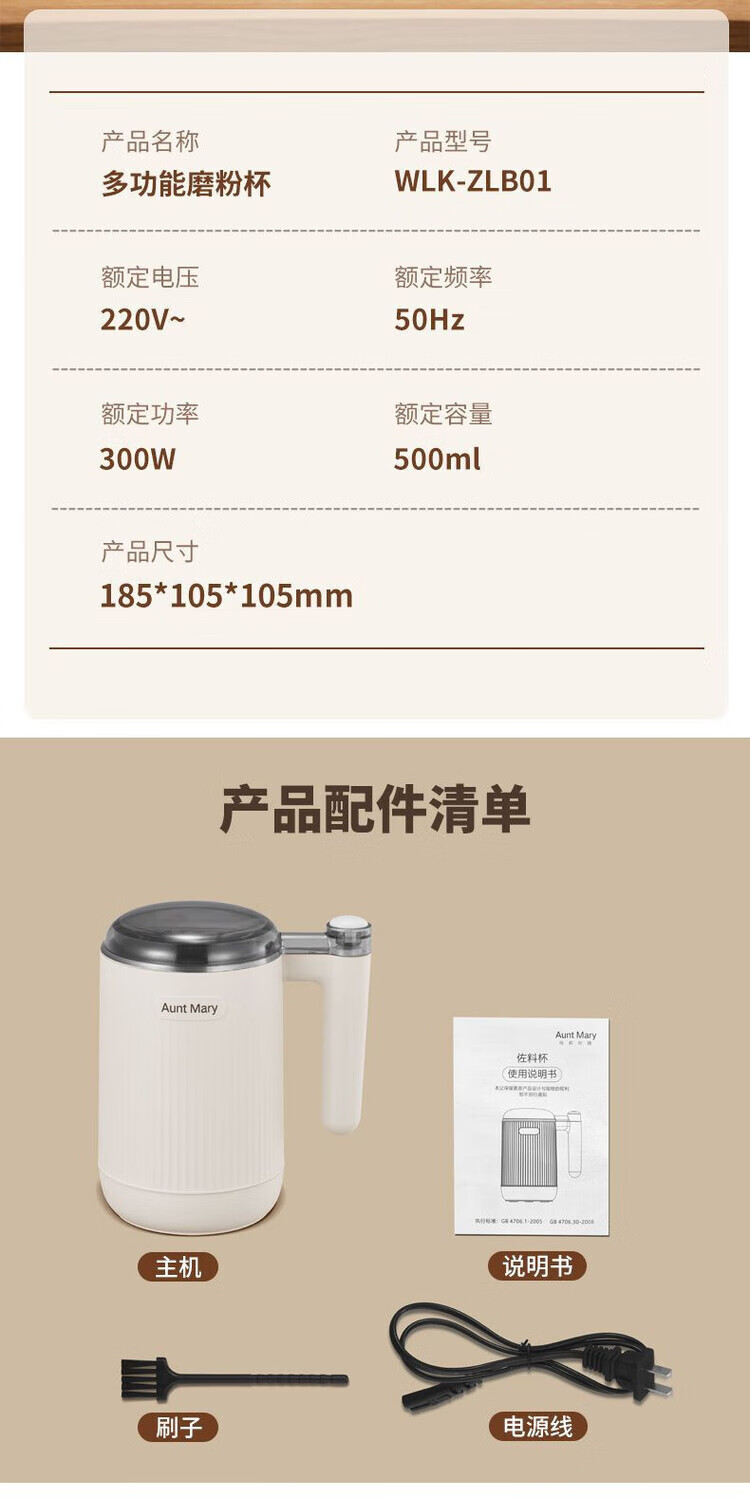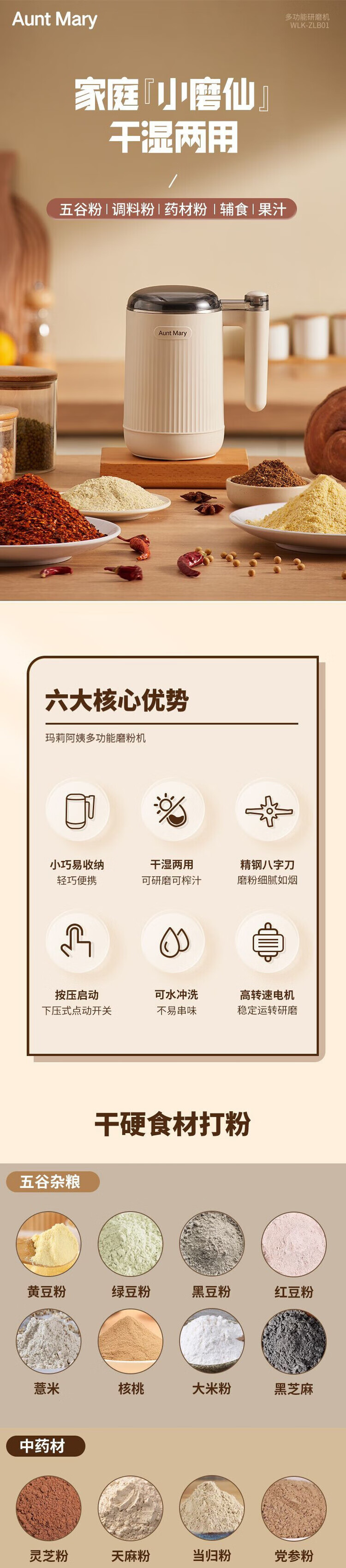 AUNT MARY grinder household ultra-fine wet and dry grinding mill grain grinder grinder off-white wet and dry-rapid grinding