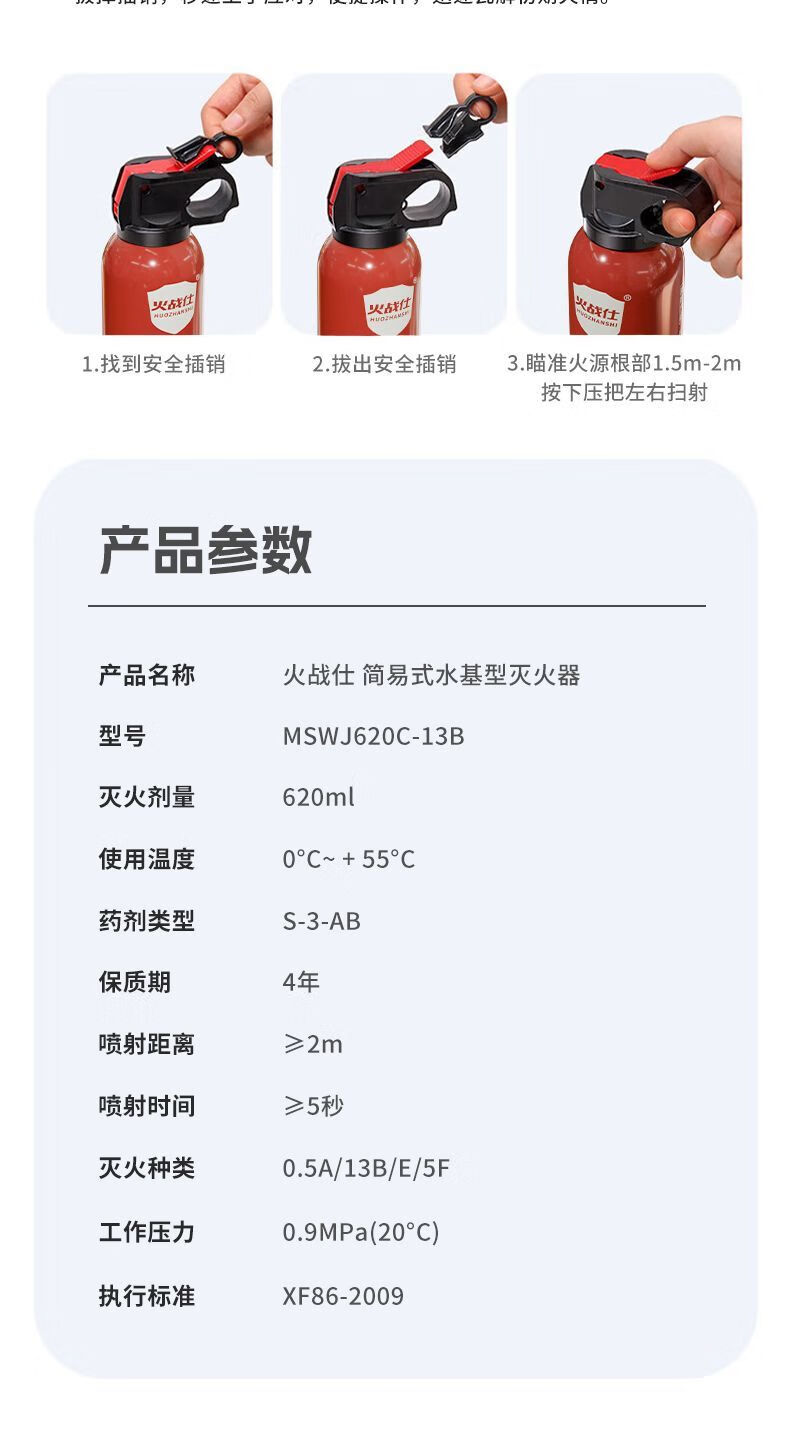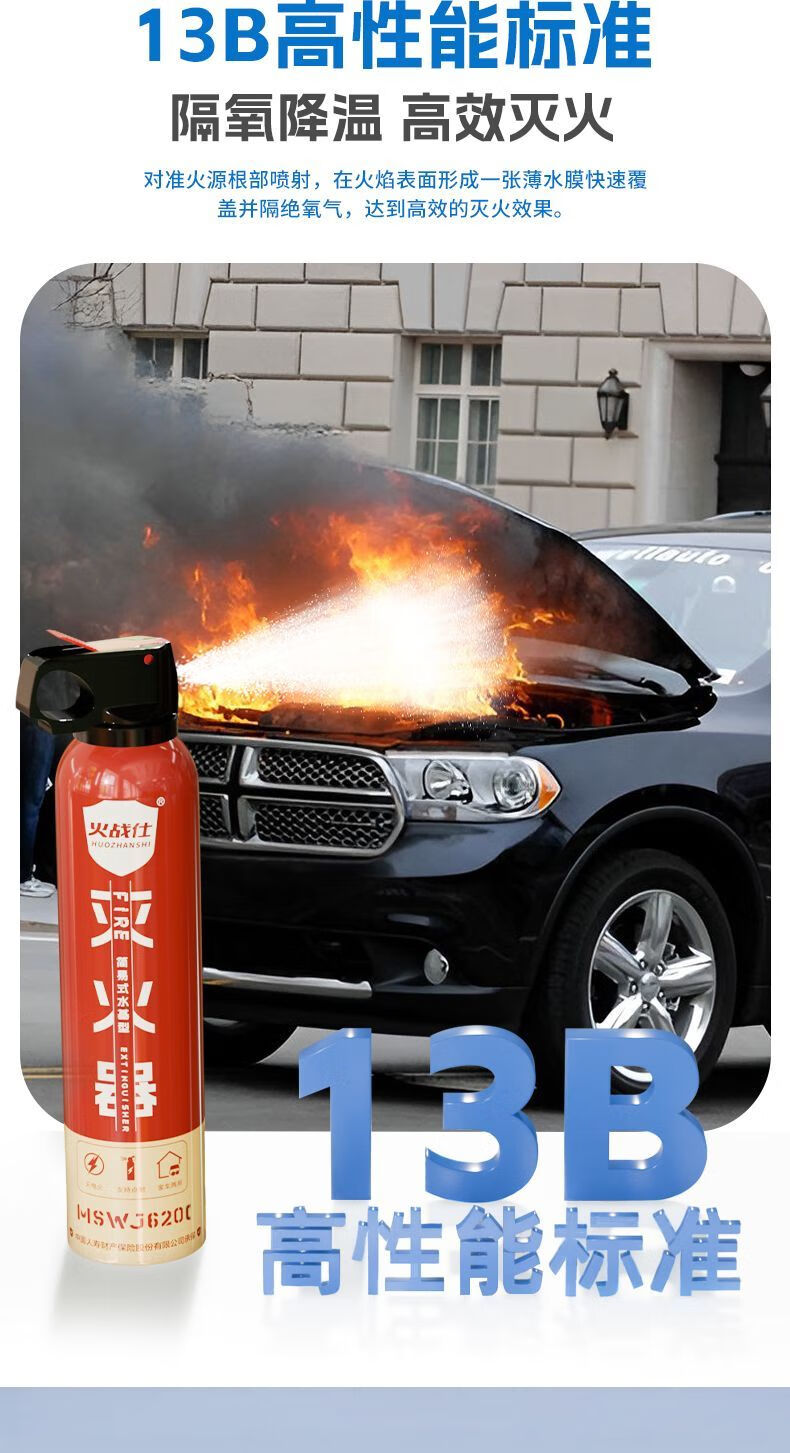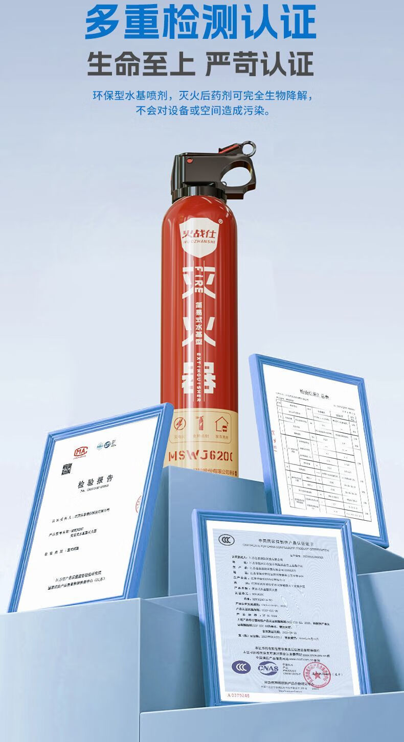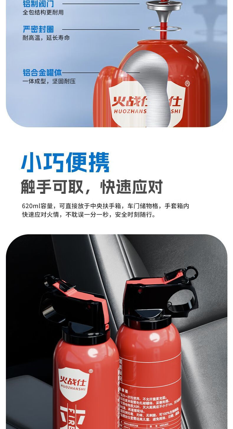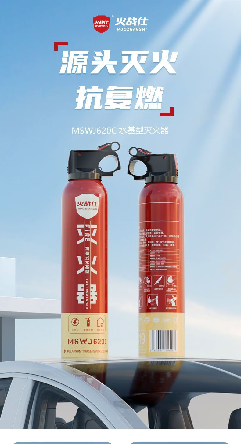 Vinoa's new car-home dual-purpose enhanced water-based fire extinguisher, oil fire and electric fire, can be used for high-temperature explosion-proof 1L carbon dioxide. Vehicle inspection passed - oil truck and electric car upgraded agent 620C*1 fire protection certification valid for four years