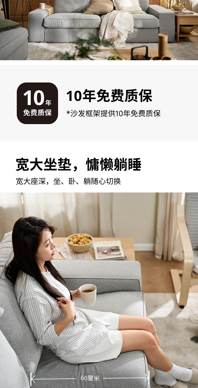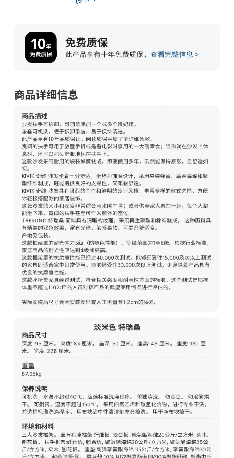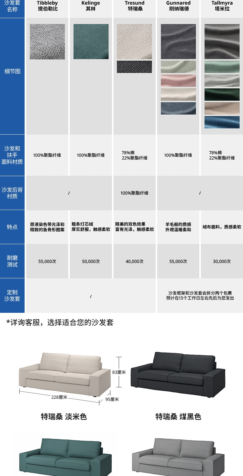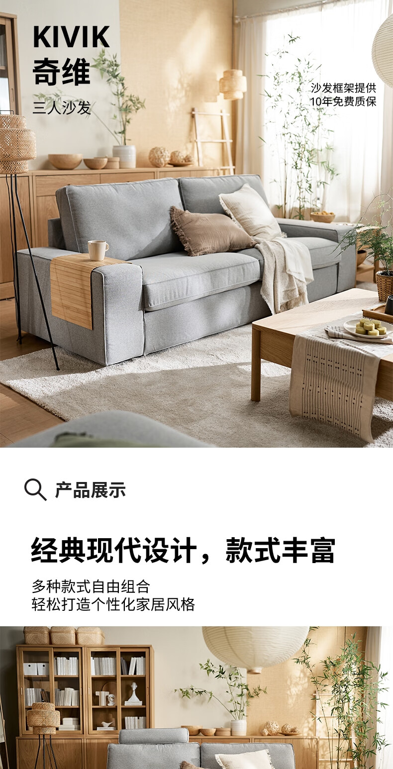 IKEA (IKEA) KIVIK three-person fabric sofa removable and washable living room home beige/grey Tiborby