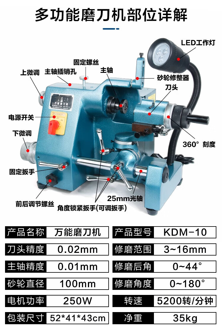 FHJQB Knife Grinder Belt Woodworking Drill High Precision Knife Grinder Hand-cranked Industrial Milling Cutter Grinding Wheel 220V Optical Machine, Not Included Chuck Grinding Wheel Belt