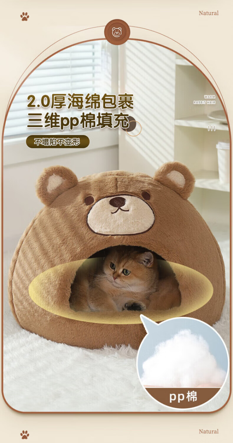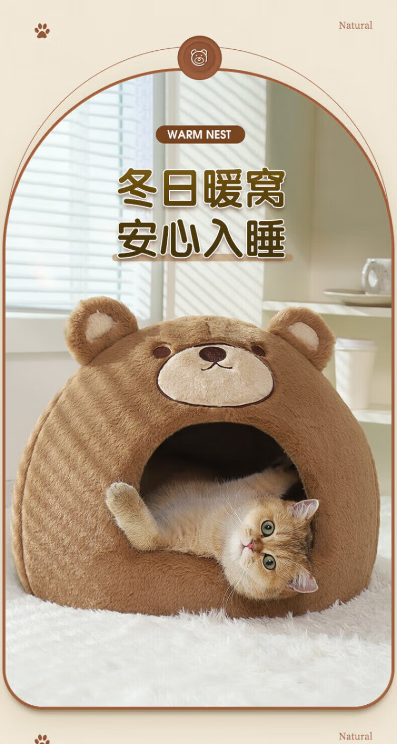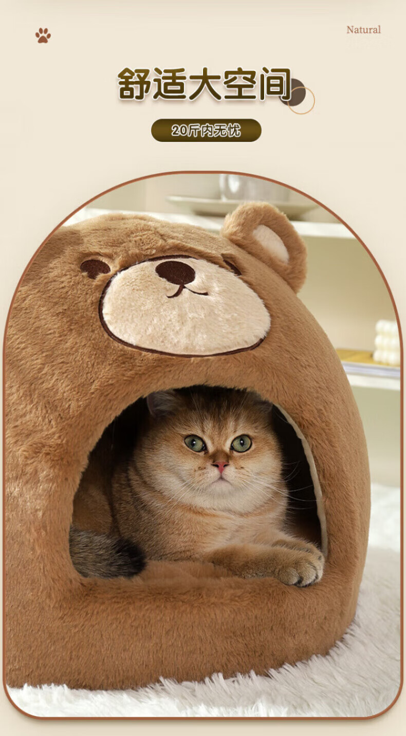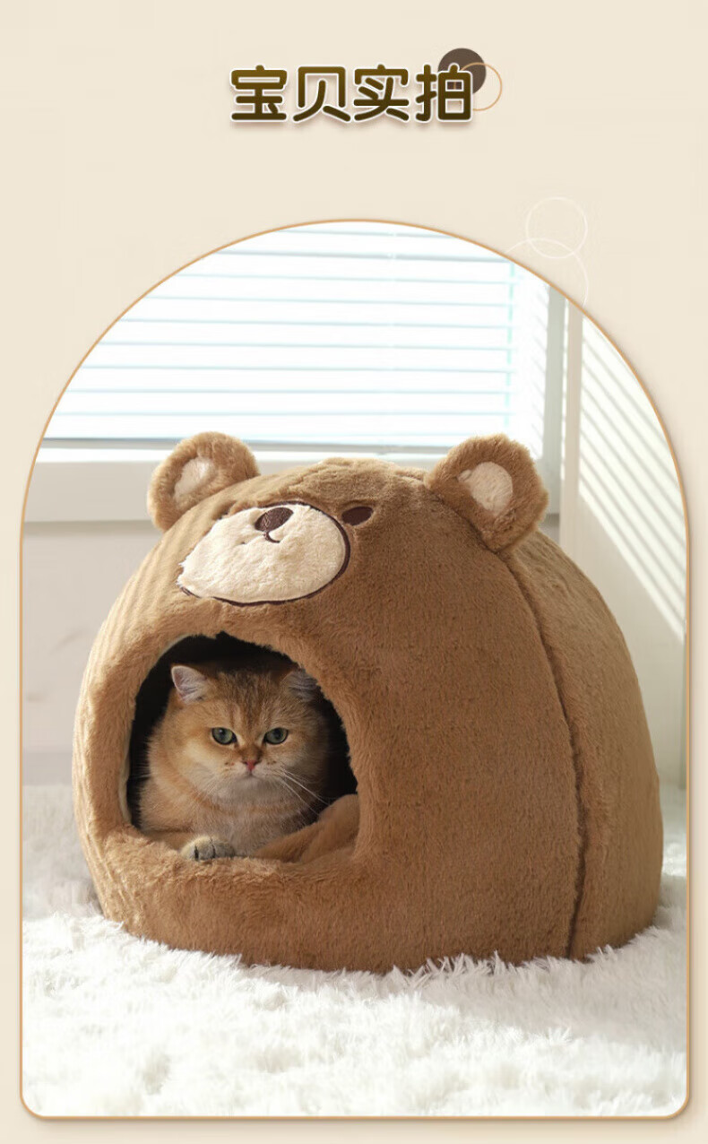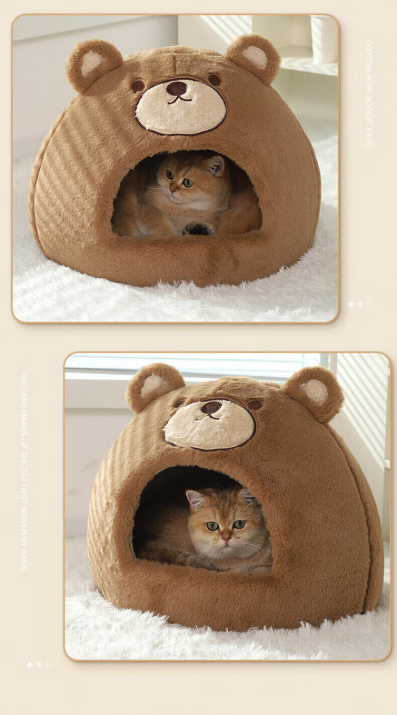 Beichuzhong Cat House Warmth Winter Closed Winter Special Cat House Removable and Washable Cat House Pet Kennel Universal for All Seasons Cute Bear-L Recommended within 12 pounds Closed and thickened to keep warm