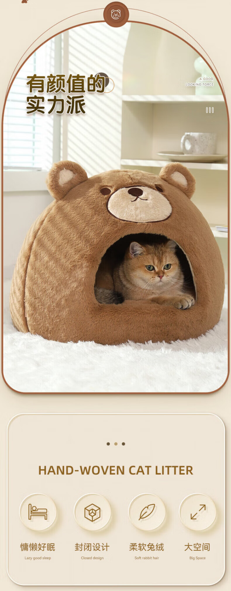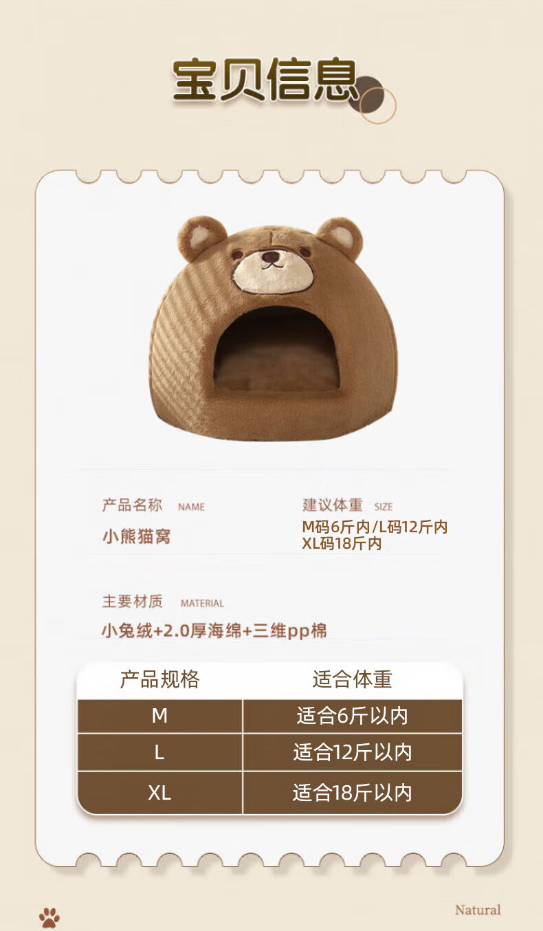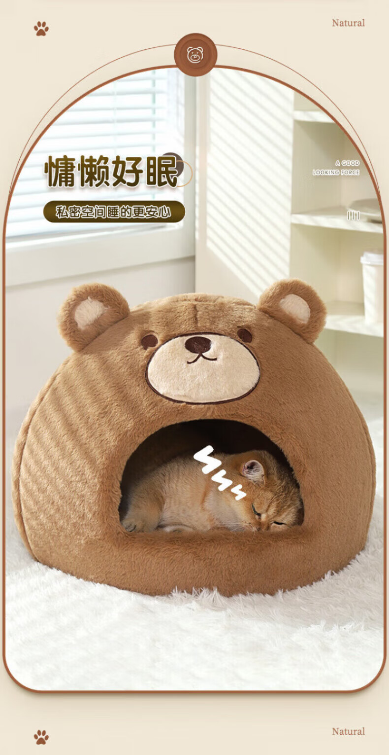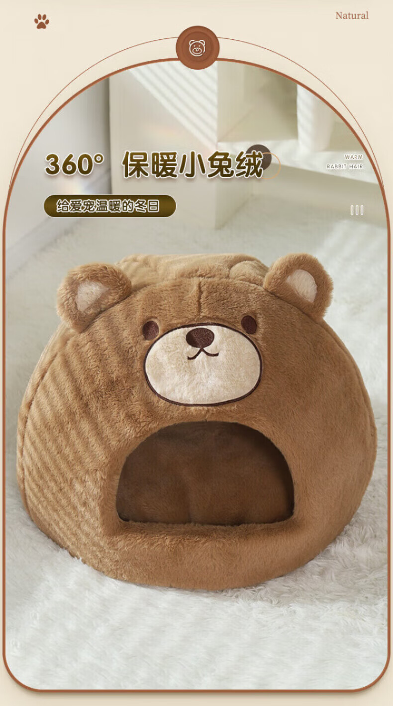 Beichuzhong Cat House Warmth Winter Closed Winter Special Cat House Removable and Washable Cat House Pet Kennel Universal for All Seasons Cute Bear-L Recommended within 12 pounds Closed and thickened to keep warm