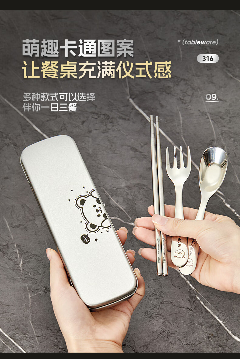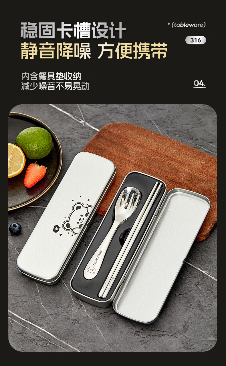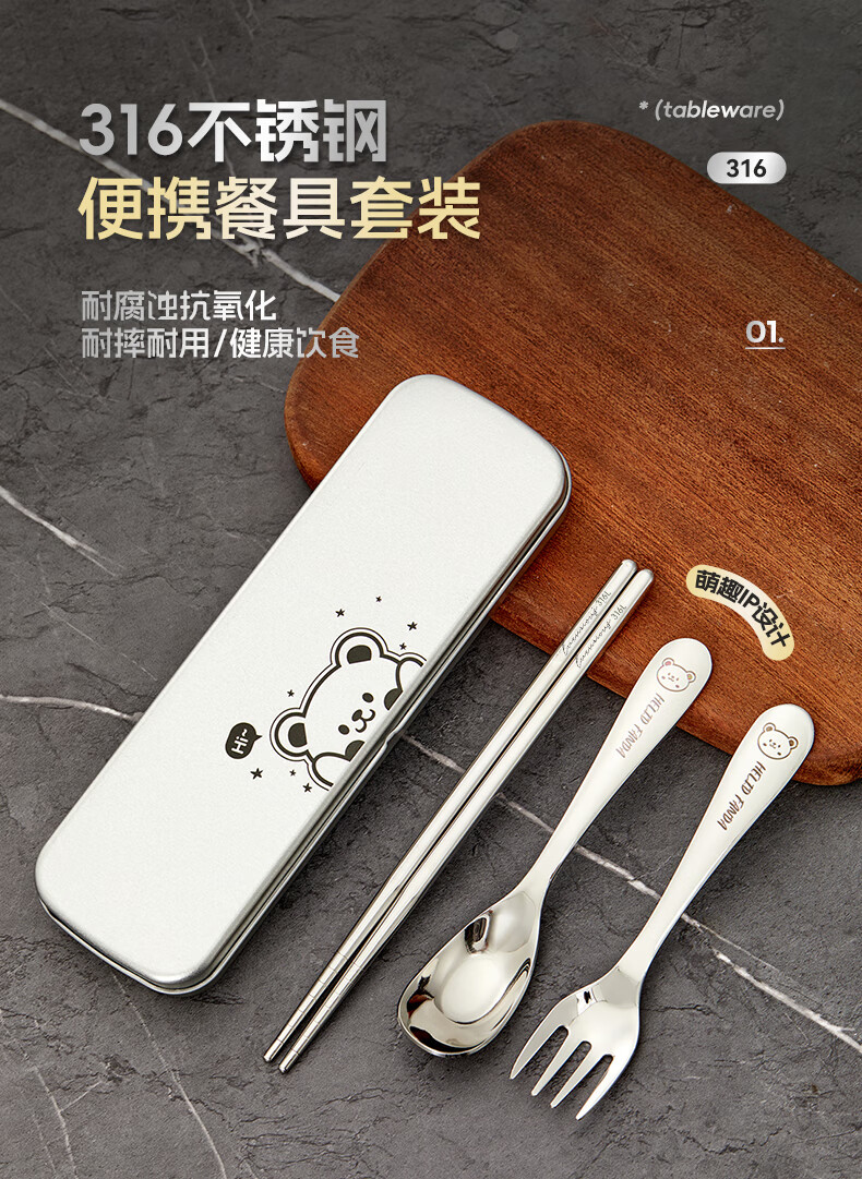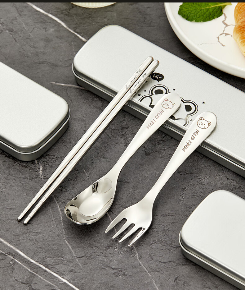 WORTHBUY 316 stainless steel chopsticks and spoon set student portable tableware set storage box chopsticks and spoon cutlery box for one person lucky 316 chopsticks + spoon + iron box
