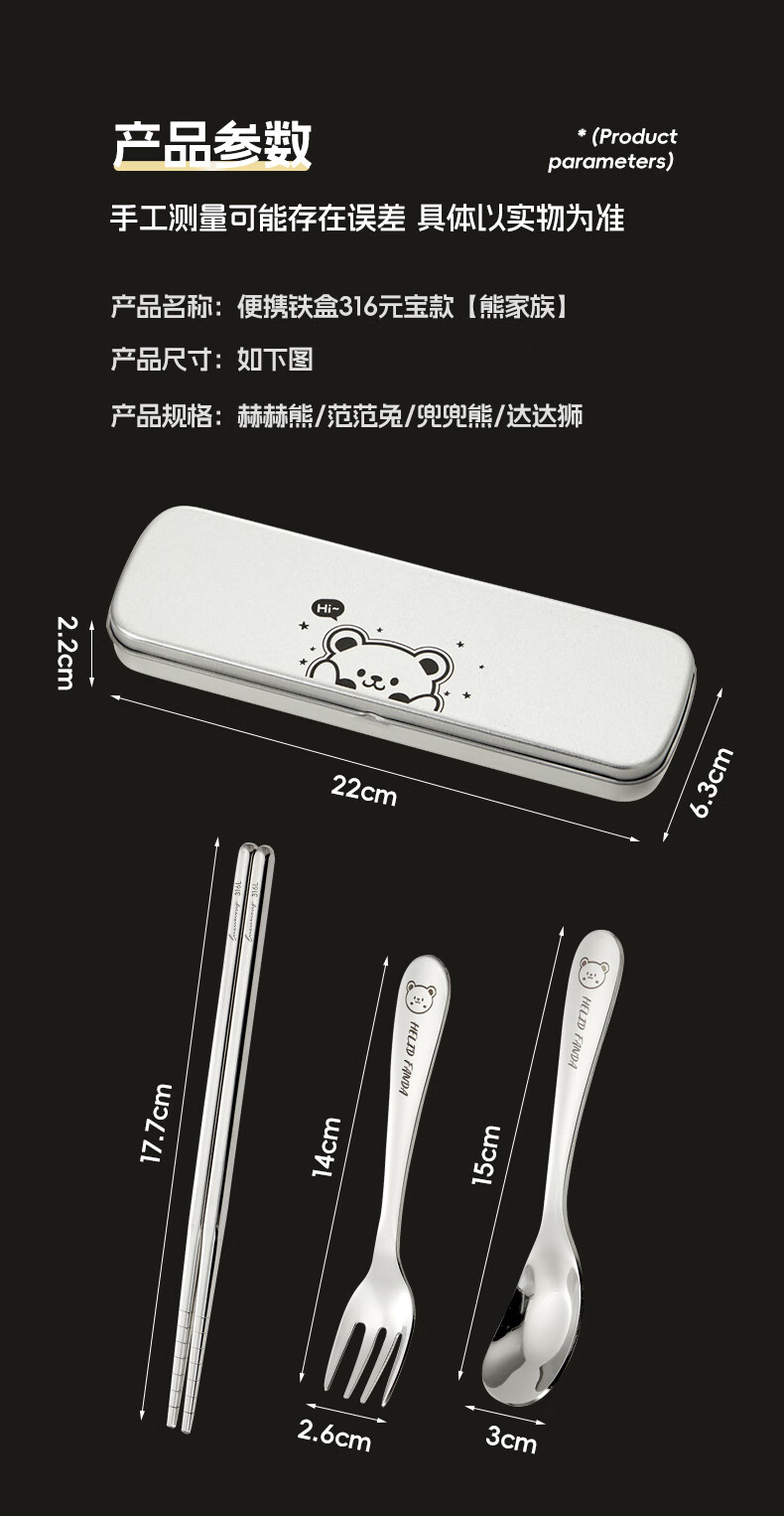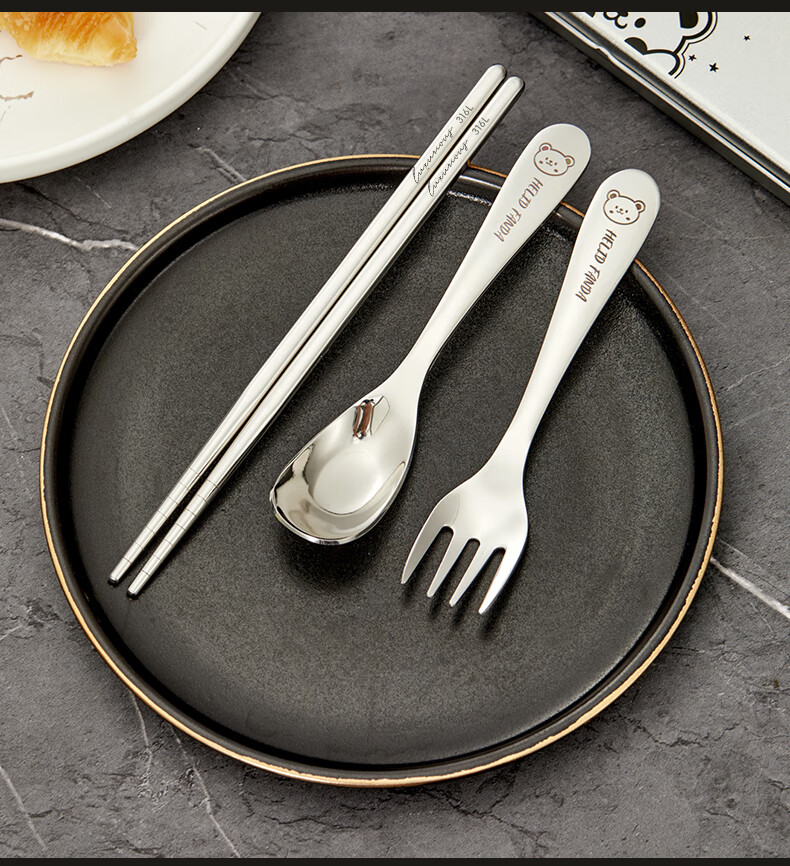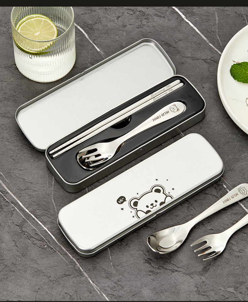 WORTHBUY 316 stainless steel chopsticks and spoon set student portable tableware set storage box chopsticks and spoon cutlery box for one person lucky 316 chopsticks + spoon + iron box