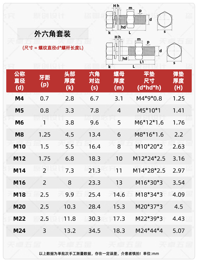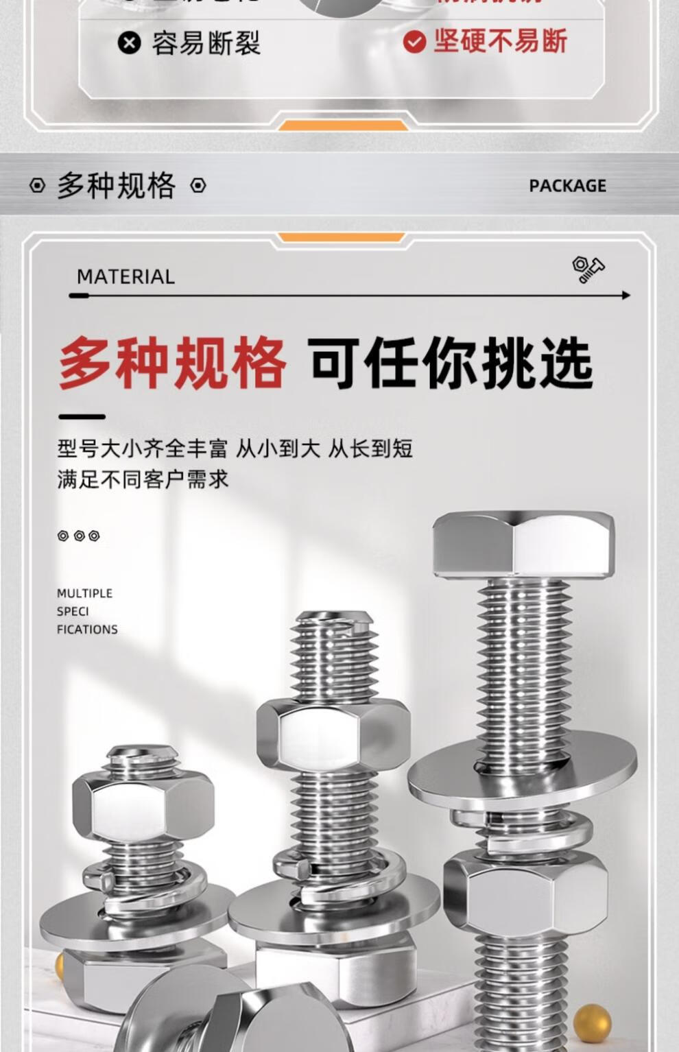 Tianzhuo Hardware 201 stainless steel external hexagonal bolt and nut set screw flat elastic gasket combination M8M10 M10*30-20 set