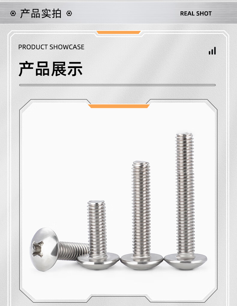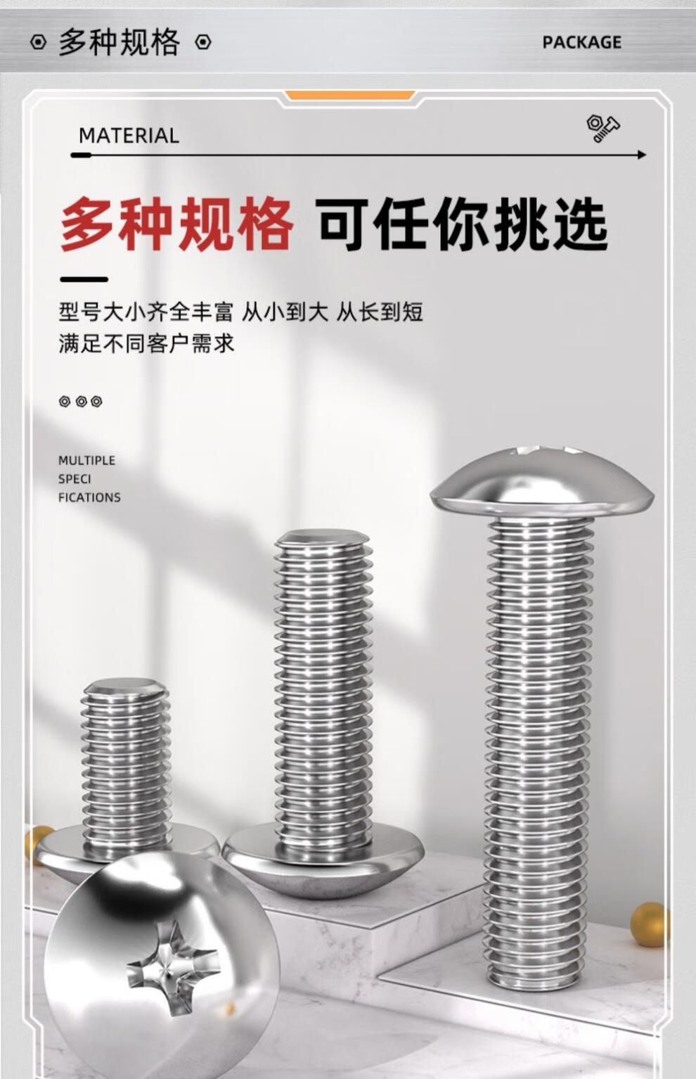 Tianzhuo Hardware 304 stainless steel cross large flat head screw umbrella machine screw mushroom head bolt round head M4M5 M5*18-50 304