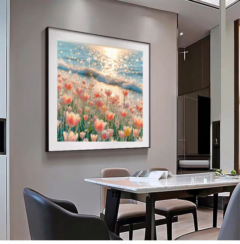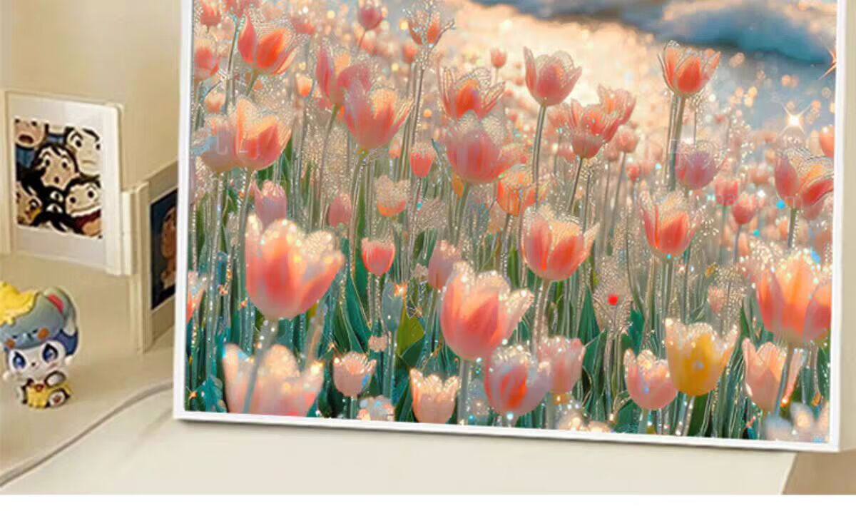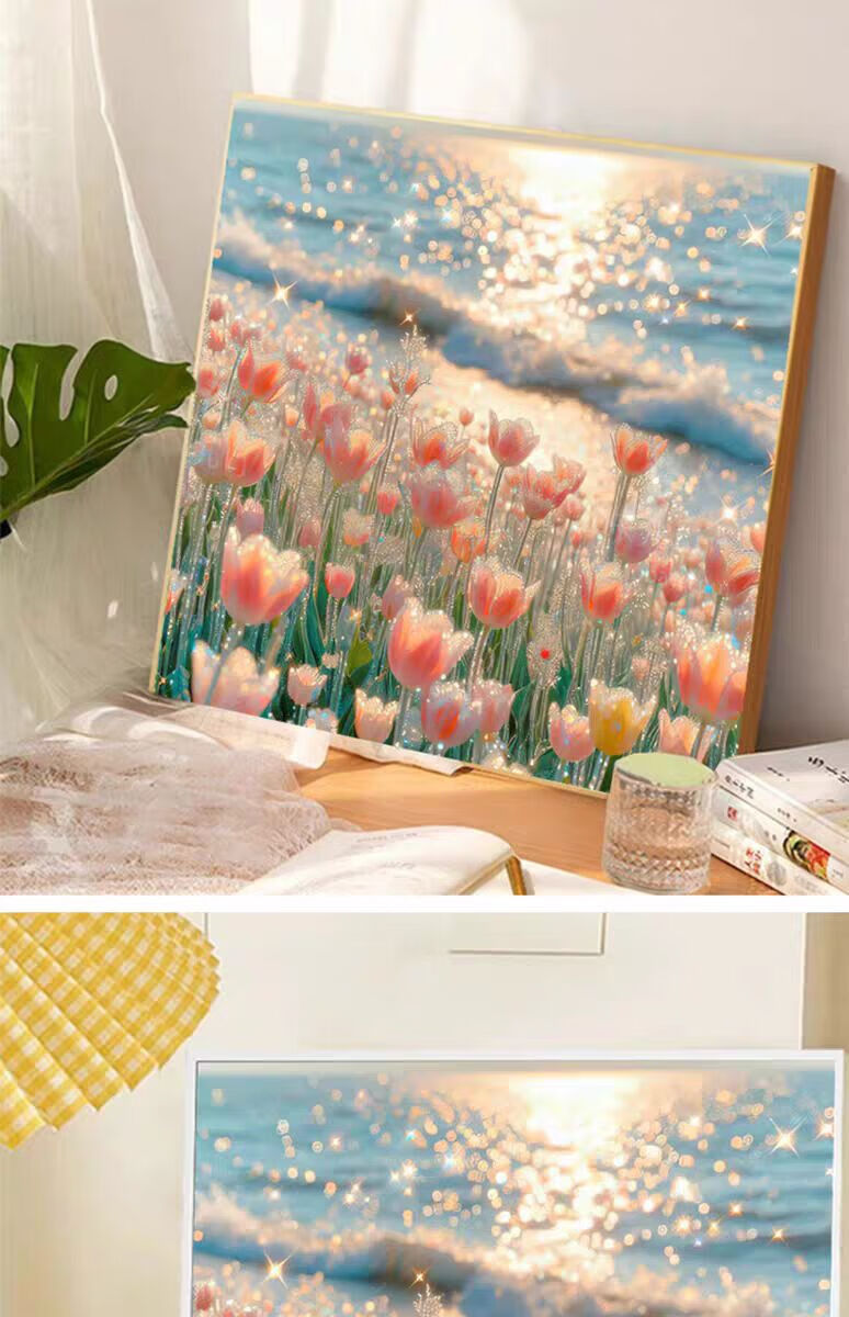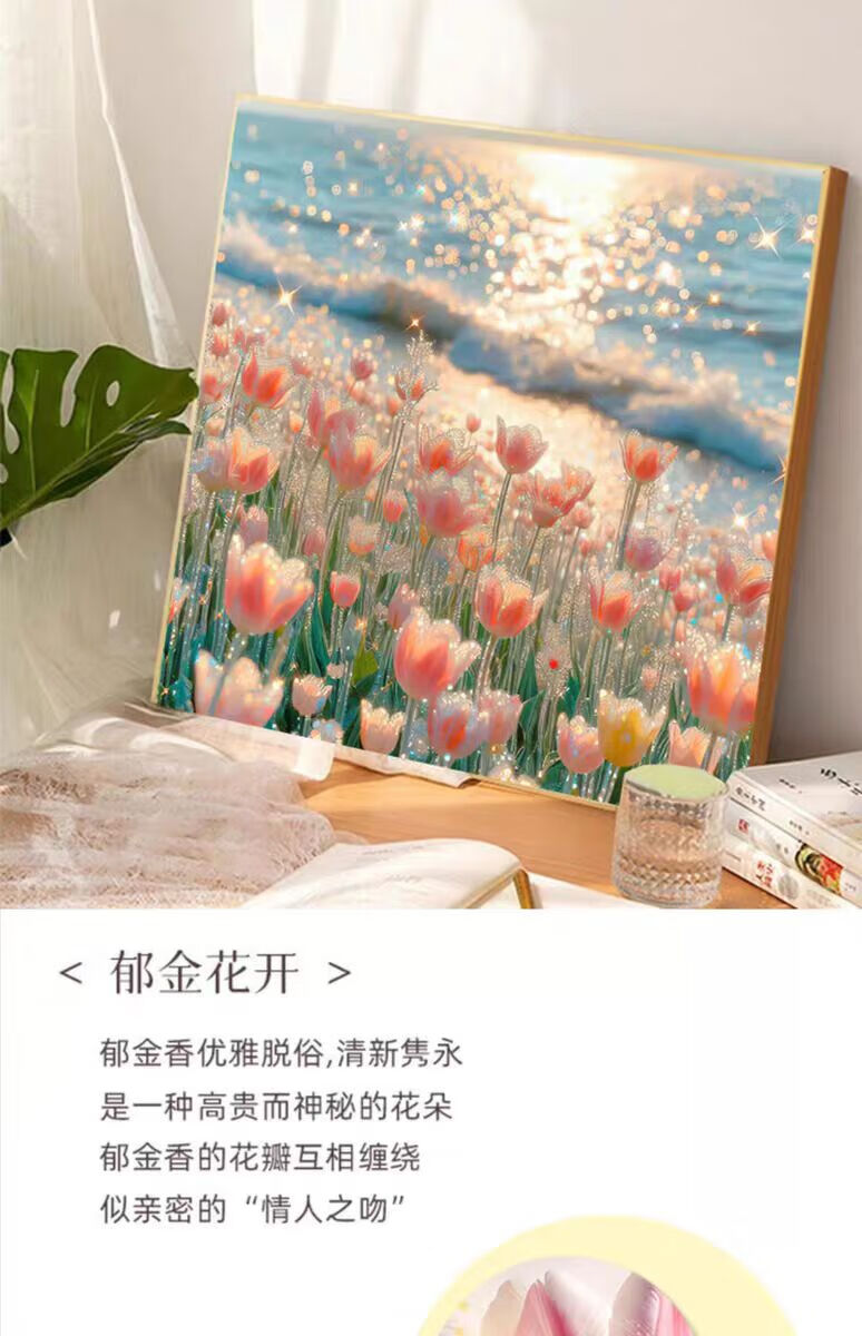 Kecss tulip cross stitch 2025 new line embroidery living room self-embroidery hand embroidery bedroom full embroidery vertical version entrance hall cotton thread 50*50CM medium grid 3-strand thread embroidery