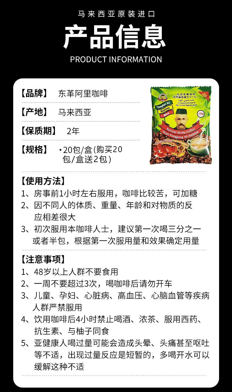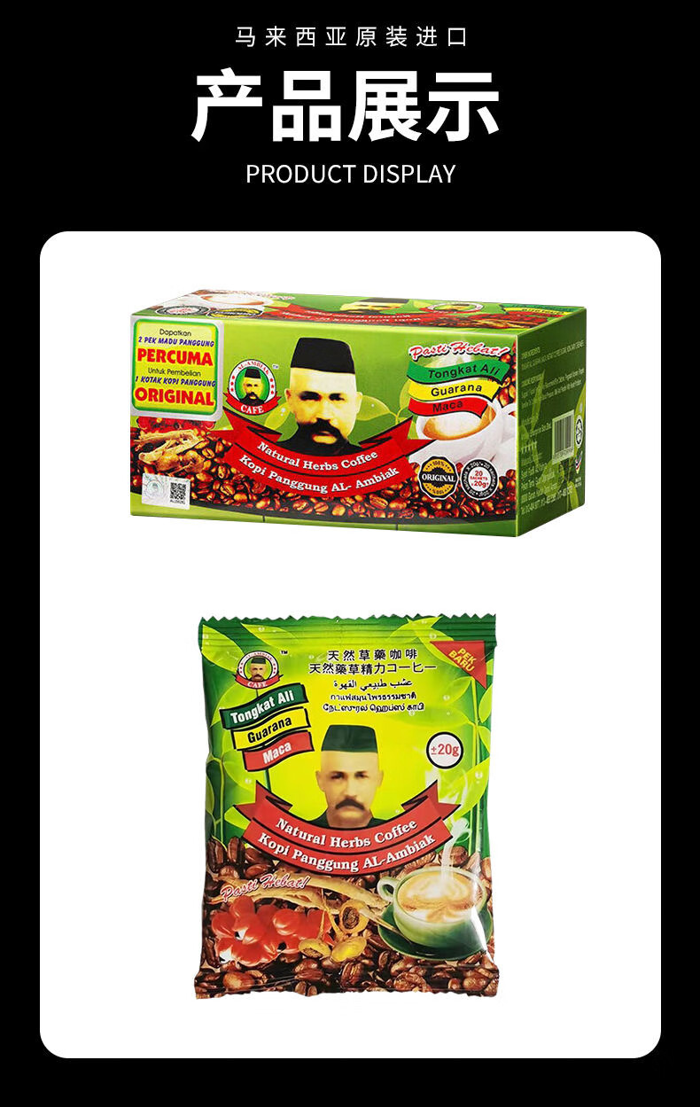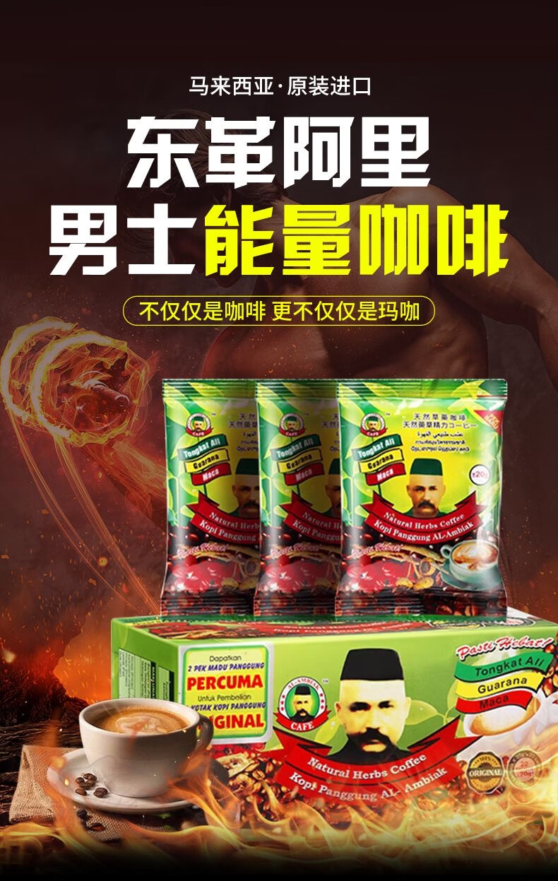 KITE KONNECT Tongkat Ali Malaysian Men's Coffee Instant Energy Old Man's Head Herbal Original Imported Tongkat Ali Original Genuine Coffee One Box