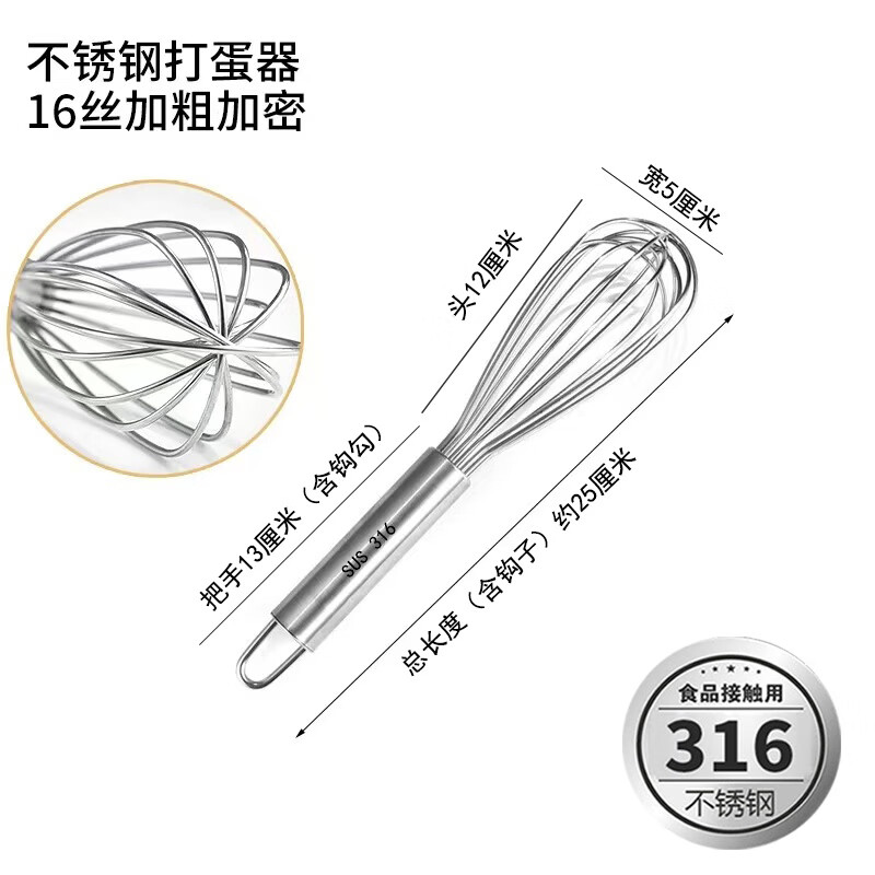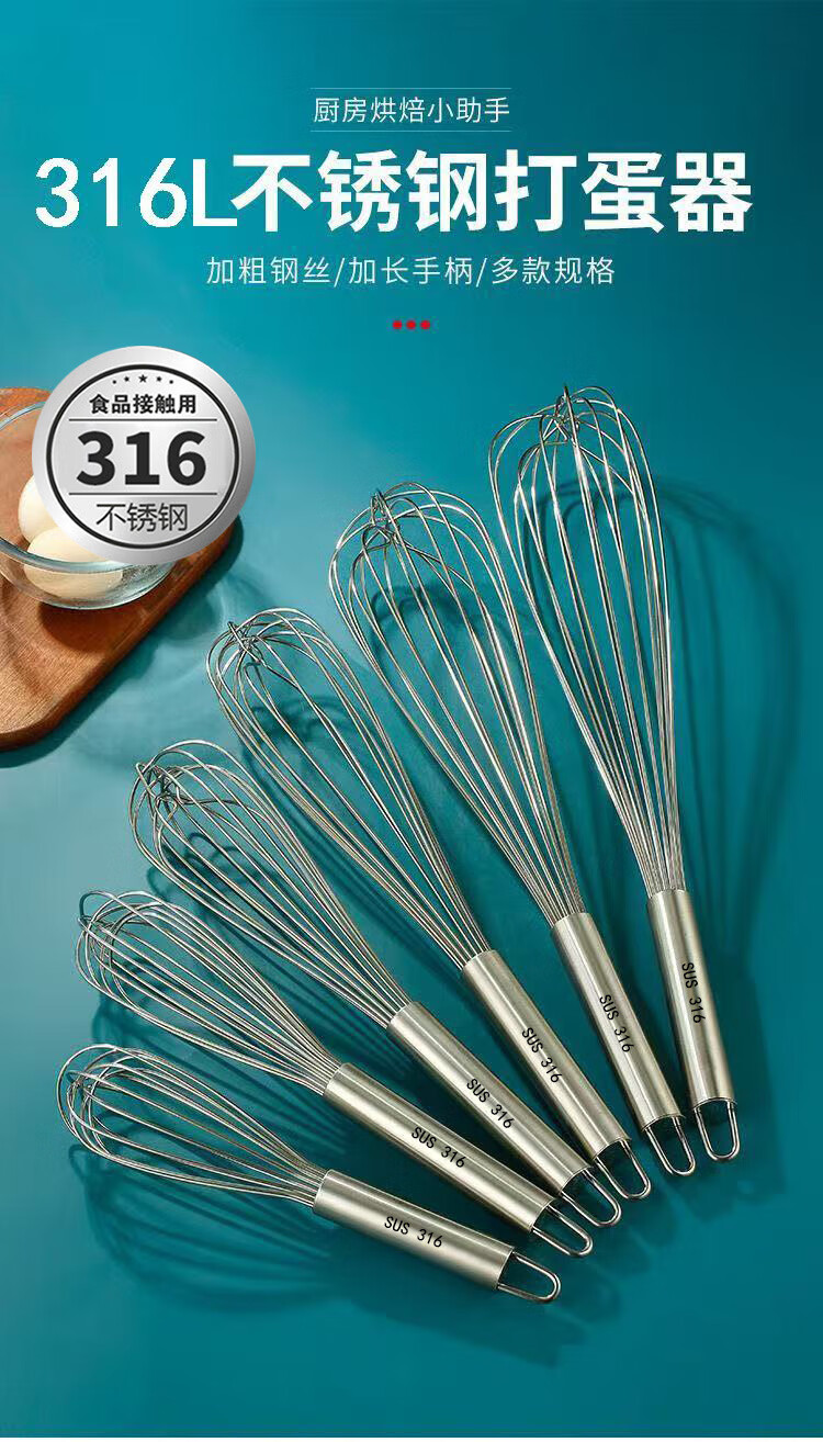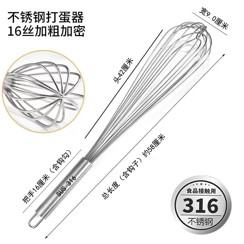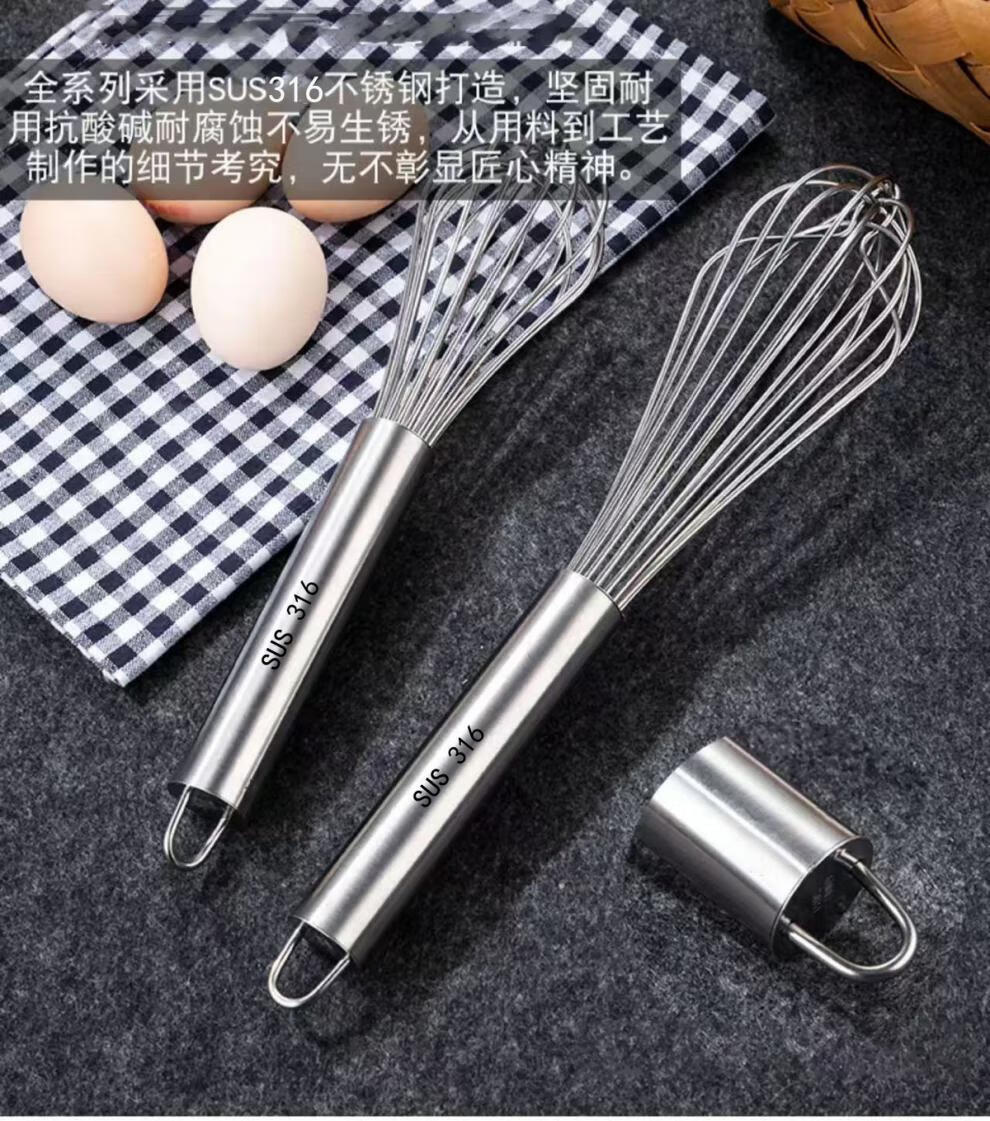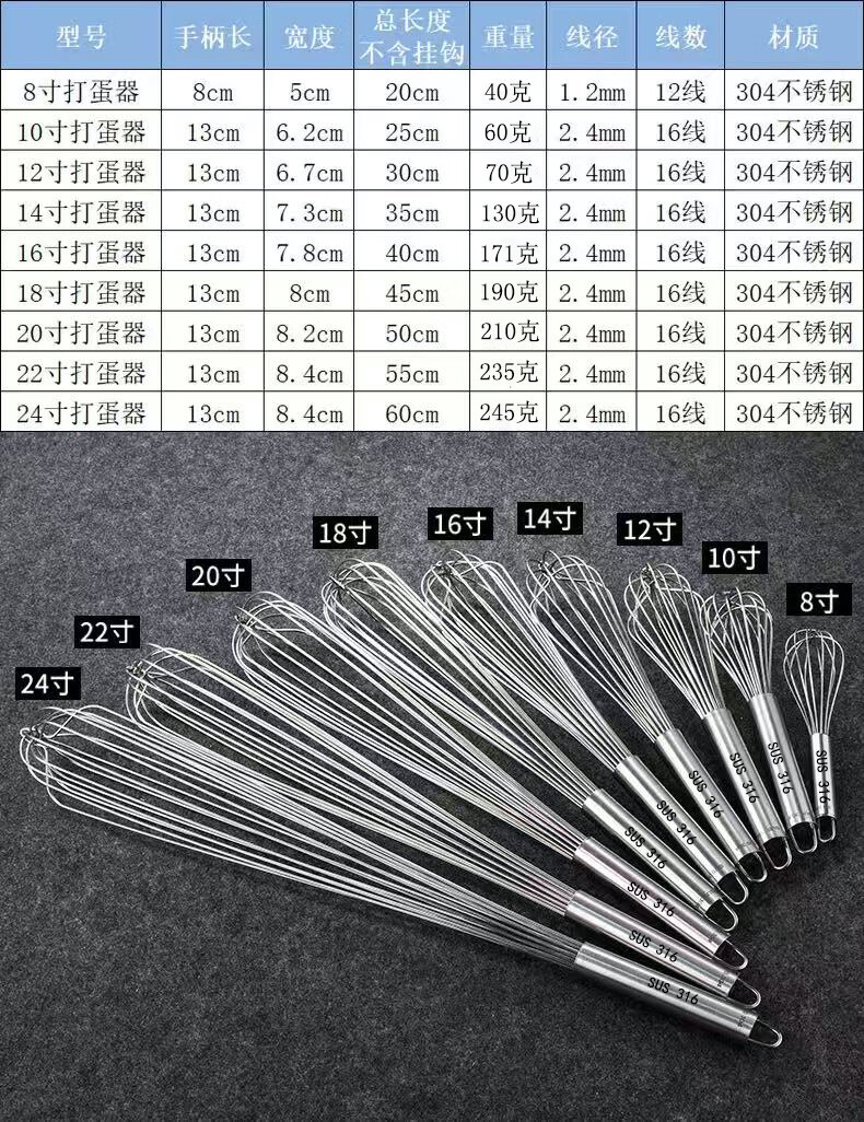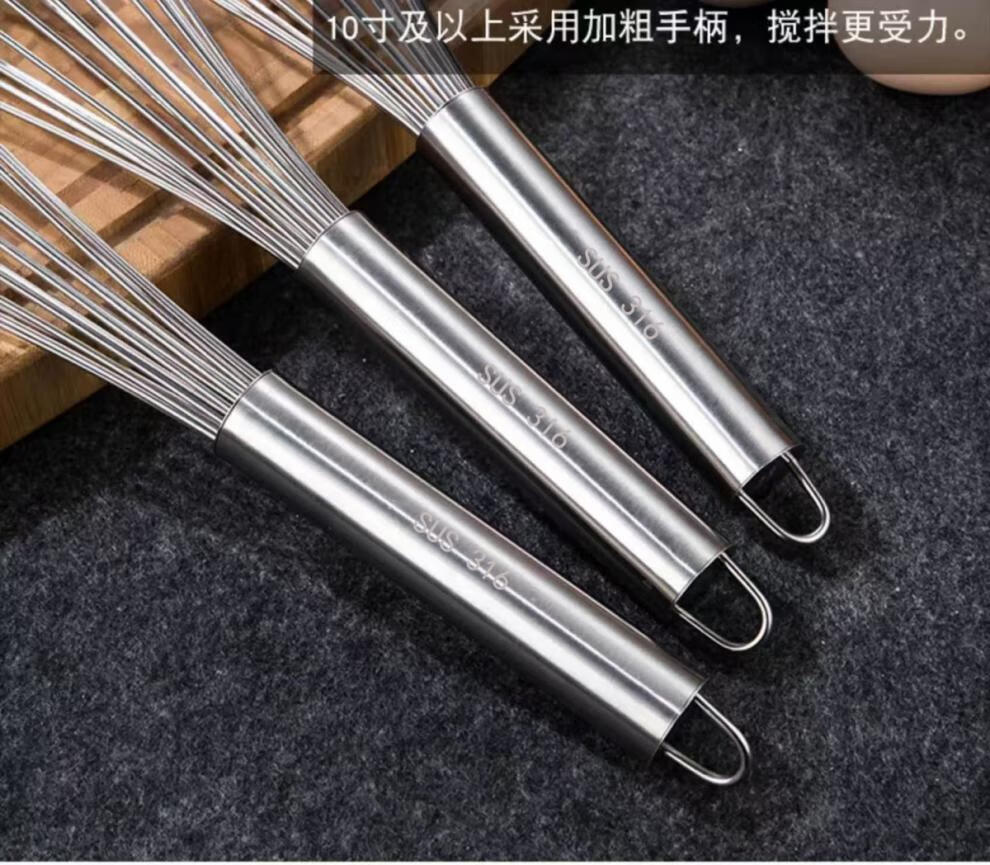 Vinoa bold commercial stainless steel manual egg beater whipping cream line mixer cake baking tools 316 10 inches 25 cm (thick 16 lines)