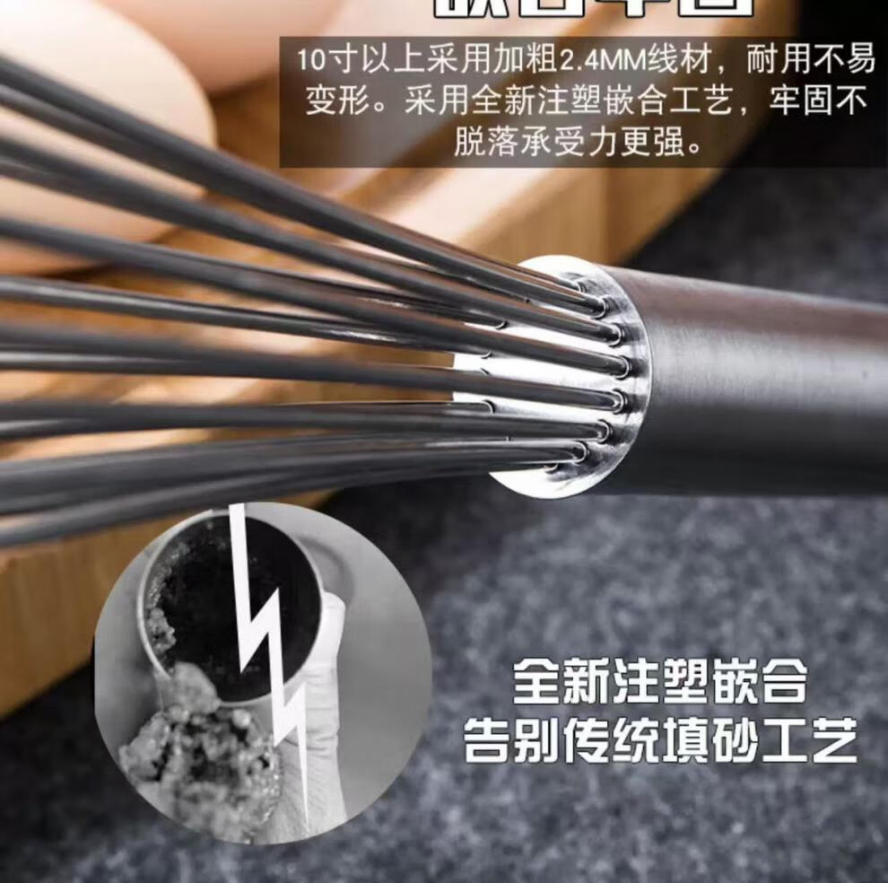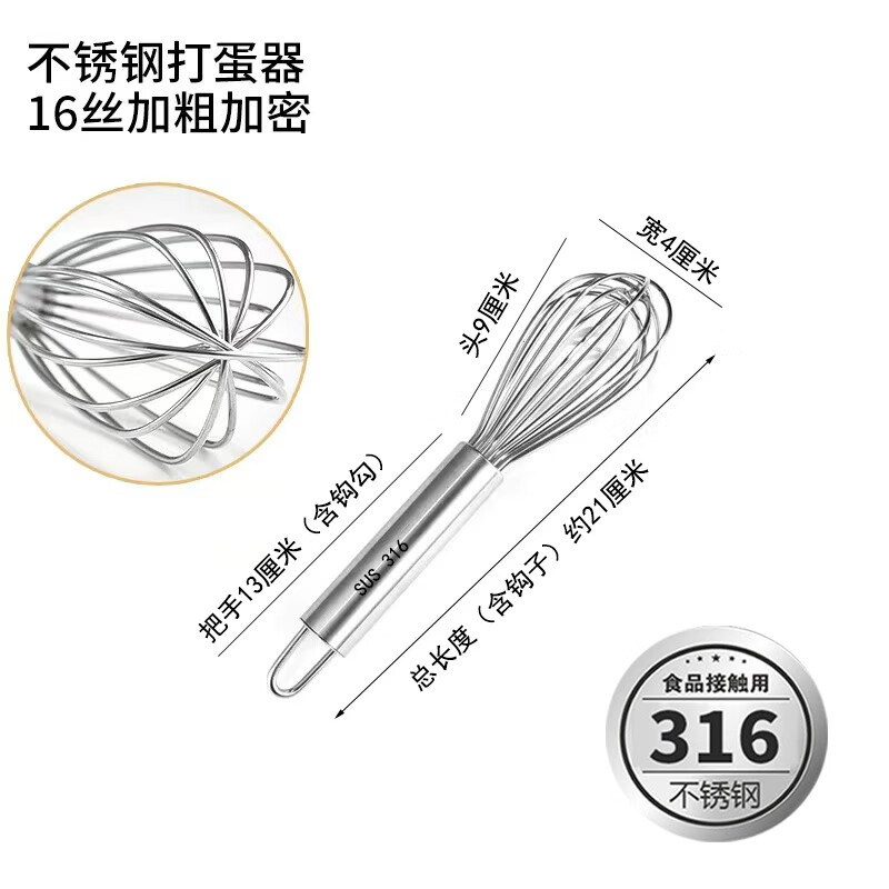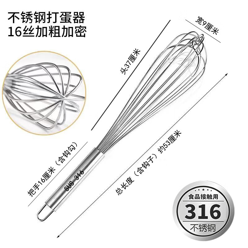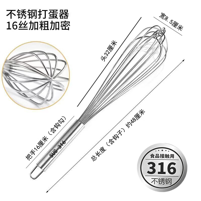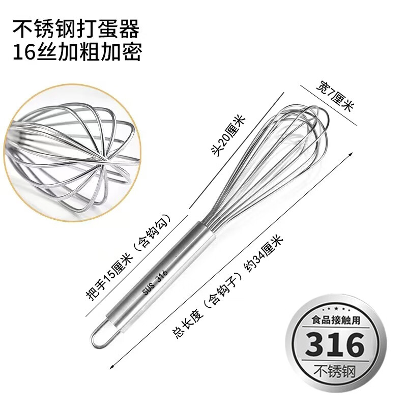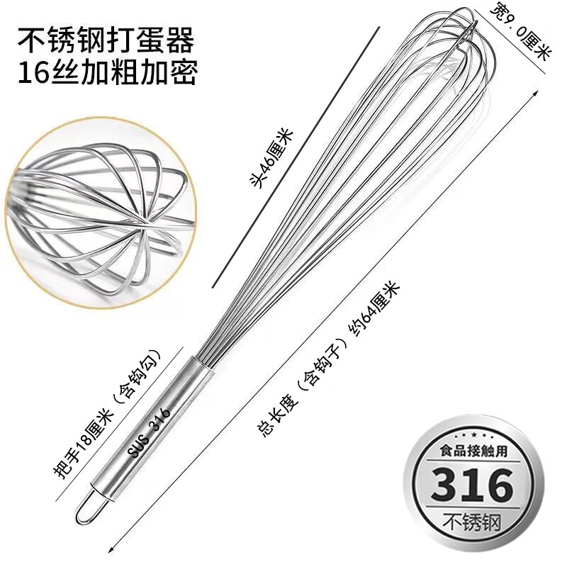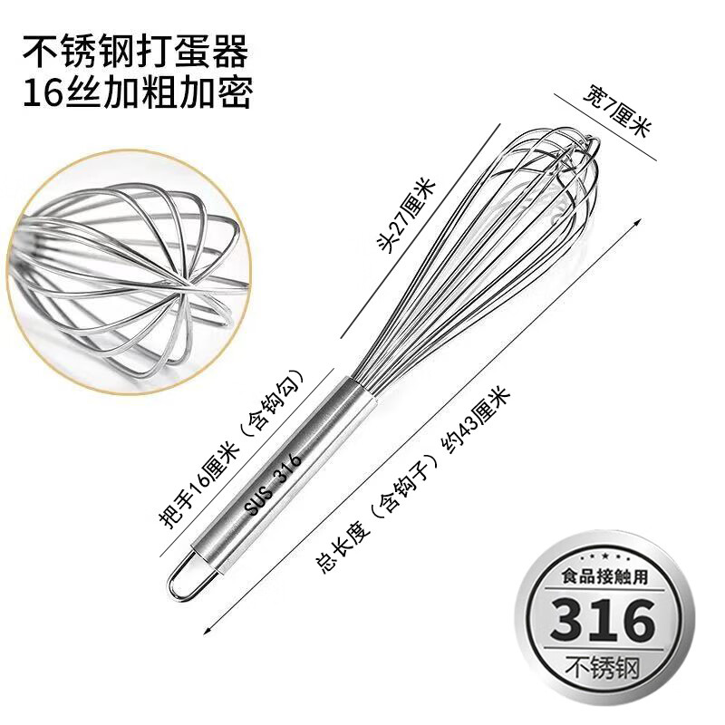 Vinoa bold commercial stainless steel manual egg beater whipping cream line mixer cake baking tools 316 10 inches 25 cm (thick 16 lines)