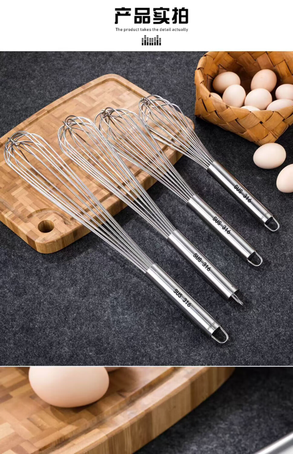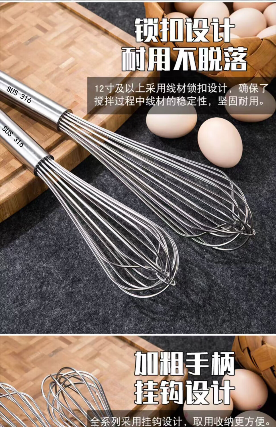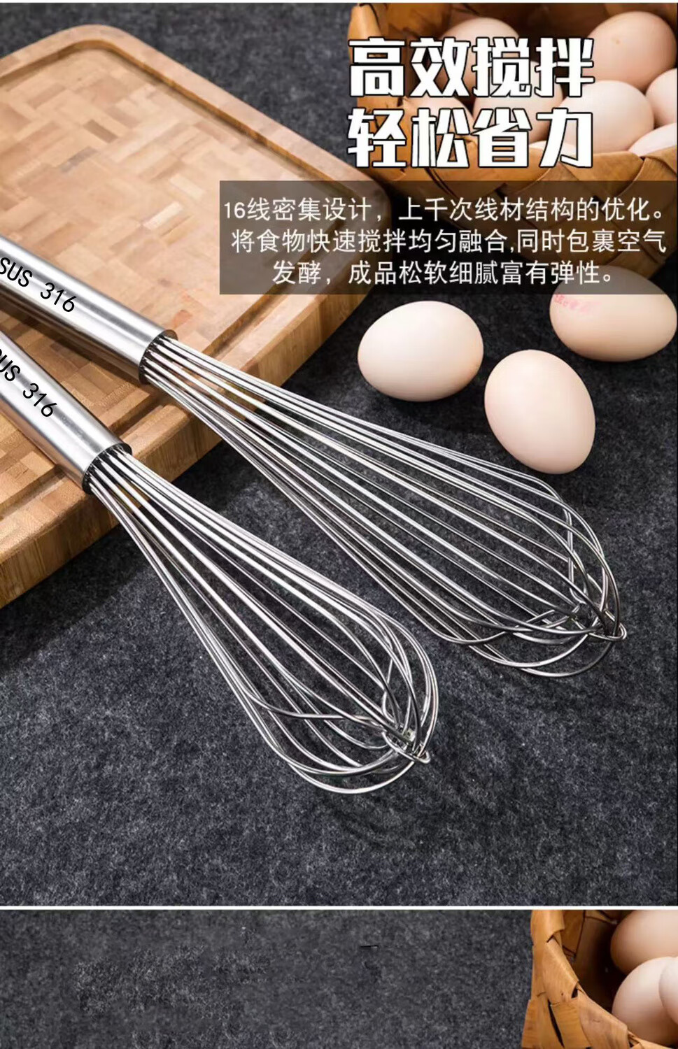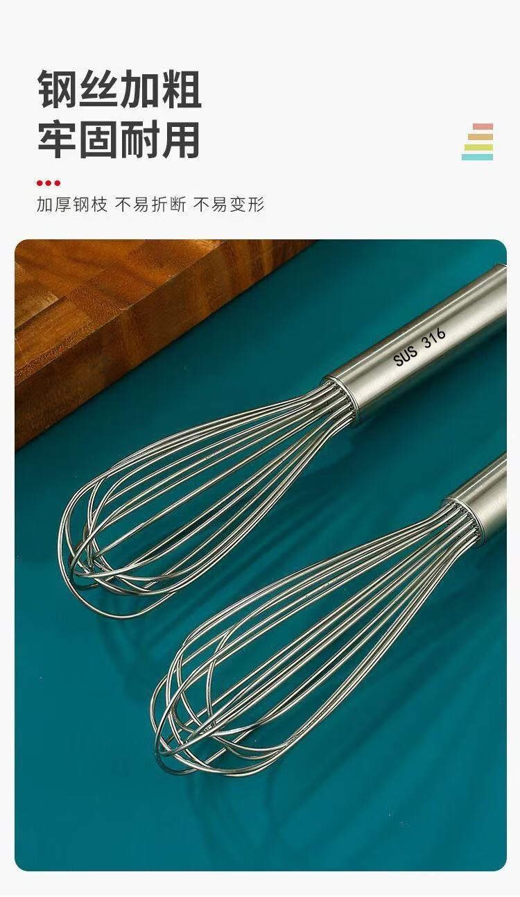 Vinoa bold commercial stainless steel manual egg beater whipping cream line mixer cake baking tools 316 10 inches 25 cm (thick 16 lines)