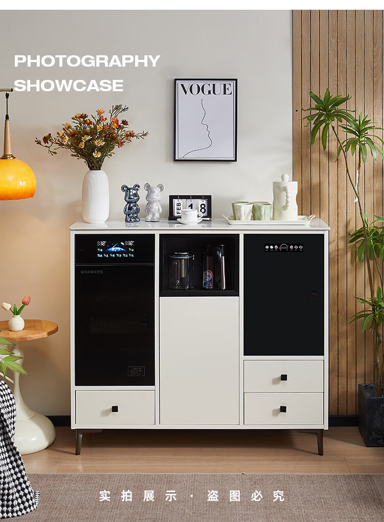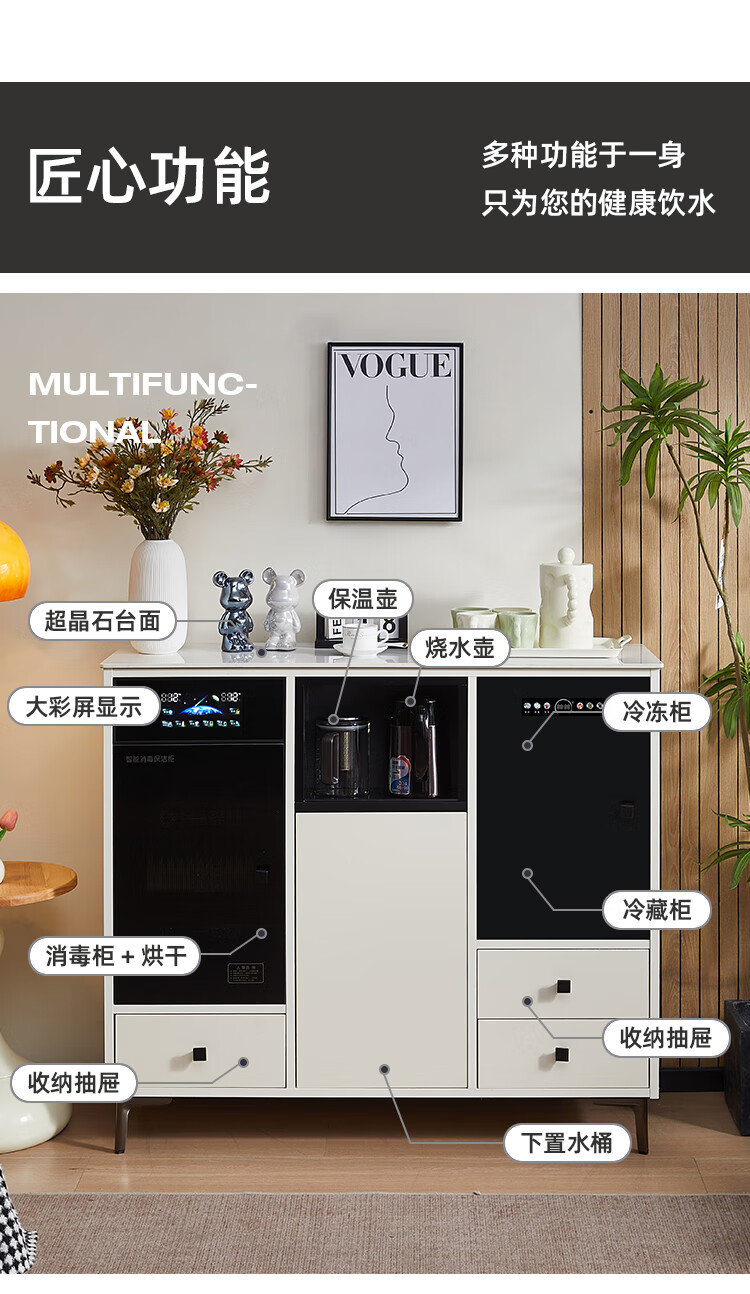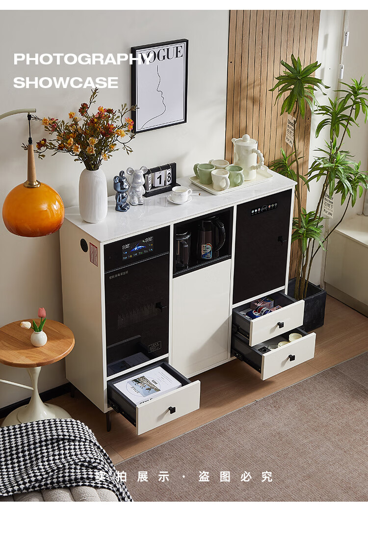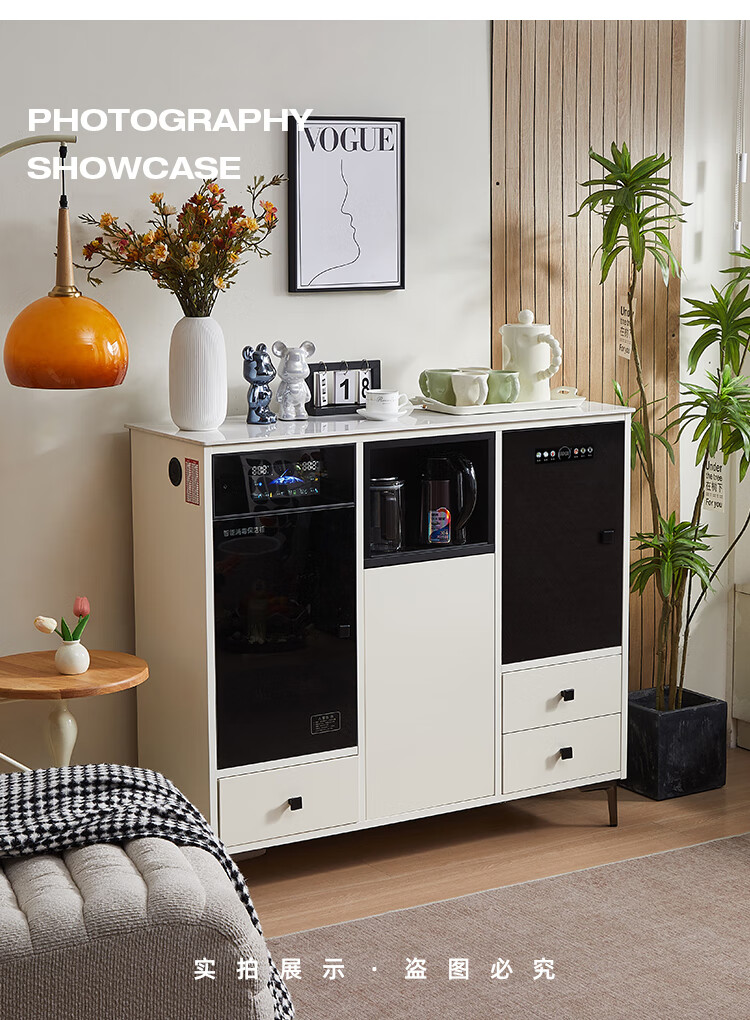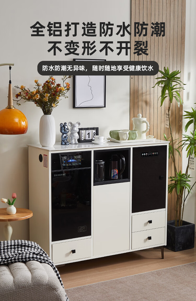 Zetian all-aluminum tea bar machine with refrigerator refrigeration high-end smart office living room integrated sideboard tea cabinet gray hot and cold type three doors with disinfection