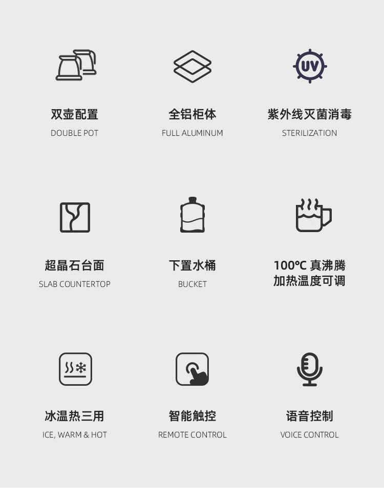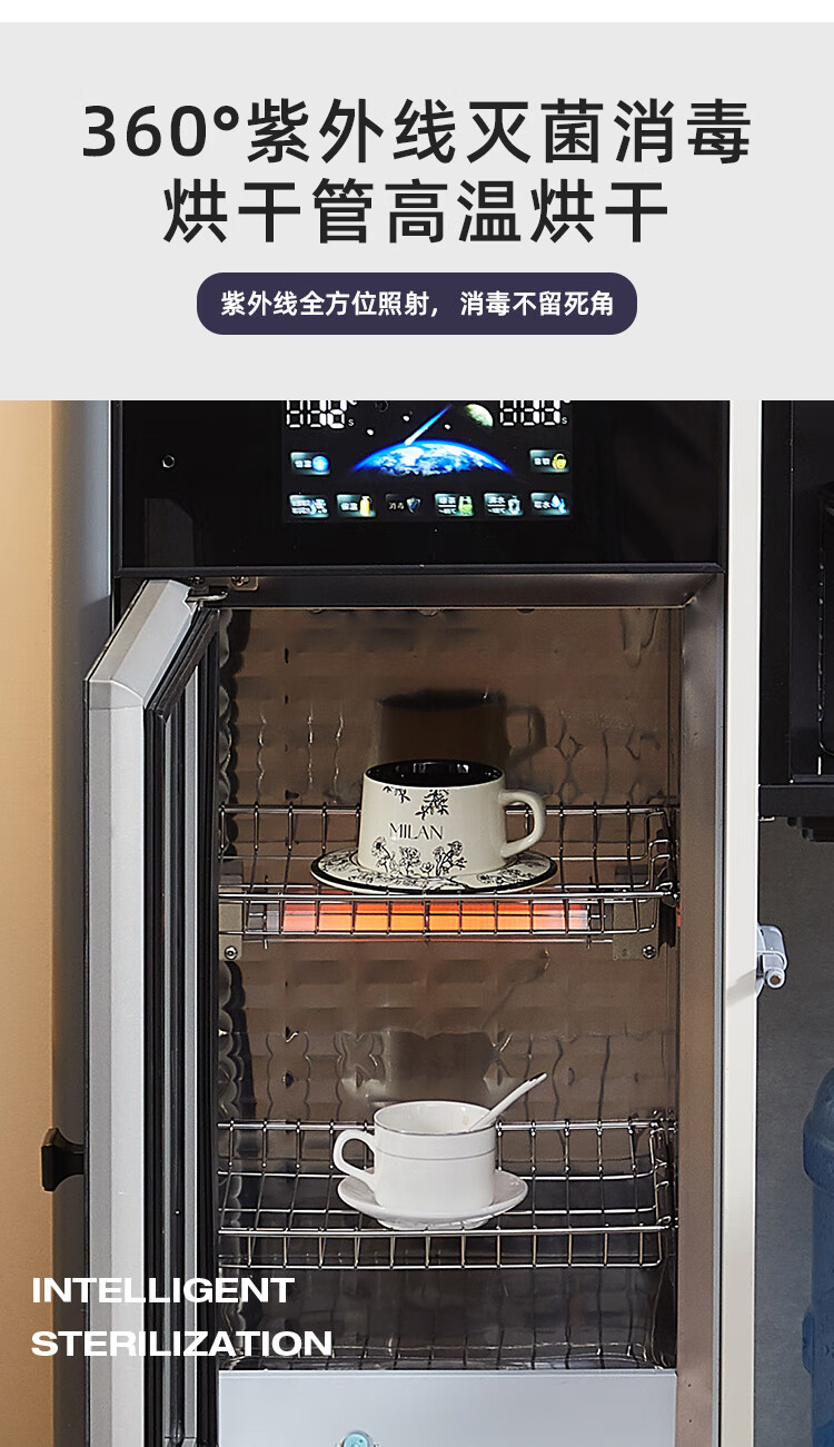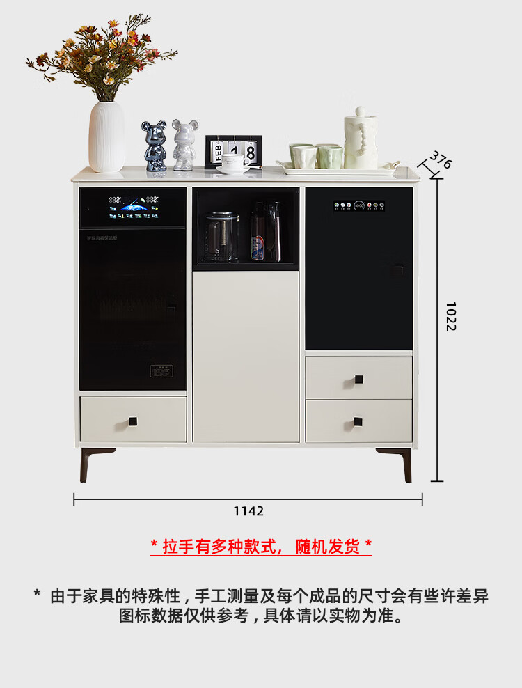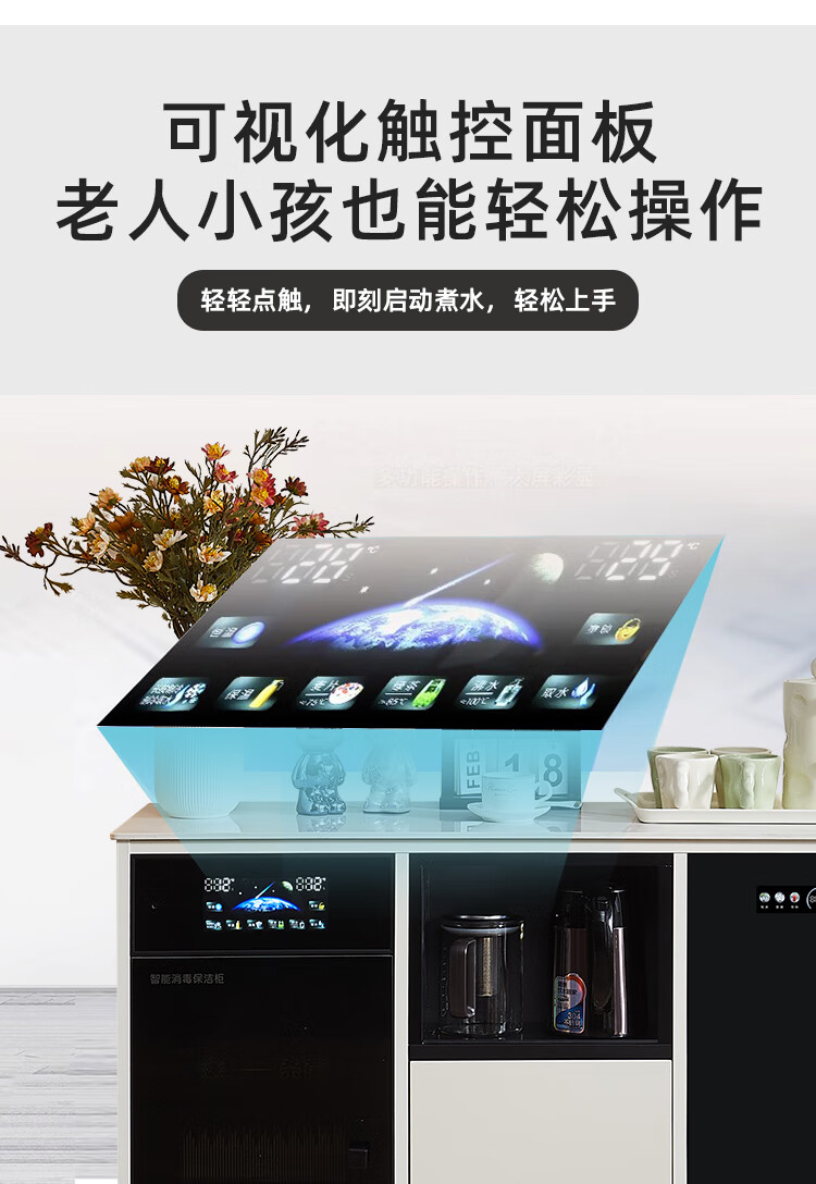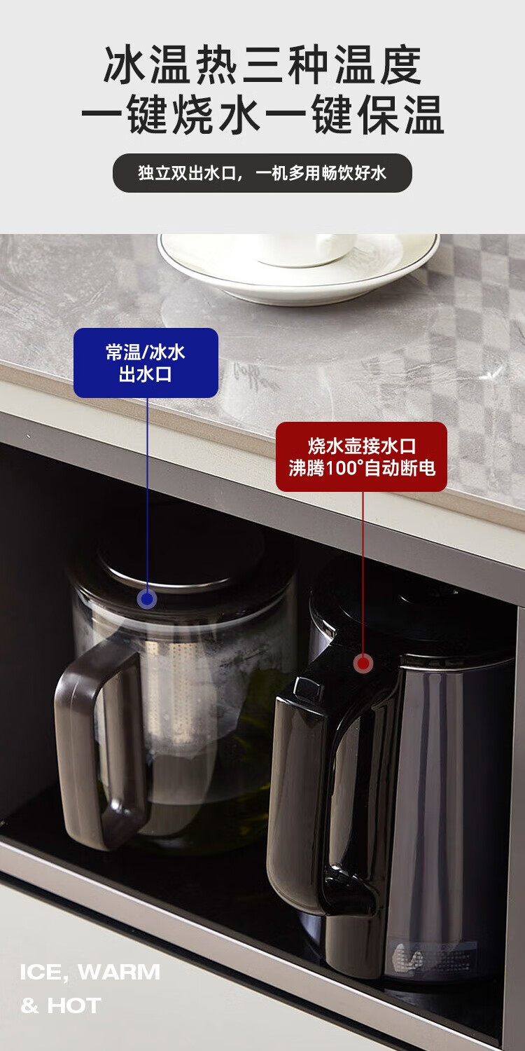 Zetian all-aluminum tea bar machine with refrigerator refrigeration high-end smart office living room integrated sideboard tea cabinet gray hot and cold type three doors with disinfection