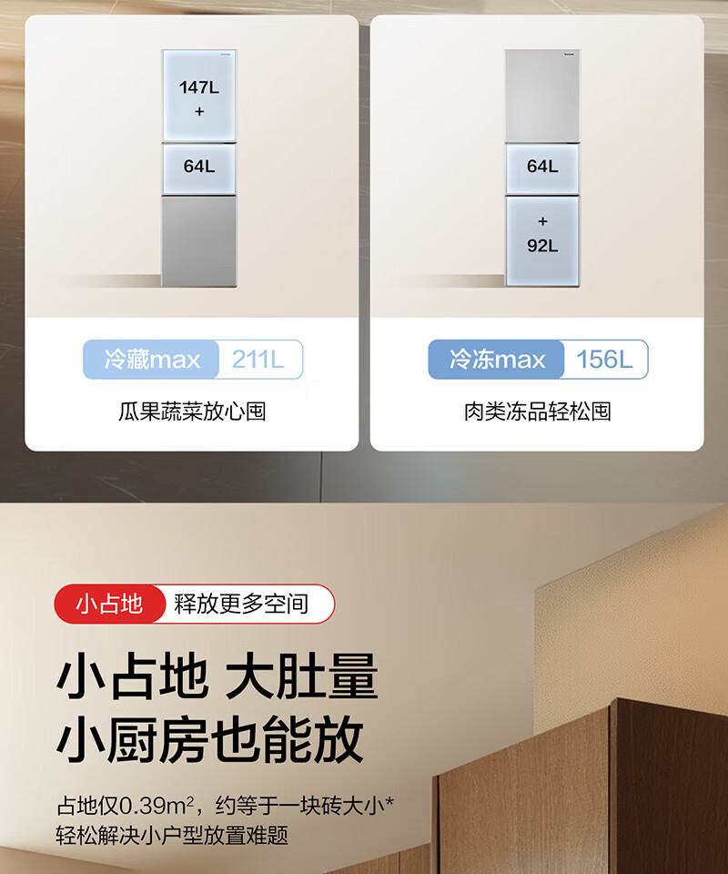 Panasonic's new three-door refrigerator 303 liters, first-class energy efficiency, silver ion antibacterial, automatic ice making -3 micro-freezing, home refrigerator NR-30CAGEC-S NR-30CAGEC-S 303L Aurora Silver