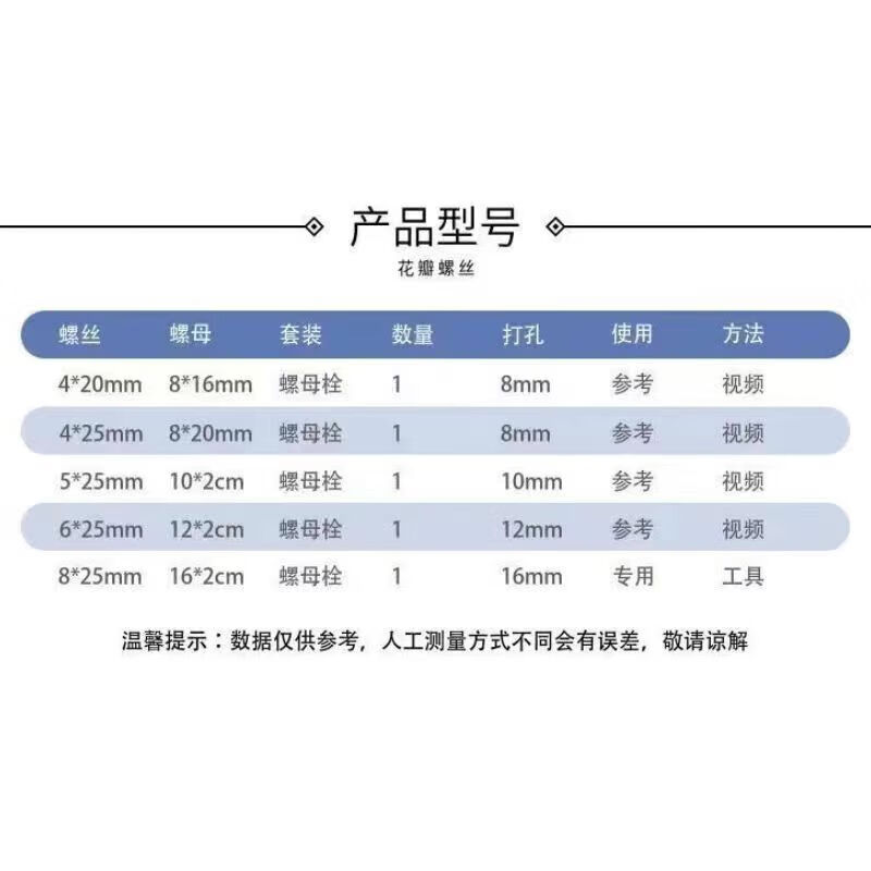 MieLanat He Jiangong petal nut expansion screw aluminum alloy steel pipe hollow iron license plate fixed lantern rivet expansion M4*20 petal nut