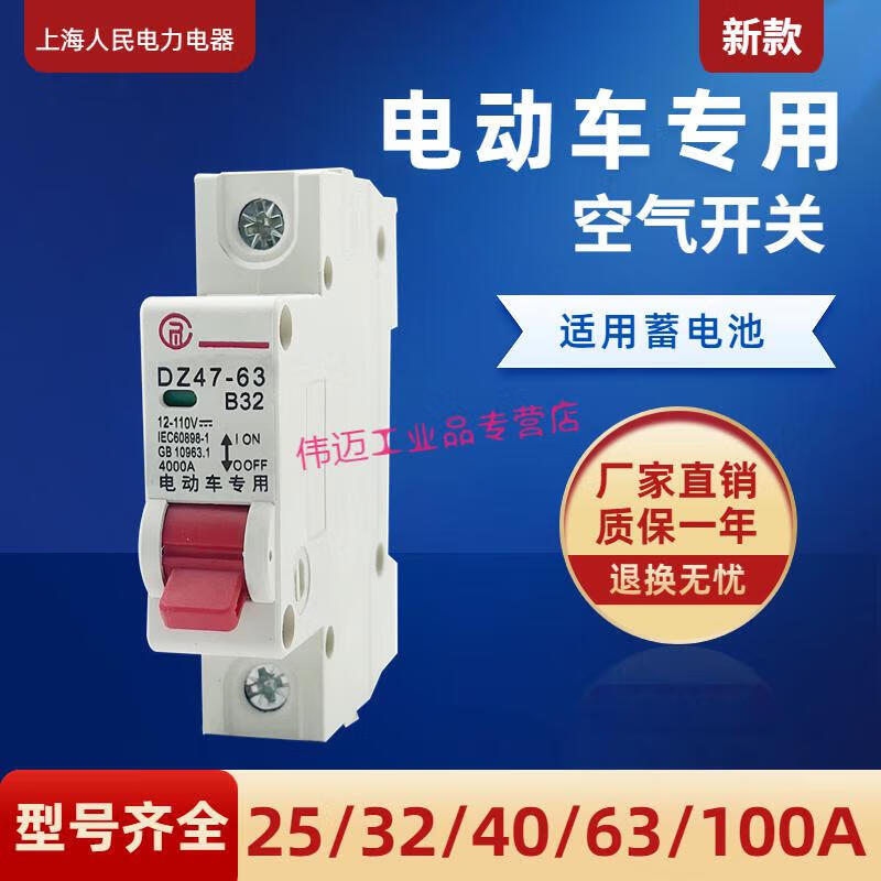 Electric vehicle switch air switch circuit breaker 48V60V72V battery vehicle DC overload SN2 1P 63A