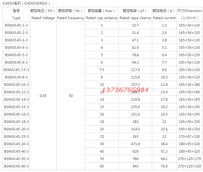 Shanghai Viscon BSMJ0.45-15//20/25/30/40/50-3 self-healing parallel power capacitor 0.45-60-3