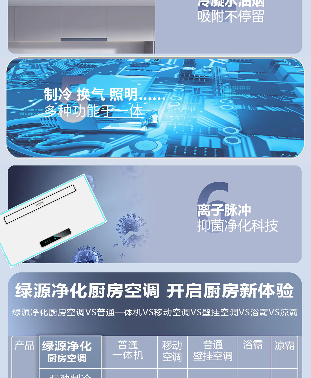 Luyuan (LVYUAN) kitchen air conditioner dedicated single cooling dehumidification cool lighting anti-oil fume ceiling embedded household ceiling hidden all-in-one machine T8/300*600 purification direct blowing air small 1 piece set self-cleaning series-2000W station type-1 hole T8 series