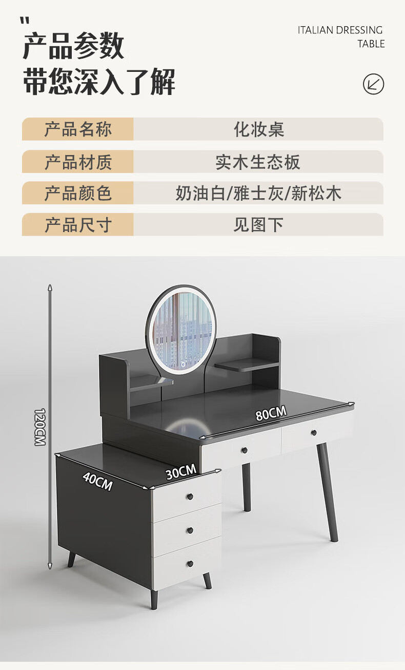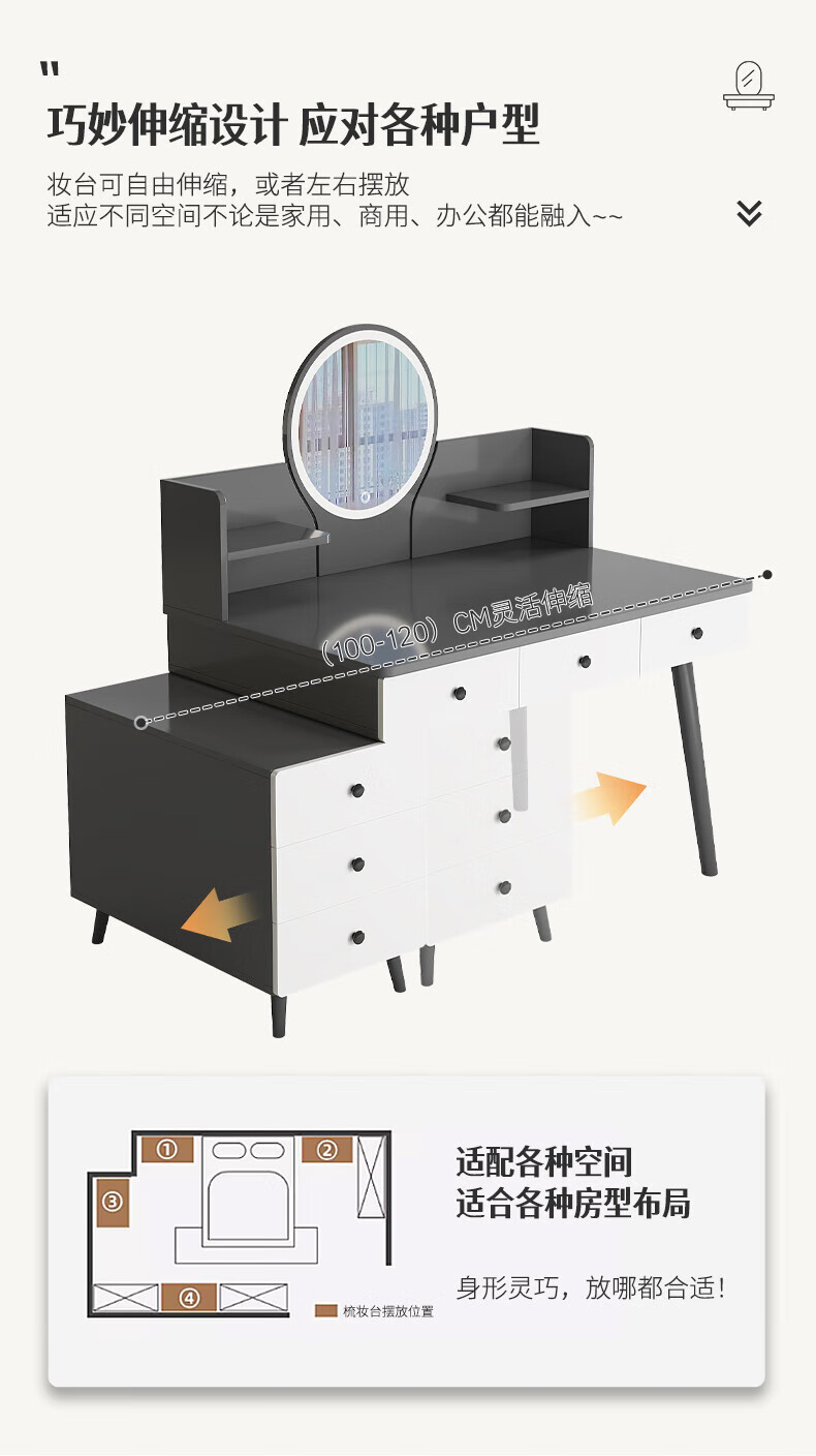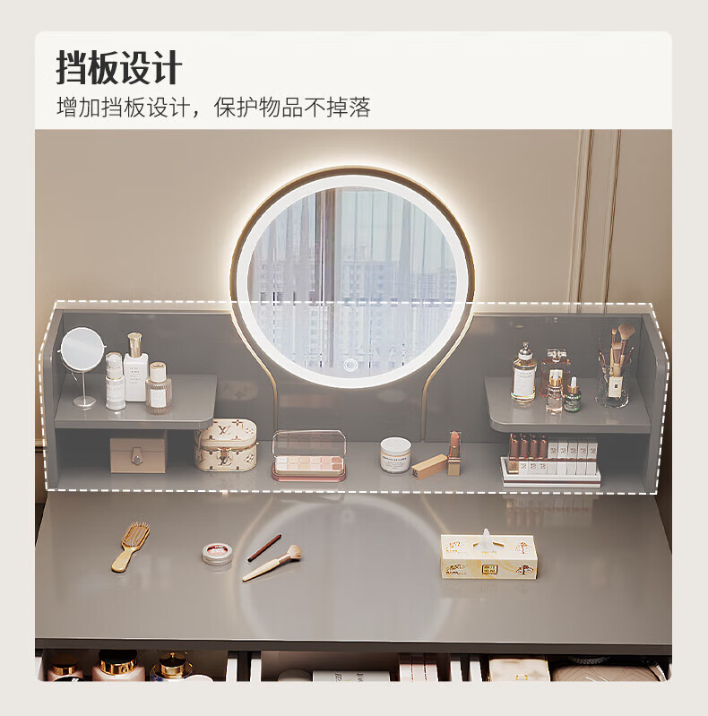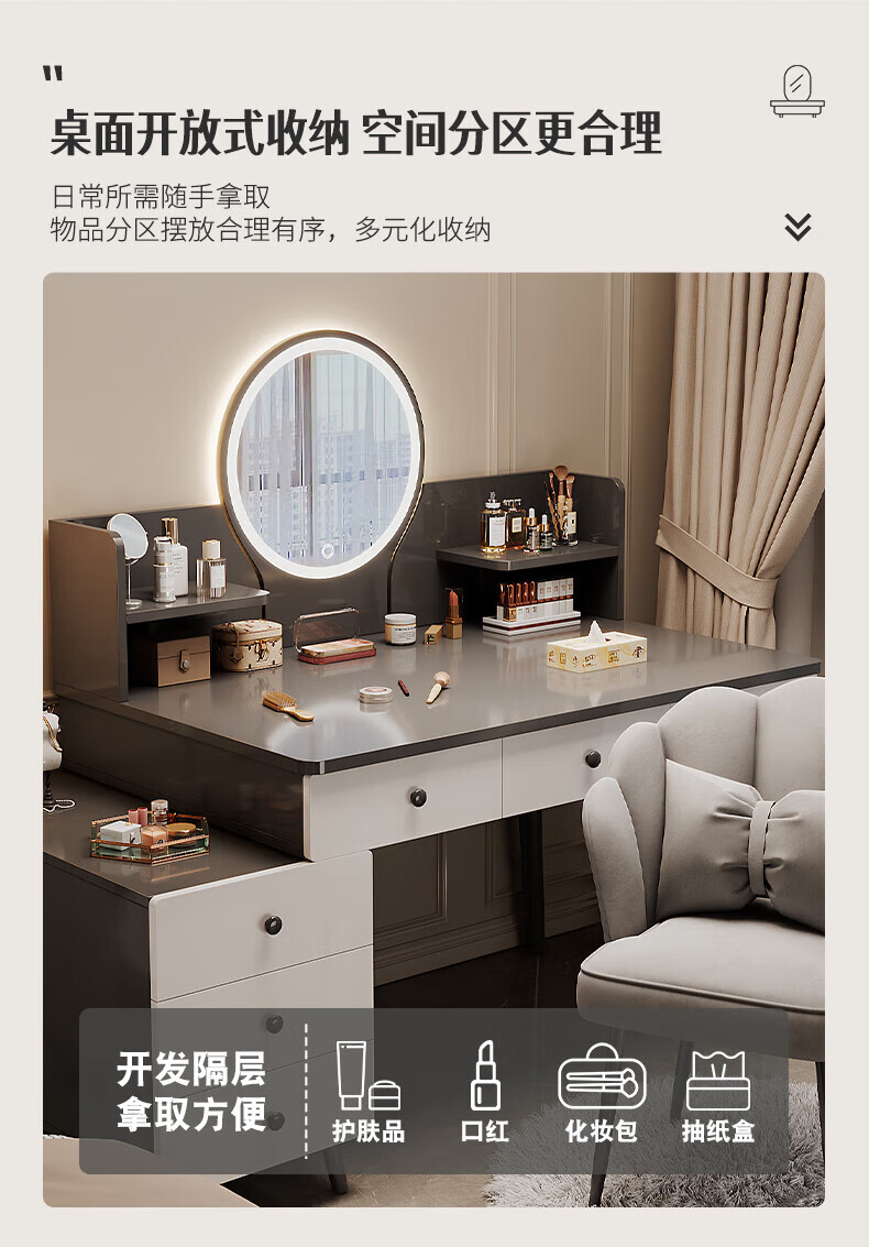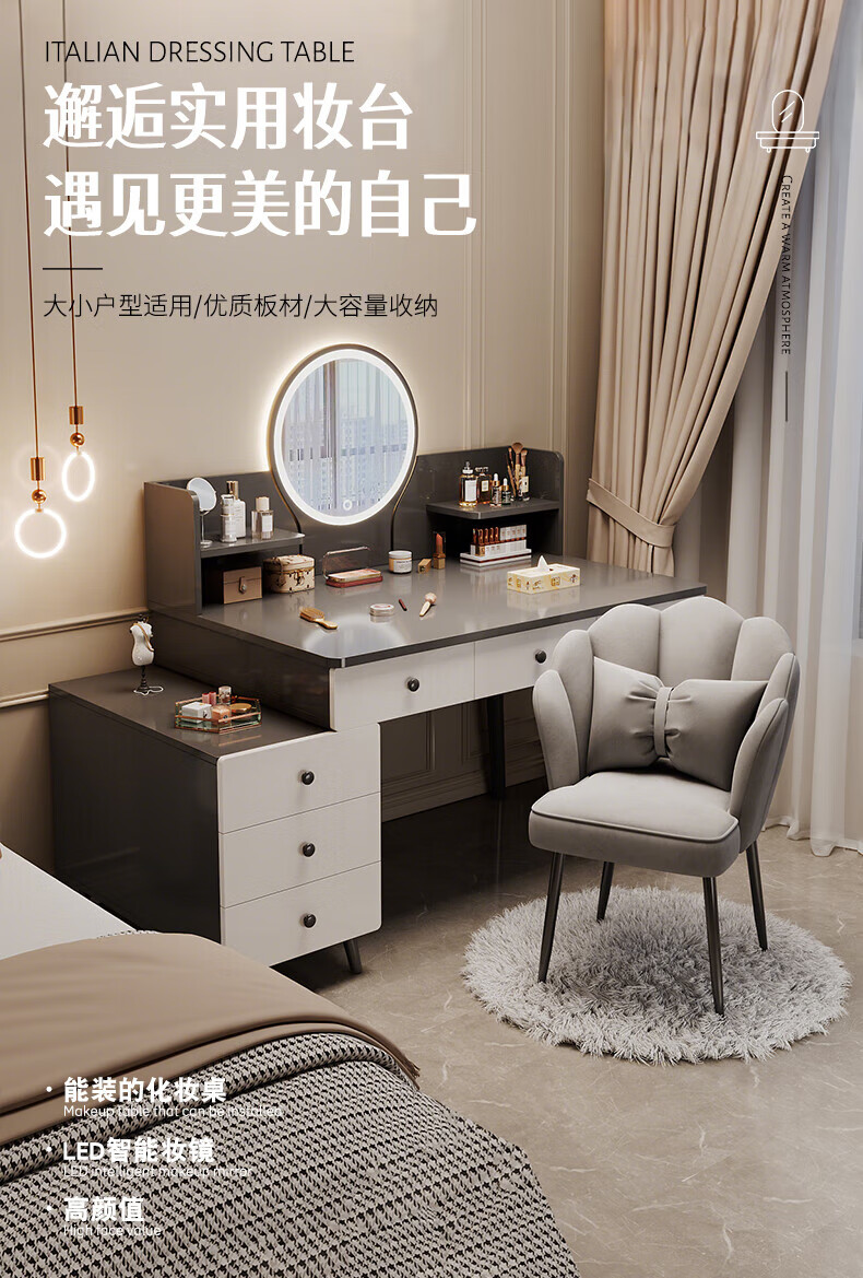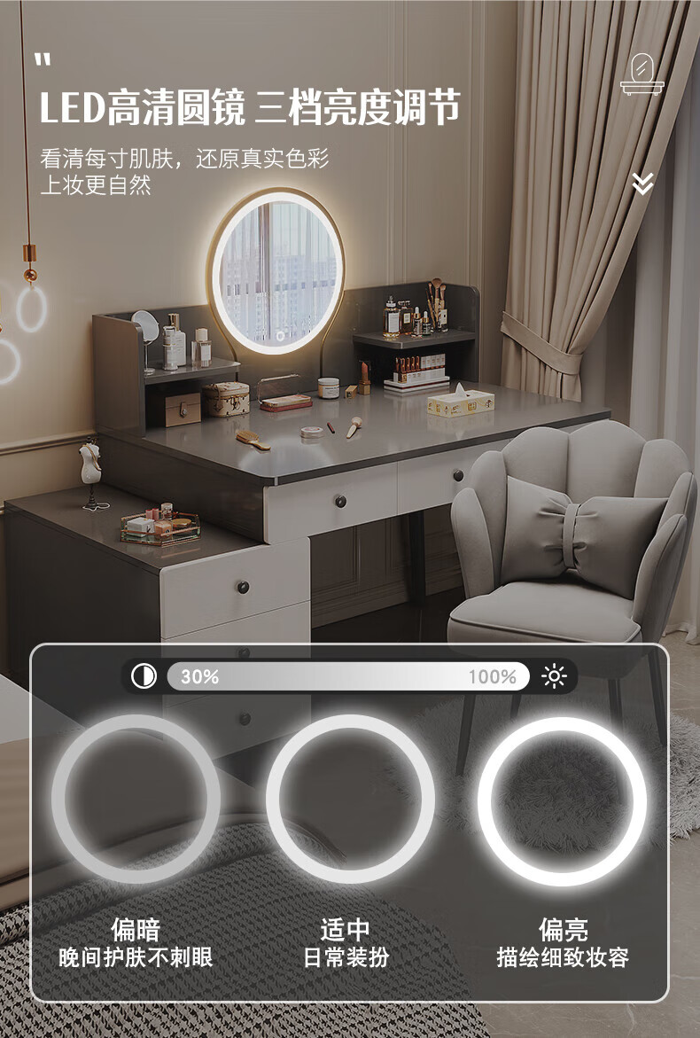 Zuodu Dressing Table Bedroom Home Dressing Table Simple 2025 New Drawer Cabinet Integrated Small Apartment Light Luxurious Dressing Table Classic Style Five Drawers Gray + LED Mirror Affordable Self-installation
