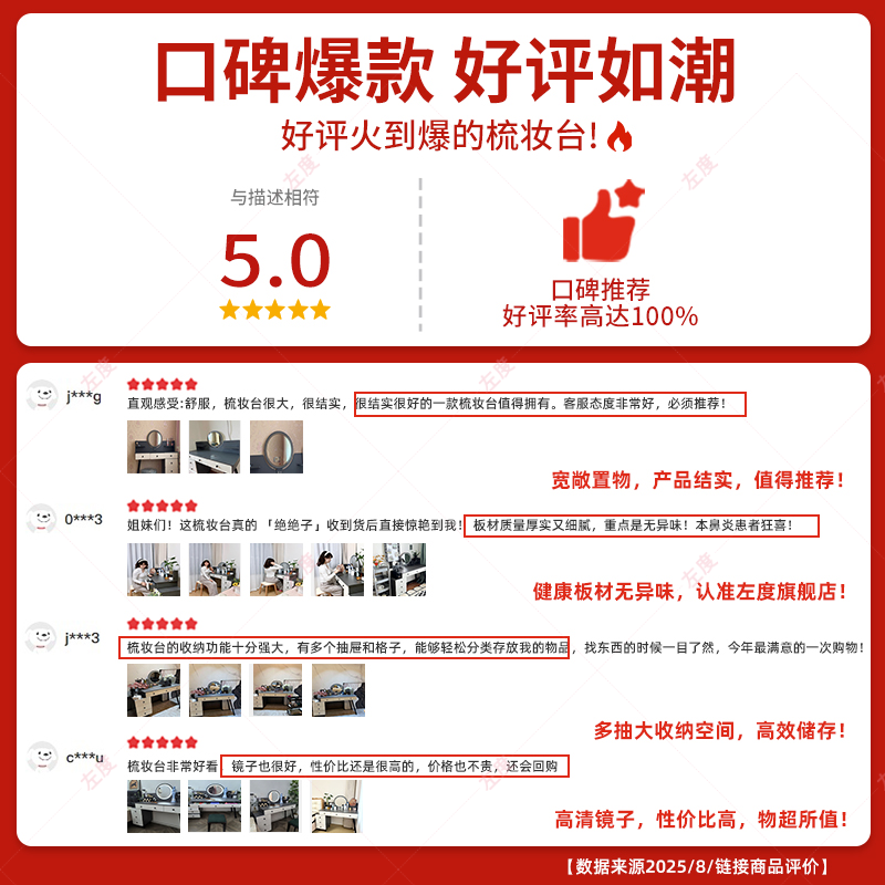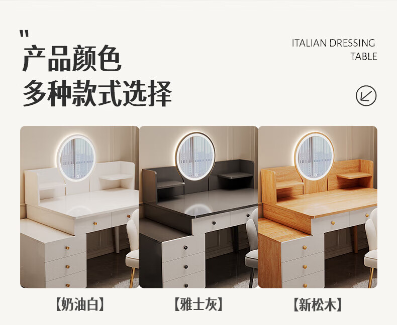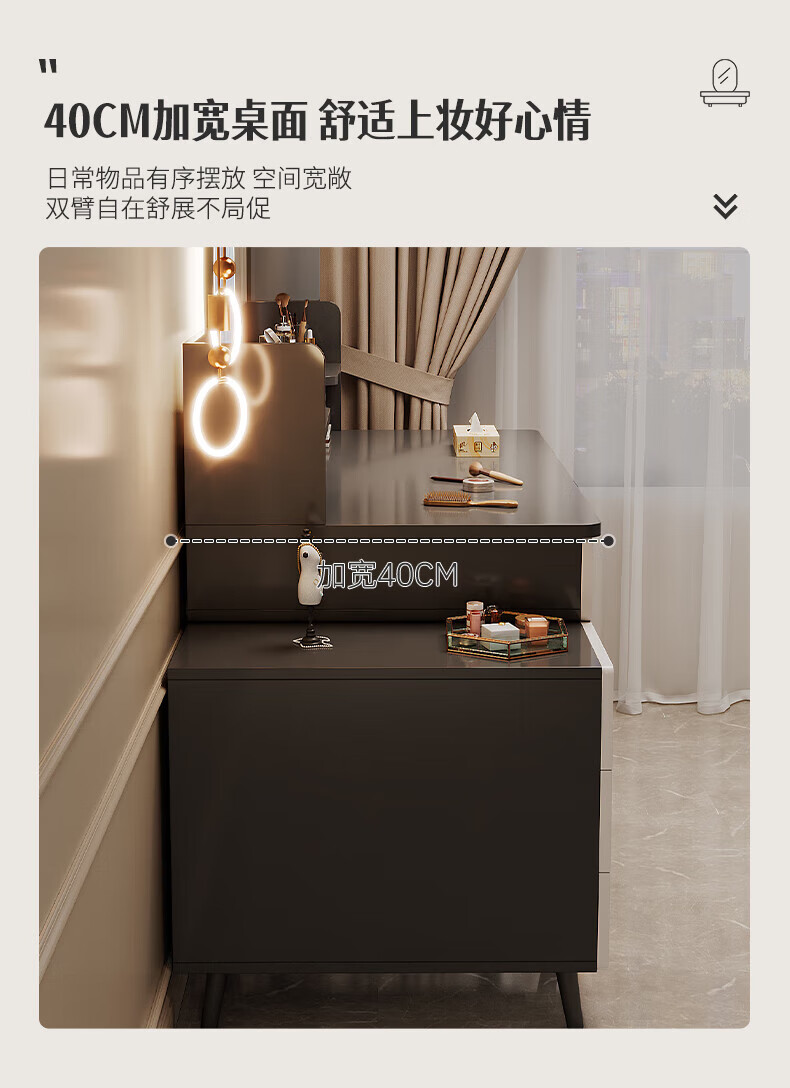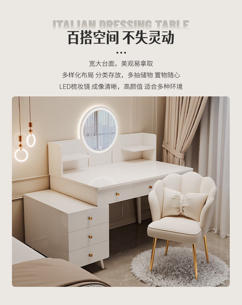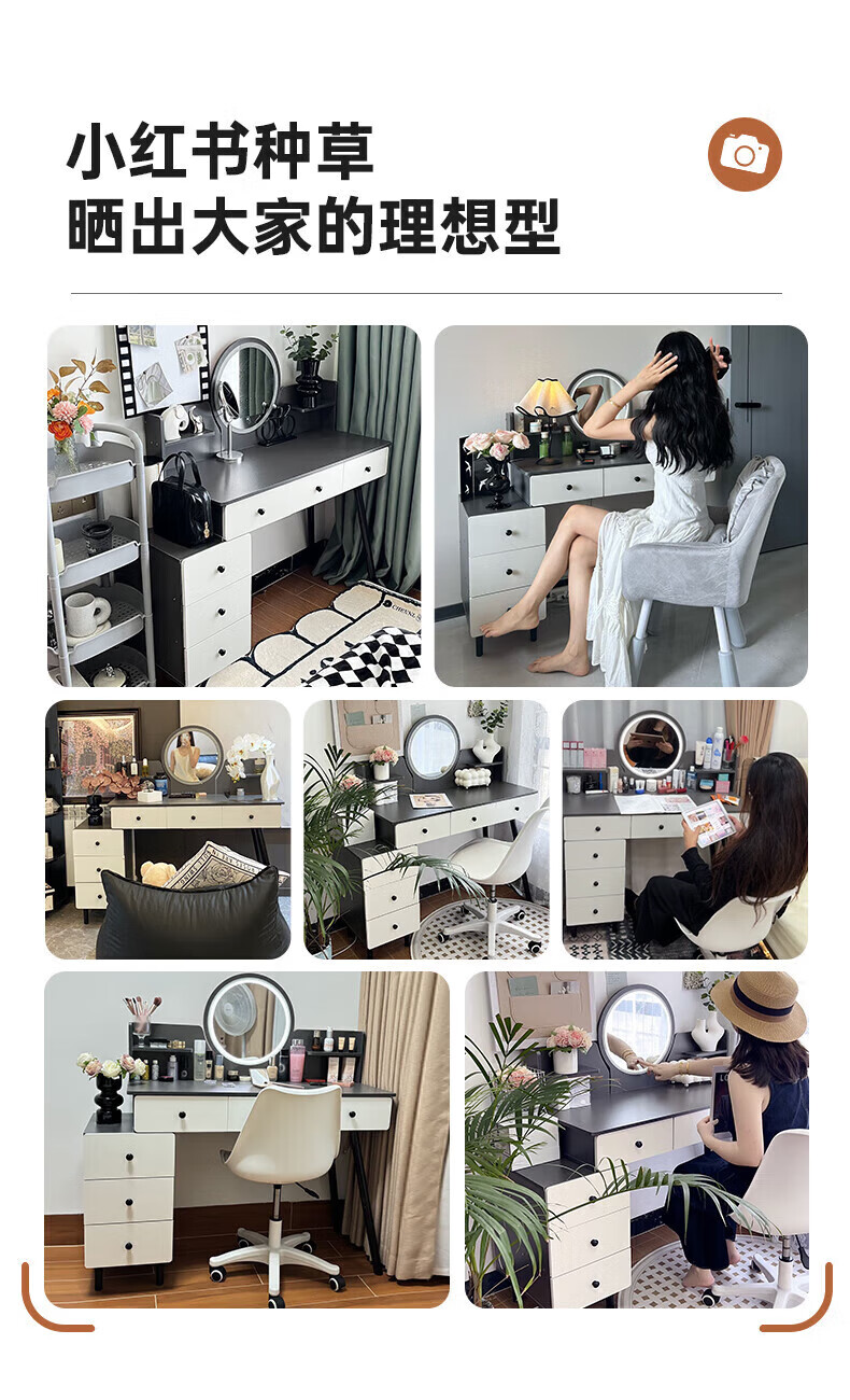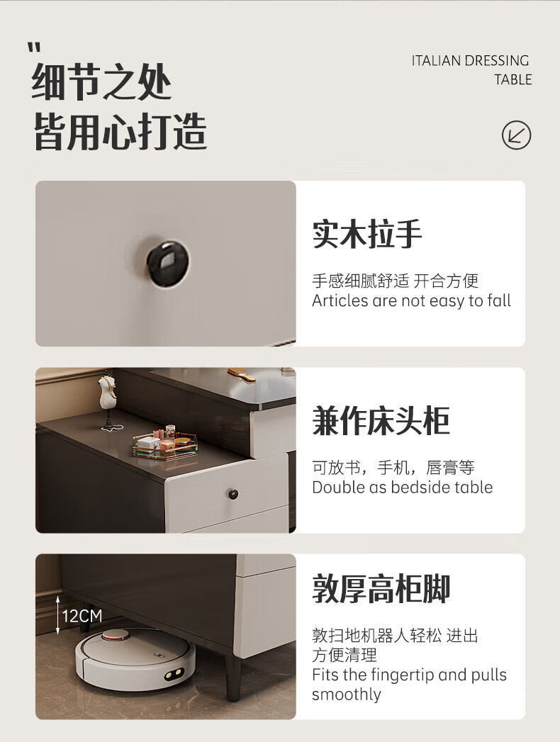 Zuodu Dressing Table Bedroom Home Dressing Table Simple 2025 New Drawer Cabinet Integrated Small Apartment Light Luxurious Dressing Table Classic Style Five Drawers Gray + LED Mirror Affordable Self-installation