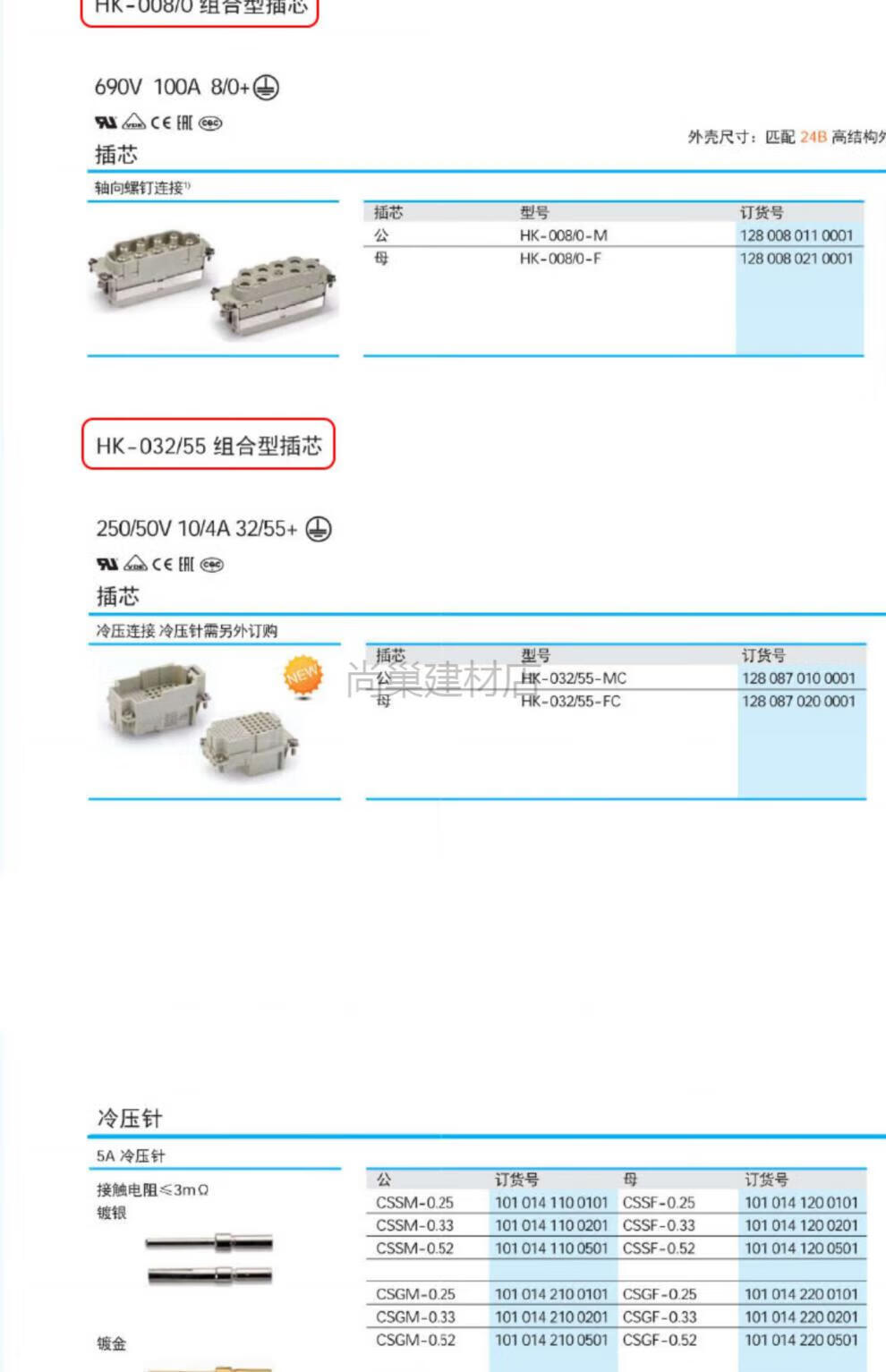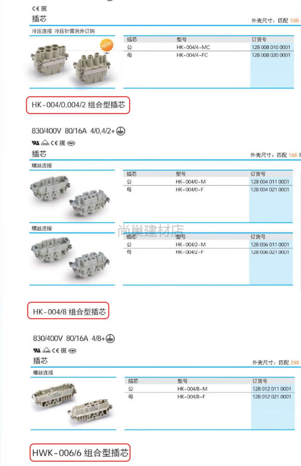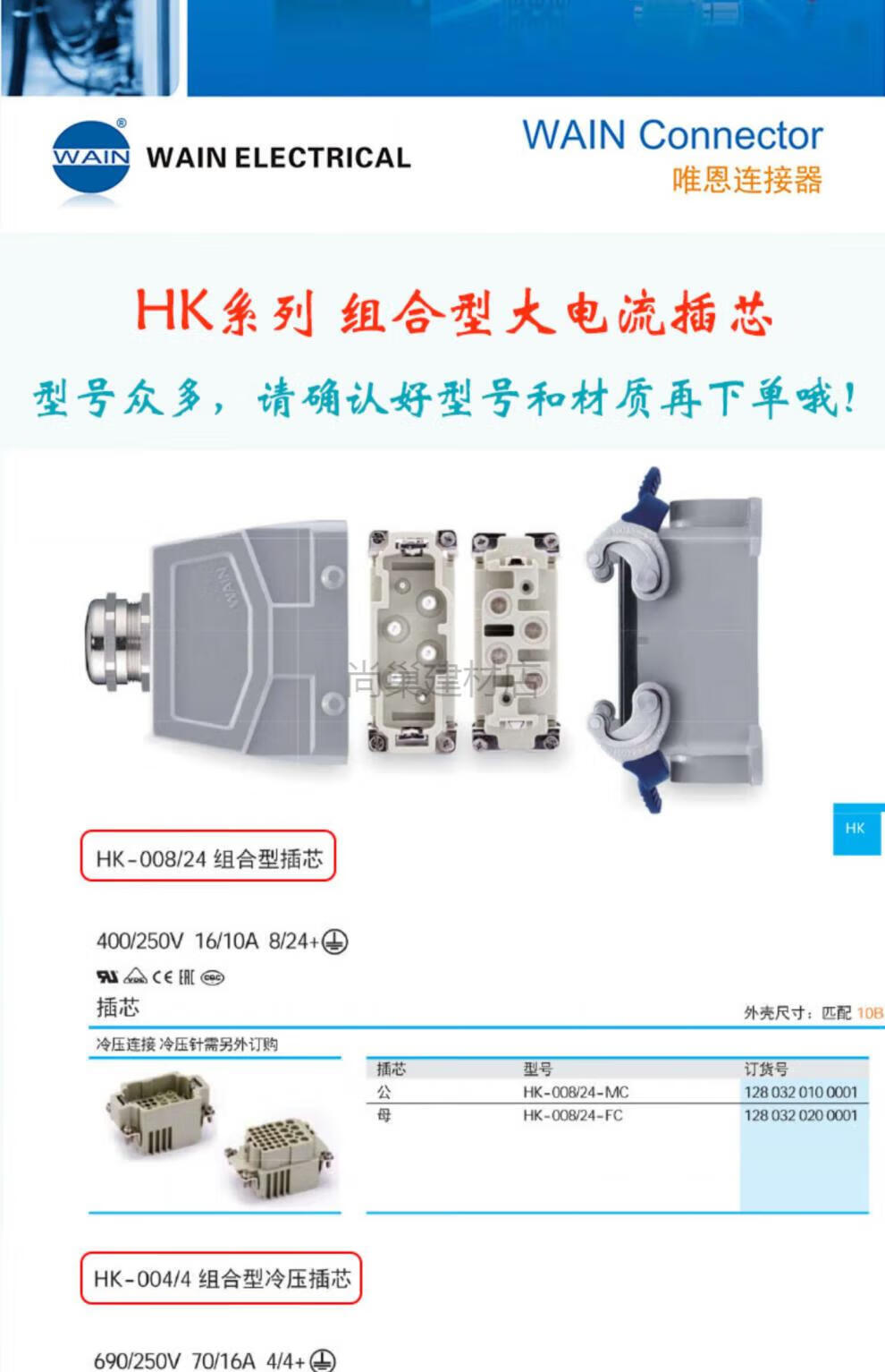 HWK-006/6-F Combination insert 6-core male and female plug-in waterproof industrial-grade connector Wei En HWK-006/6-F&M pair of male and female plugs 6-core
