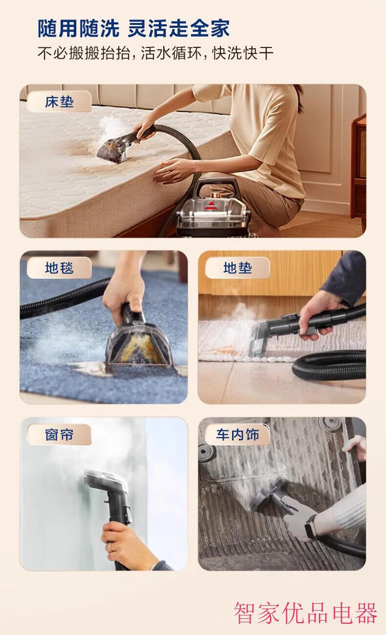 BISSELL high-end small steam dragon steam cloth cleaning machine household multi-functional spray and suction all-in-one machine for sterilization and mite removal carpet bed
