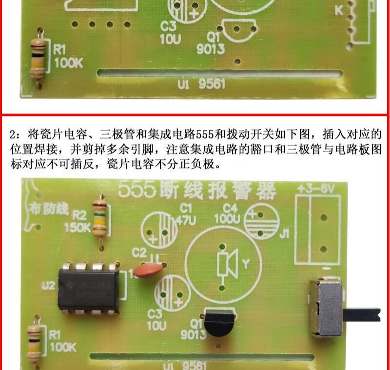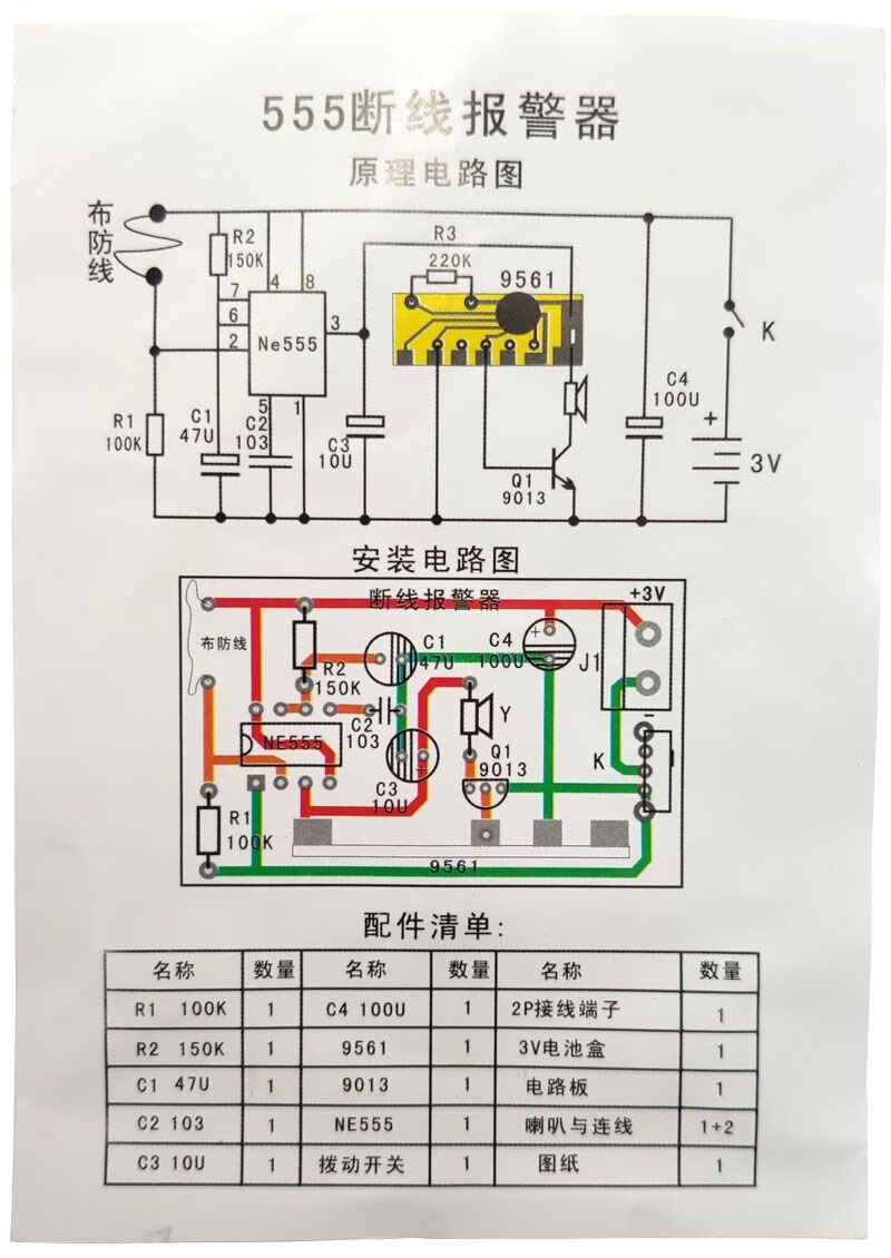 555 wire break alarm kit teaching electronic DIY experiment small production of discrete components welding assembly works 555 wire break alarm + battery + 2 meters of solder