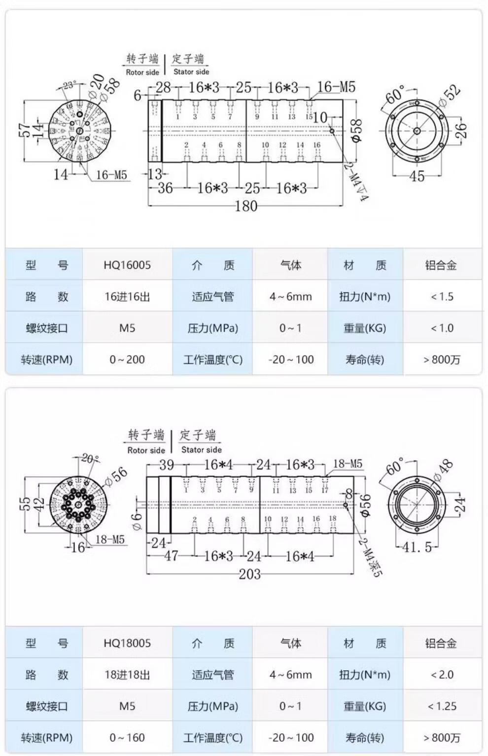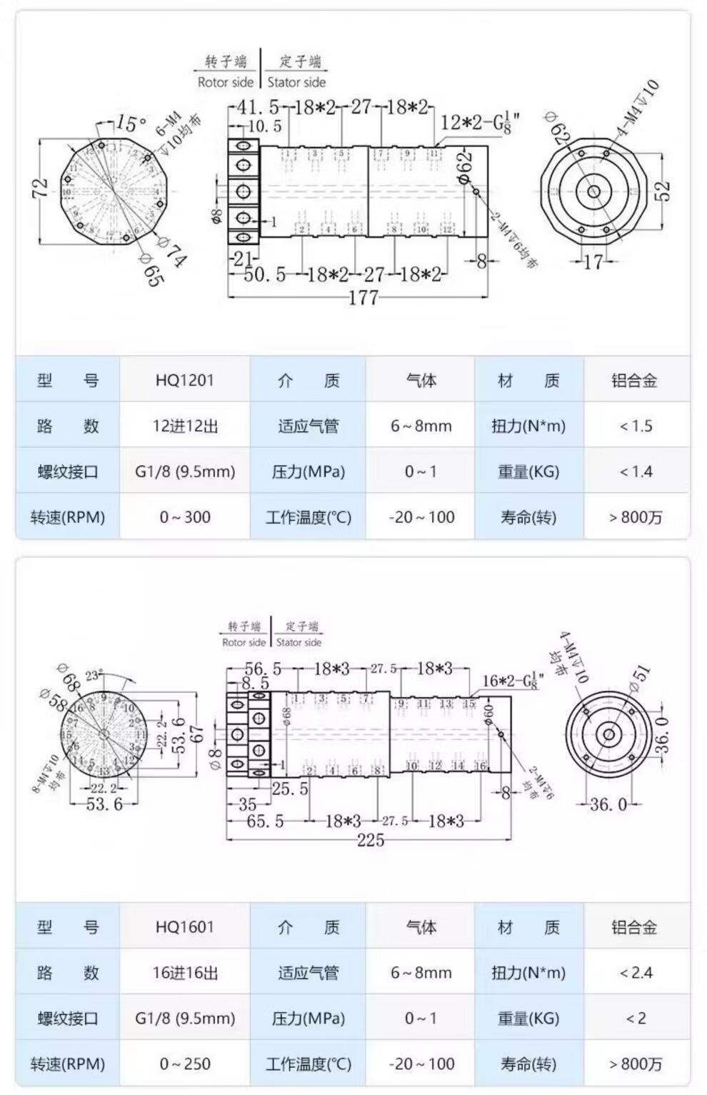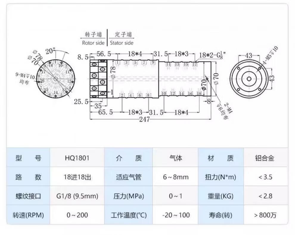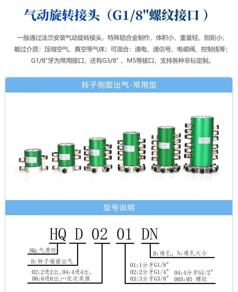 Hollow pneumatic slip ring 360-degree high-speed rotary joint high-pressure gas cylinder infinite rotation without winding customization 24 in 24 out G1/8 HQ2401 Other slip rings are available