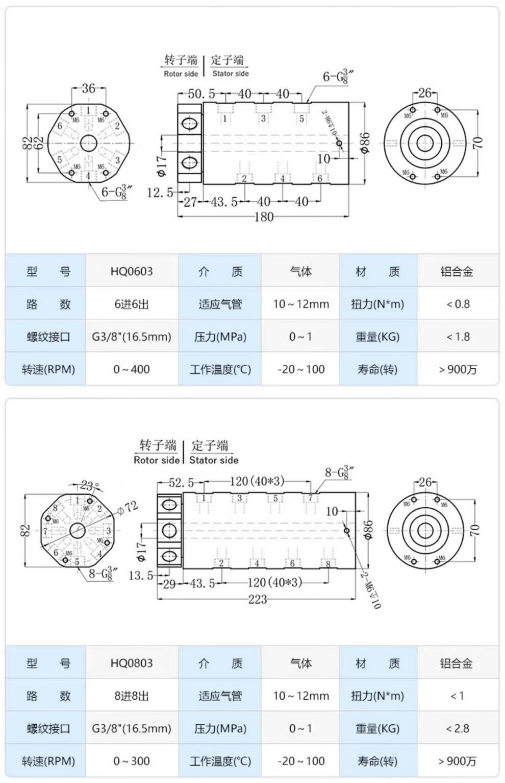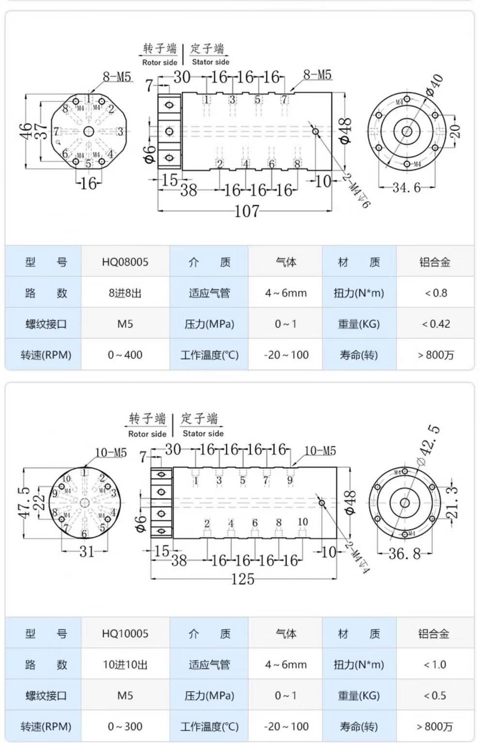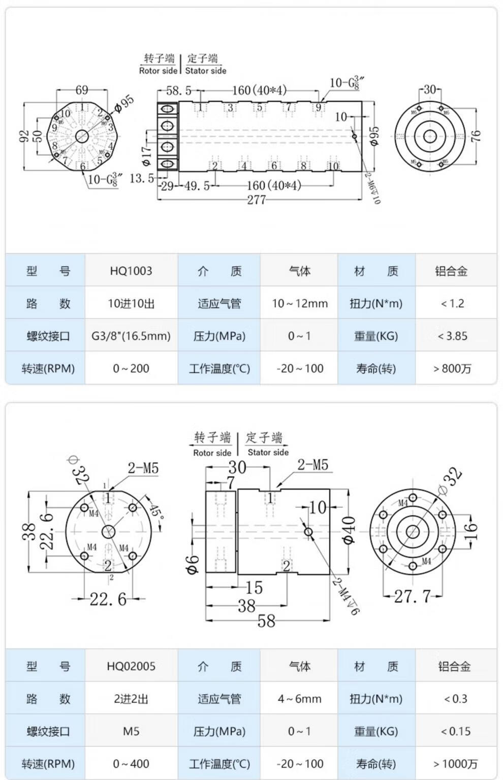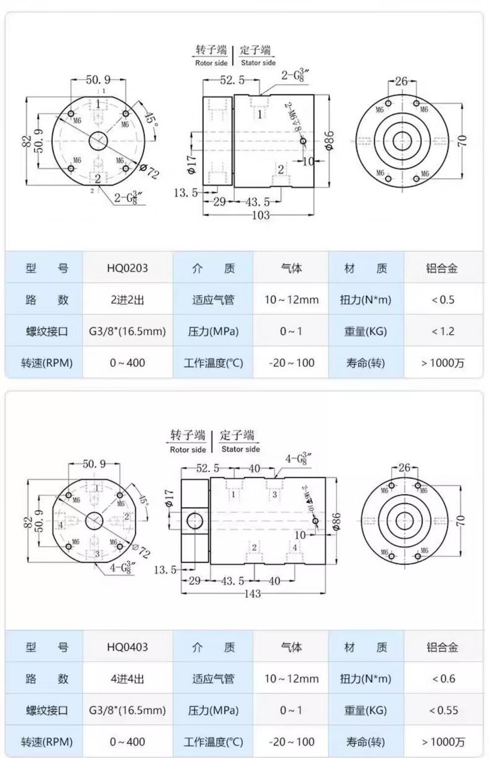 Hollow pneumatic slip ring 360-degree high-speed rotary joint high-pressure gas cylinder infinite rotation without winding customization 24 in 24 out G1/8 HQ2401 Other slip rings are available