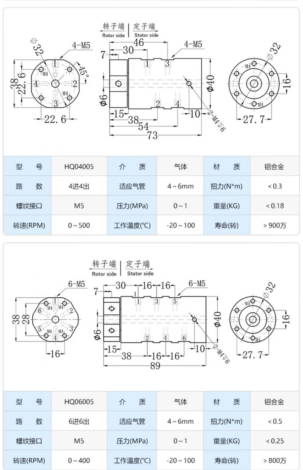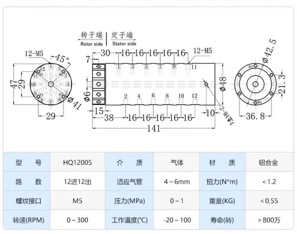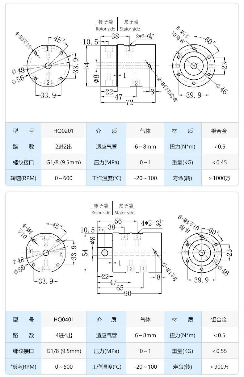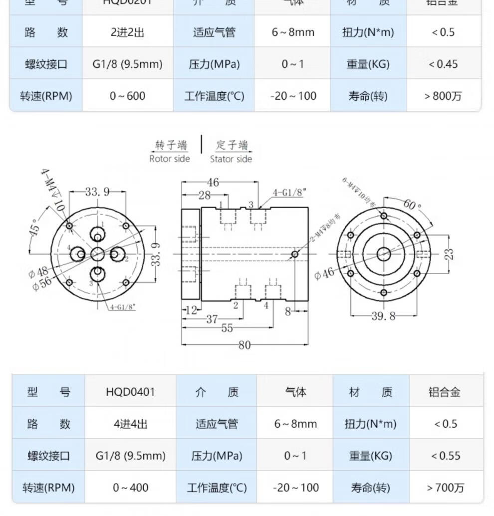 Hollow pneumatic slip ring 360-degree high-speed rotary joint high-pressure gas cylinder infinite rotation without winding customization 24 in 24 out G1/8 HQ2401 Other slip rings are available