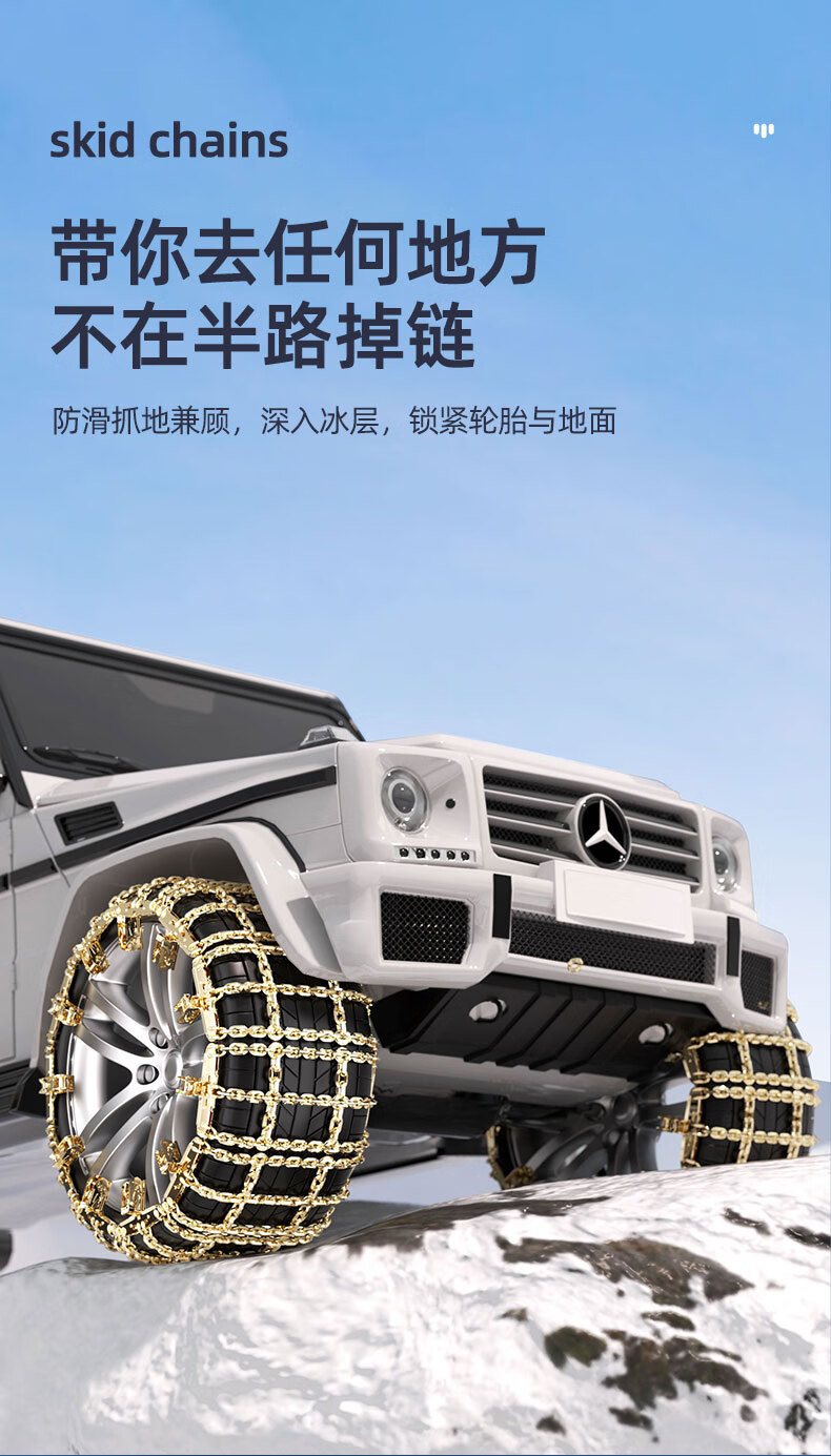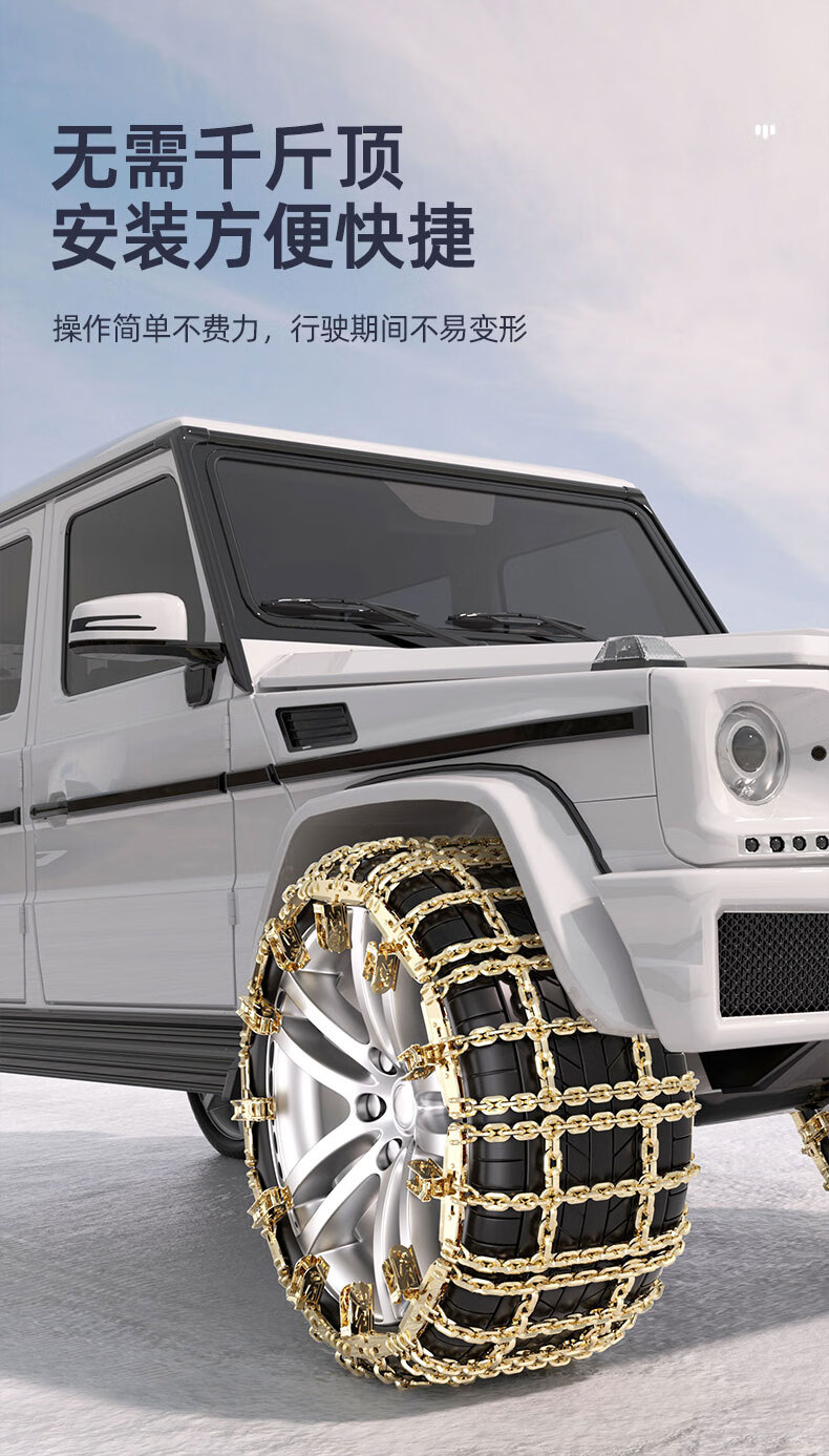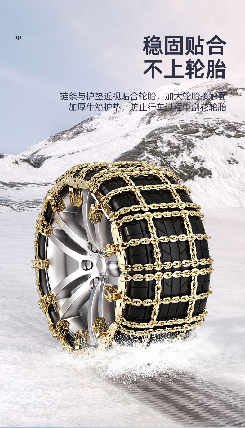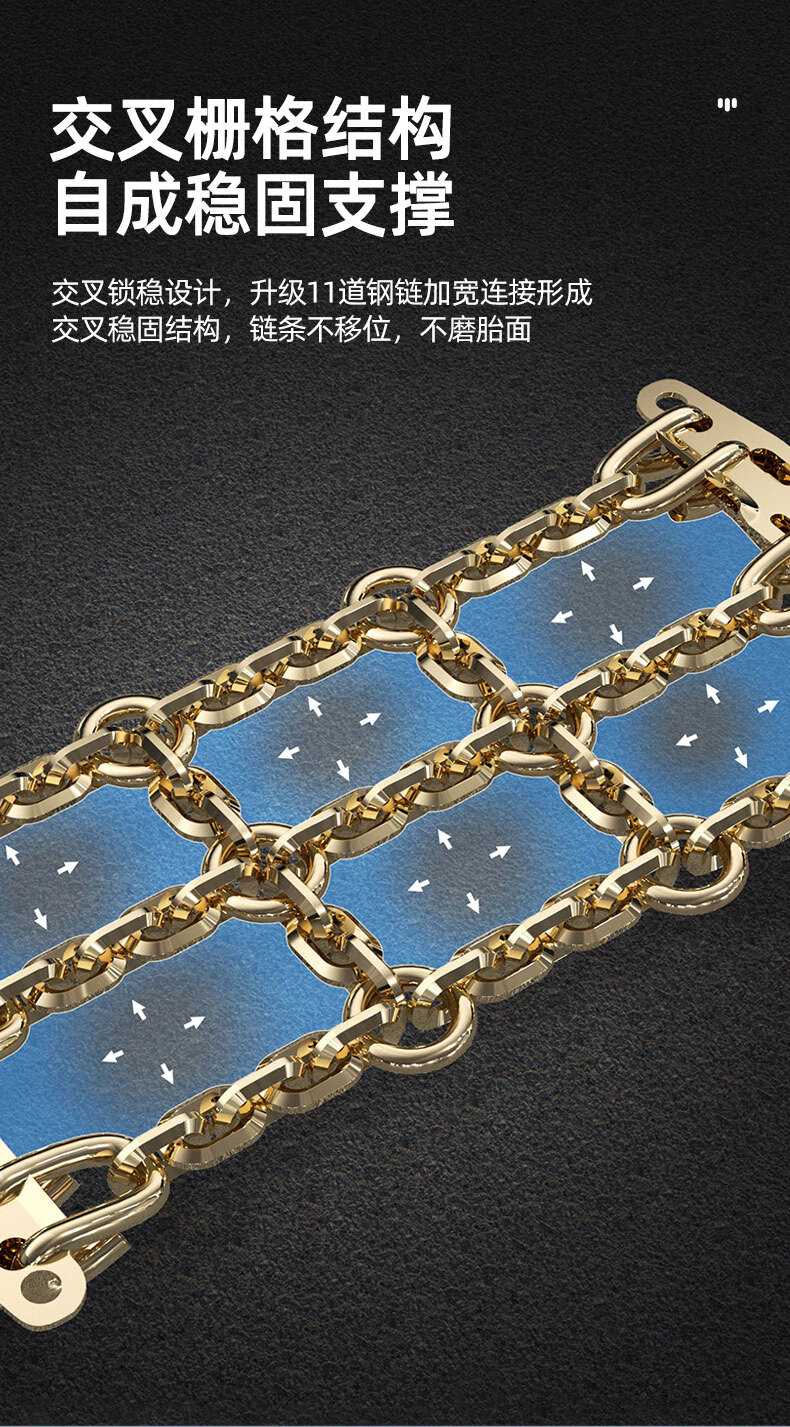 Tiger Knight thickened anti-skid chain for cars, universal type, no damage to tires, SUV off-road vehicle, snow and mud anti-slip artifact, Tianzi grid reinforced version, small size, two packs - should be no specifications