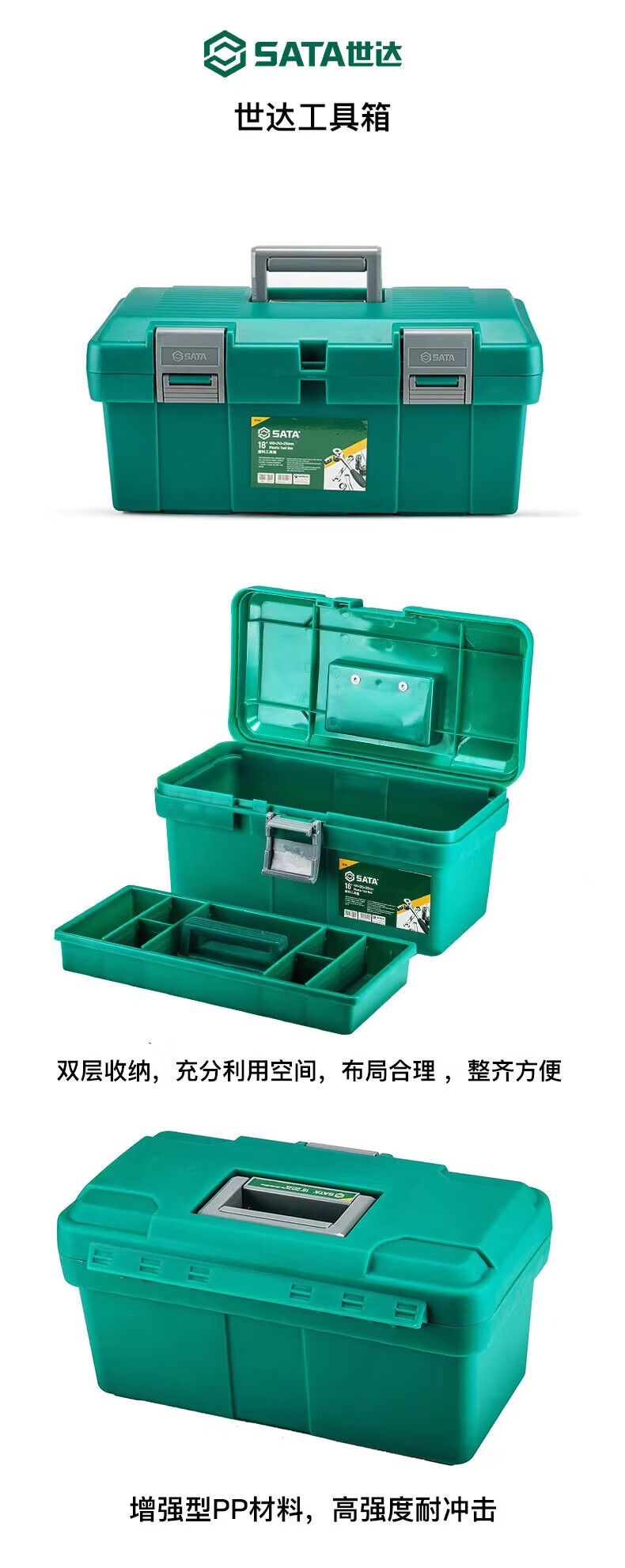 Shida Plastic Multifunctional Aluminum Alloy Tool Box Single and Double Layer Portable Home Repair and Installation Storage Box 95164/ Plastic Tool Box 21 Inch