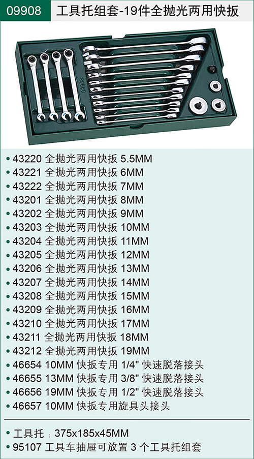 Shida Tool Holder Combination Set Pallet Car Repair Vehicle Set 09904 11-piece Open Wrench