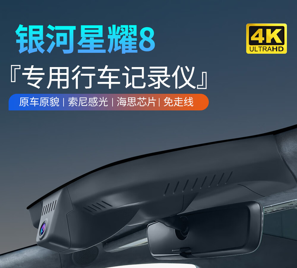 Lingzhou Geely Galaxy Star 8 Driving Recorder Special Car Special Original Ultra-clear Night Vision Wire-Free Original Car Hidden 25 Models Galaxy Star 8 (Low and Medium Configuration) Special/Black (Single Lens) 2160P 4K +64G High Speed U3 Card