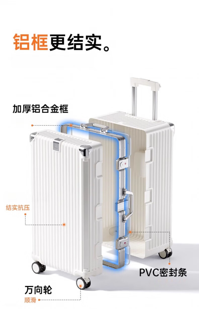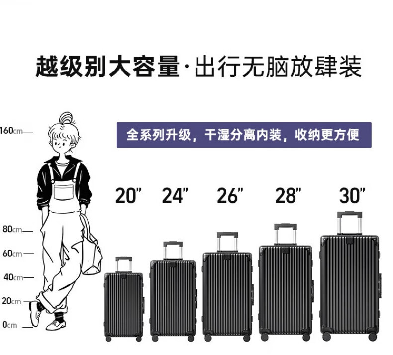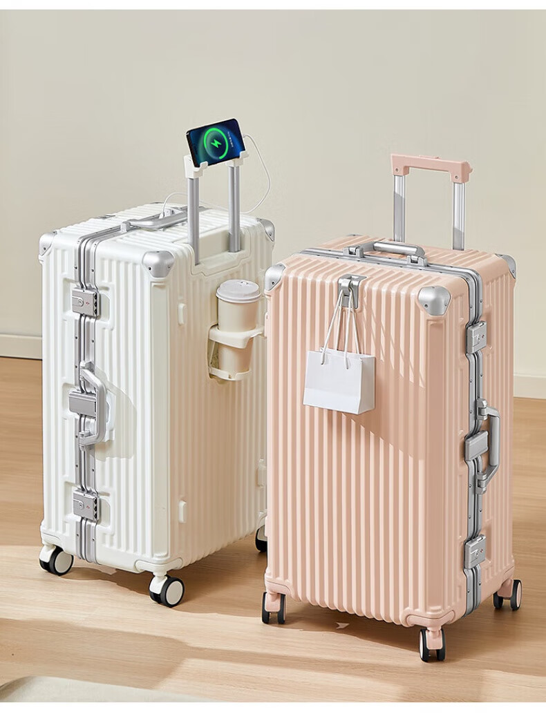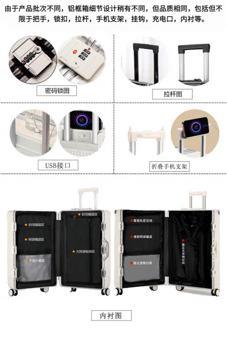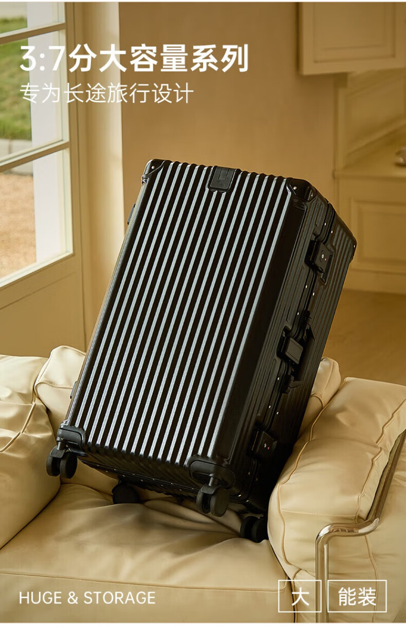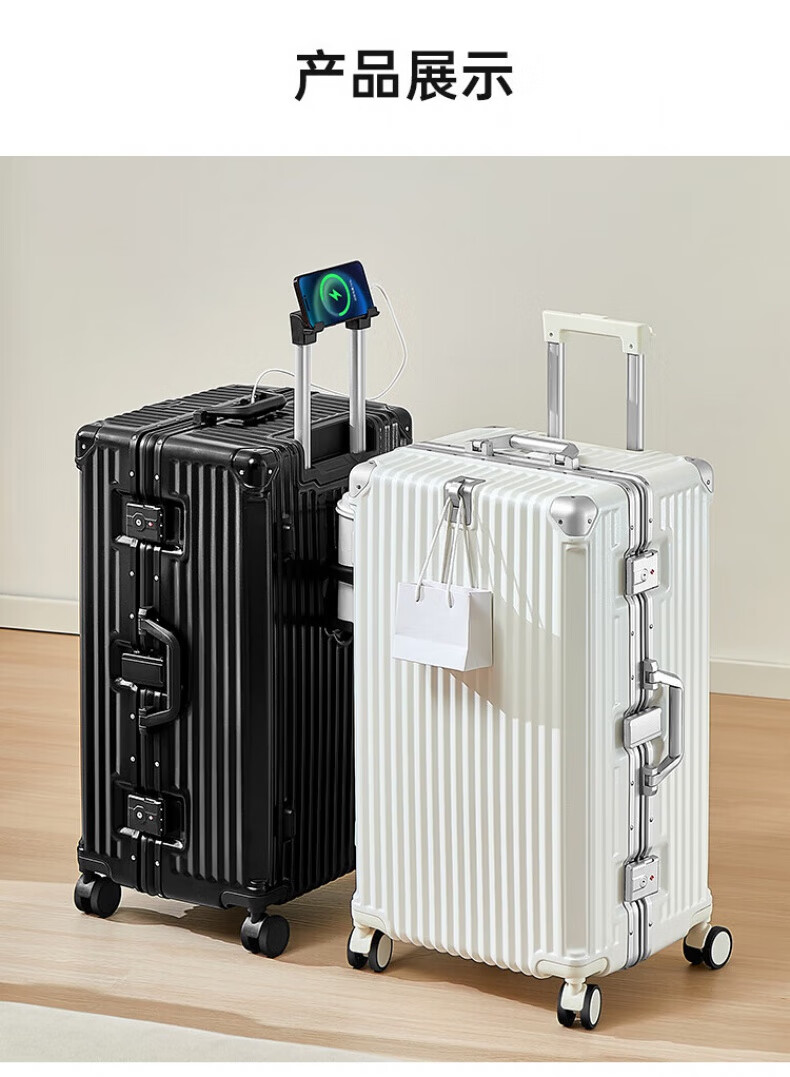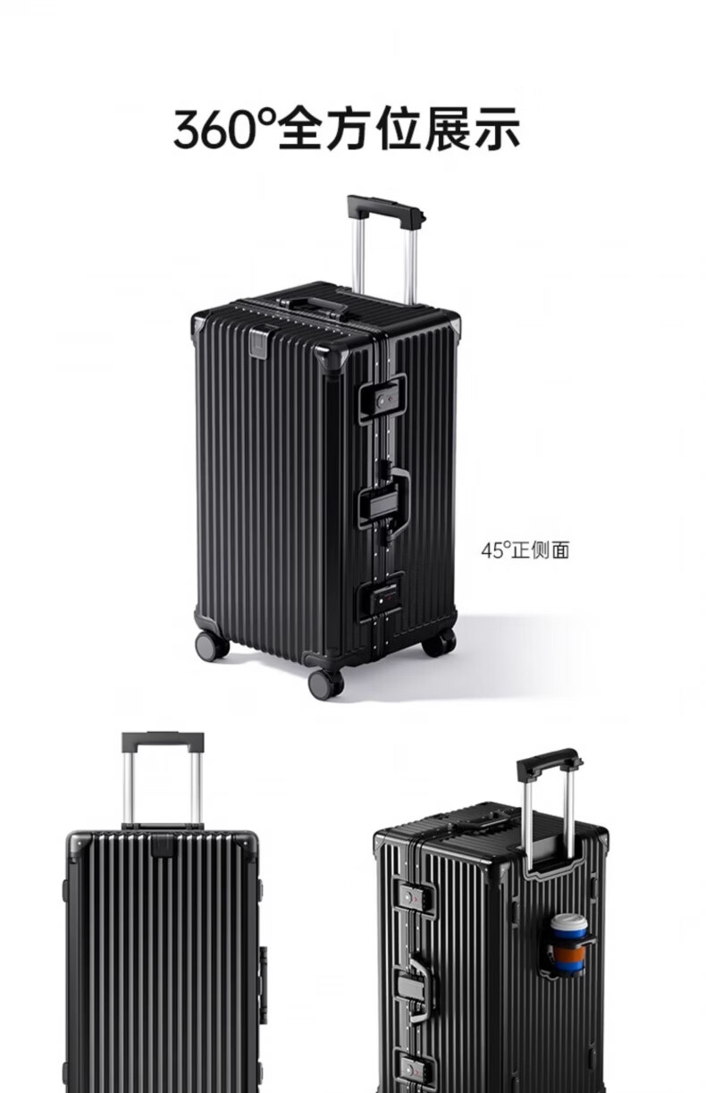 Diston Paul luggage large capacity 30-inch extra large strong and durable alloy hard-shell password box overseas checked suitcase black thickened and deepened aluminum frame + fully enclosed wet and dry lining 32-inch USB + cup holder + hook + bracket