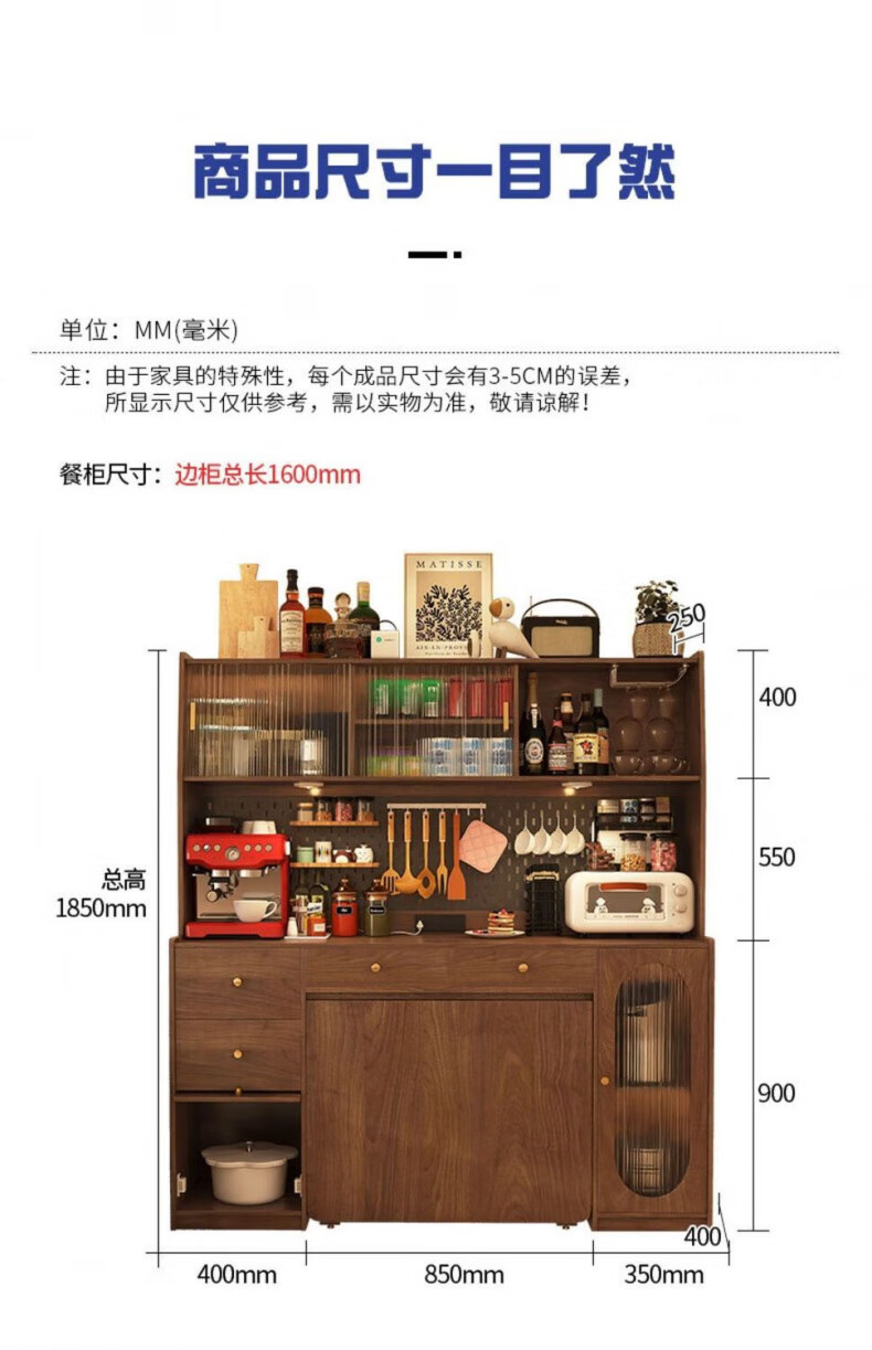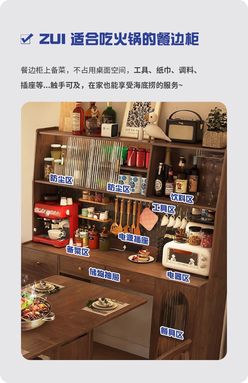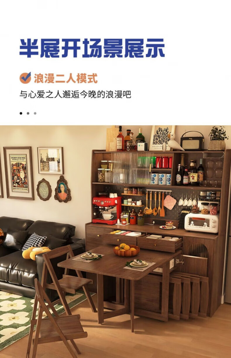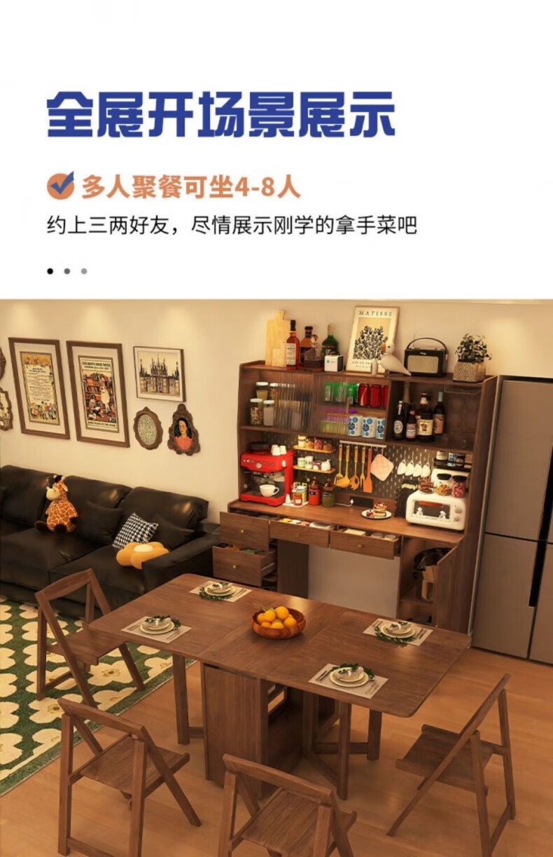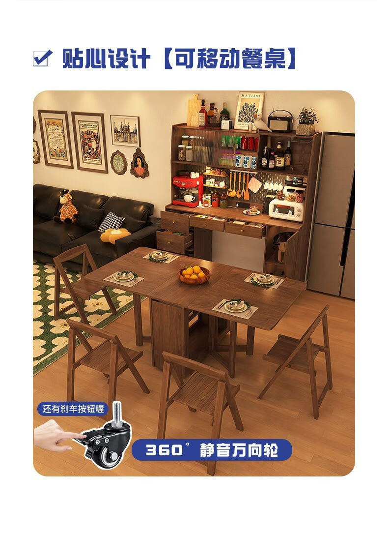 Wooden Whale Elephant Solid Wood Folding Dining Table Retractable Folding Mobile Small Household Table Multifunctional Sideboard Integrated Solid Wood 1.6m Walnut Color Dining Table Cabinet