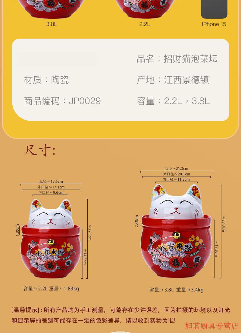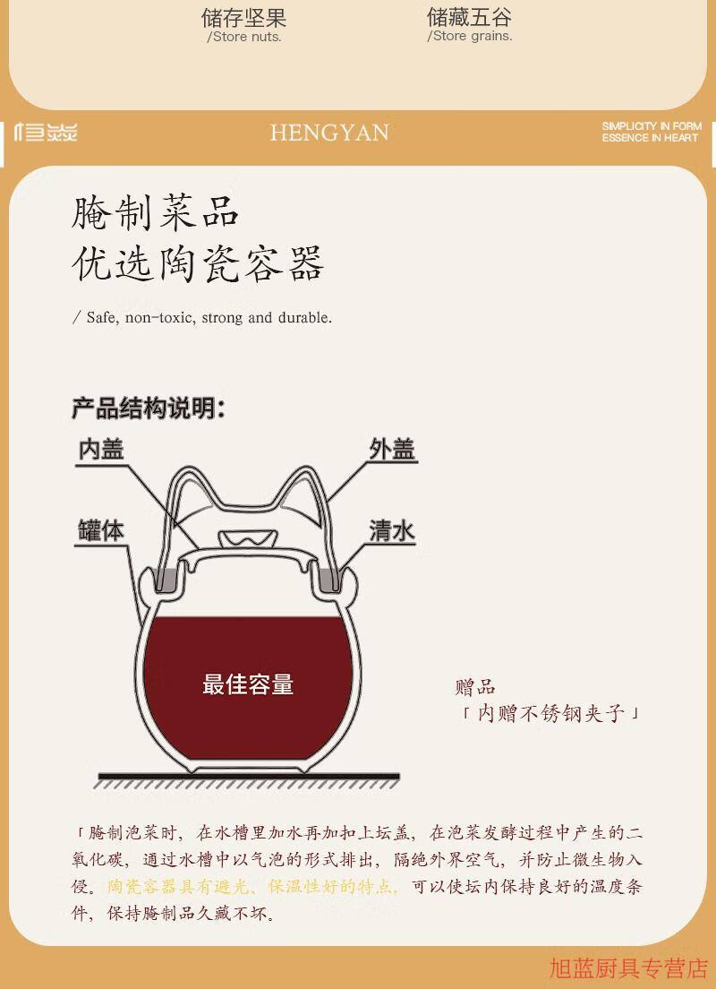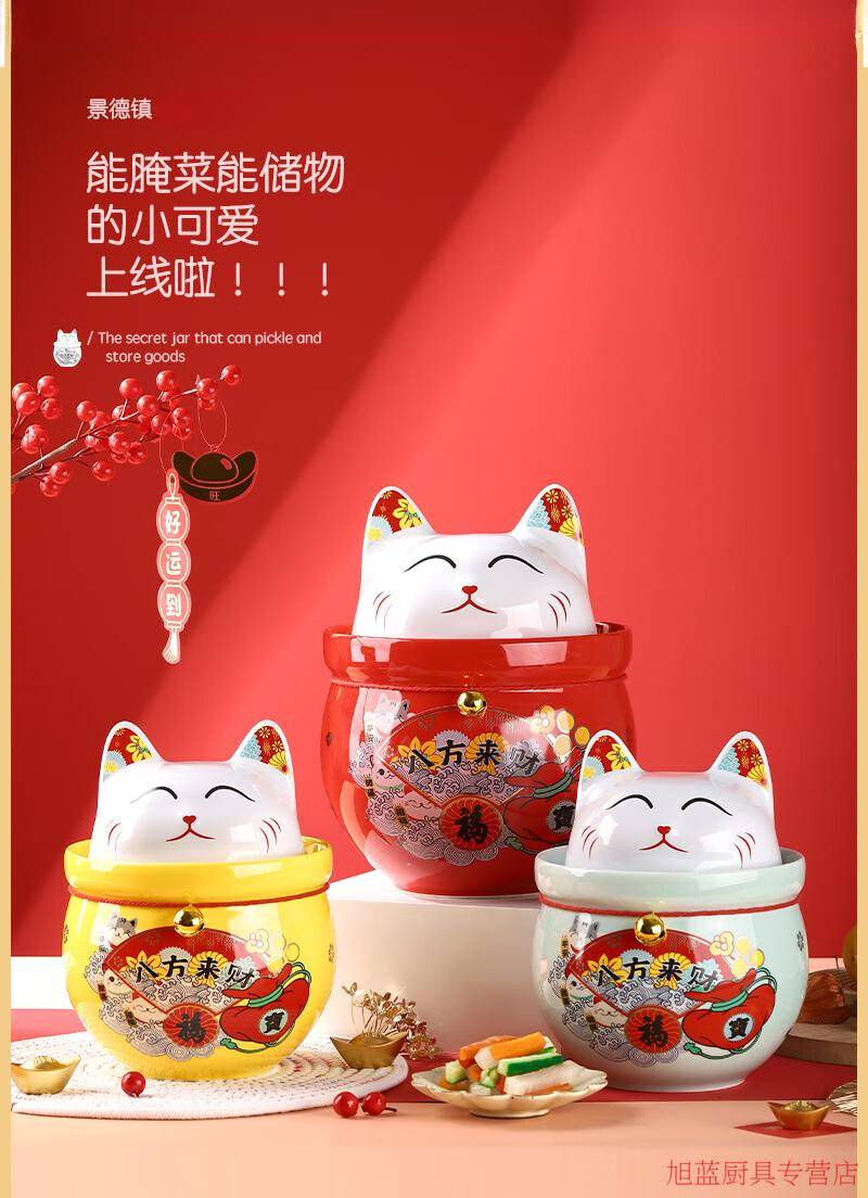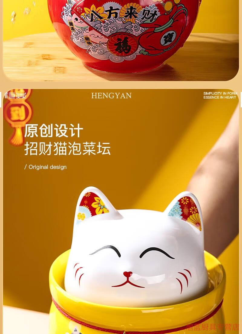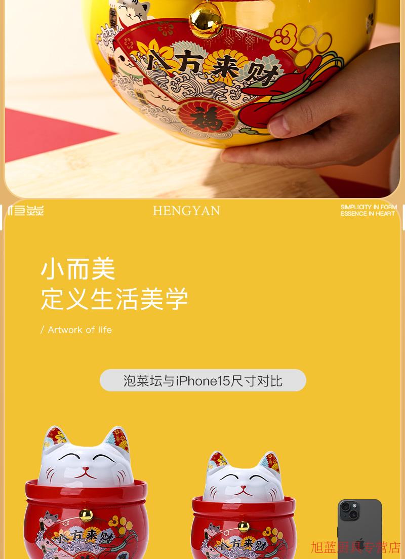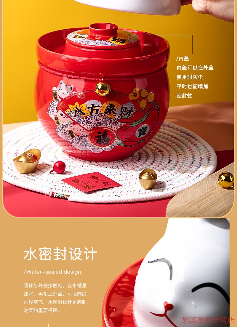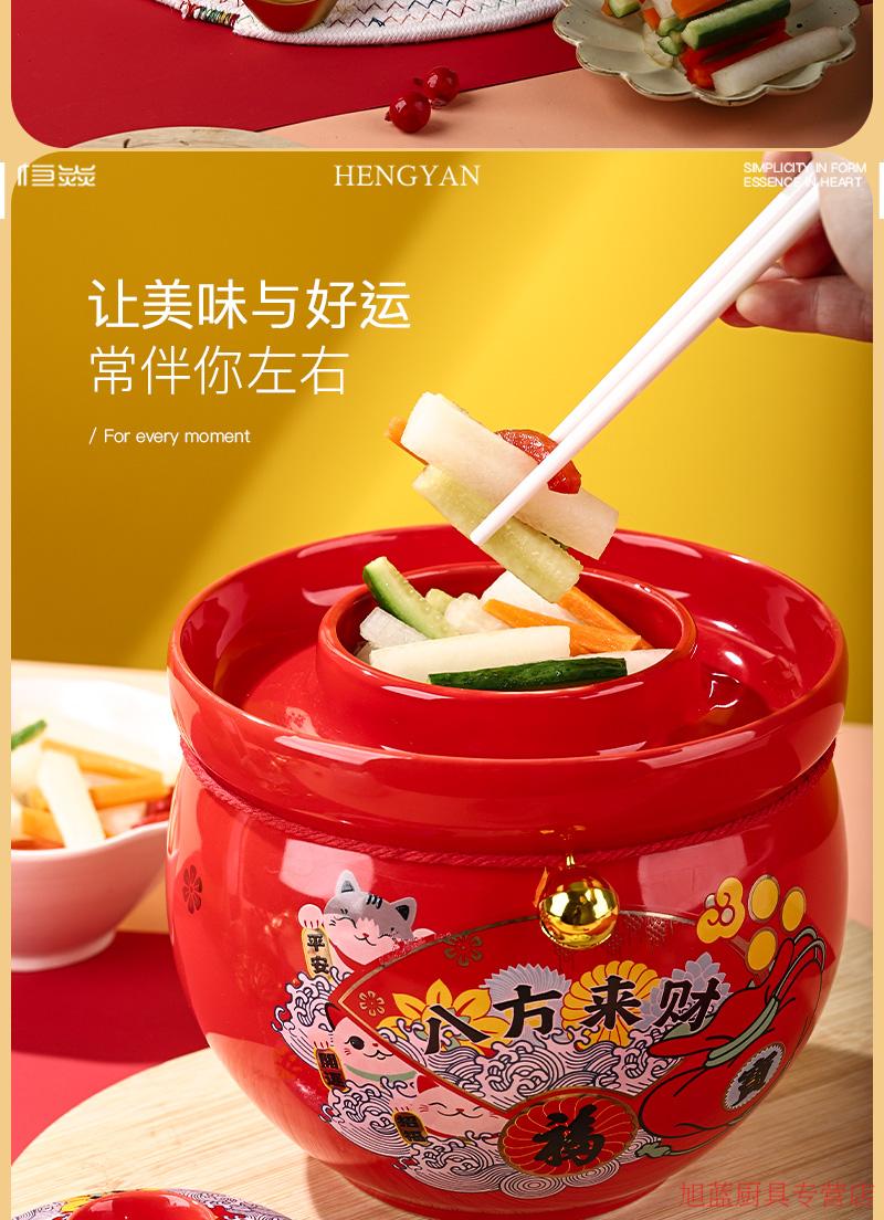 ZSR Japanese-style pickle jar, pickle jar, dopamine ceramic sealed jar, high temperature resistant household lard jar with lid, beauty orange/large size