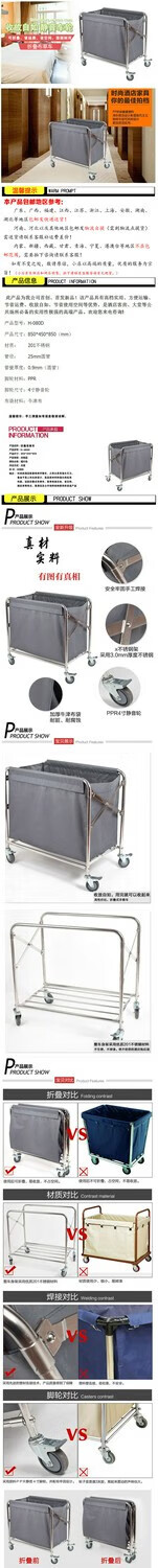 旭凡折叠布草车酒店不锈钢收集手推车房口宾馆物业服务车客房卫生清洁 不锈钢折叠车灰色
